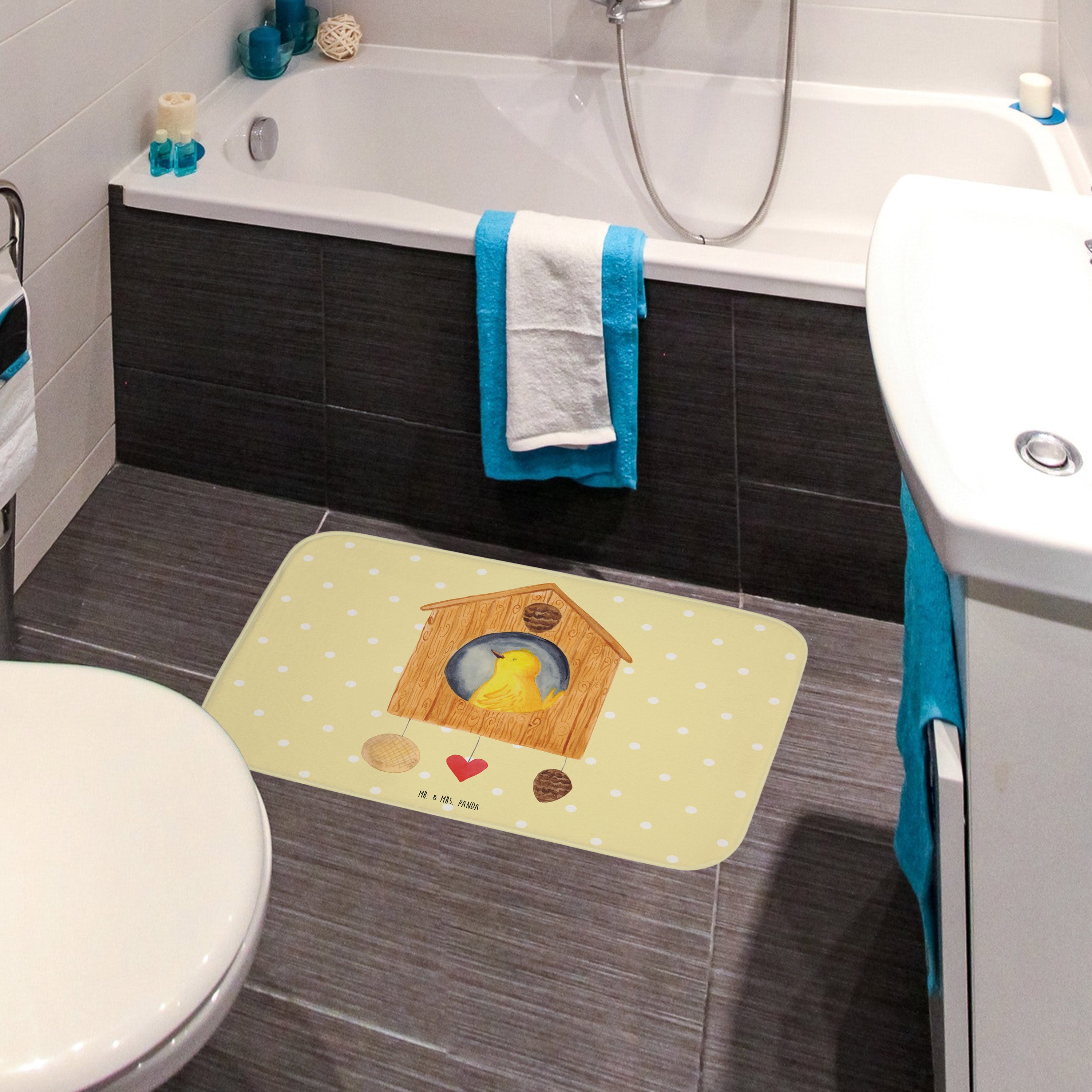 Badvorleger Vogelhaus sweet Home - mit Spruch - Gelb Pastell