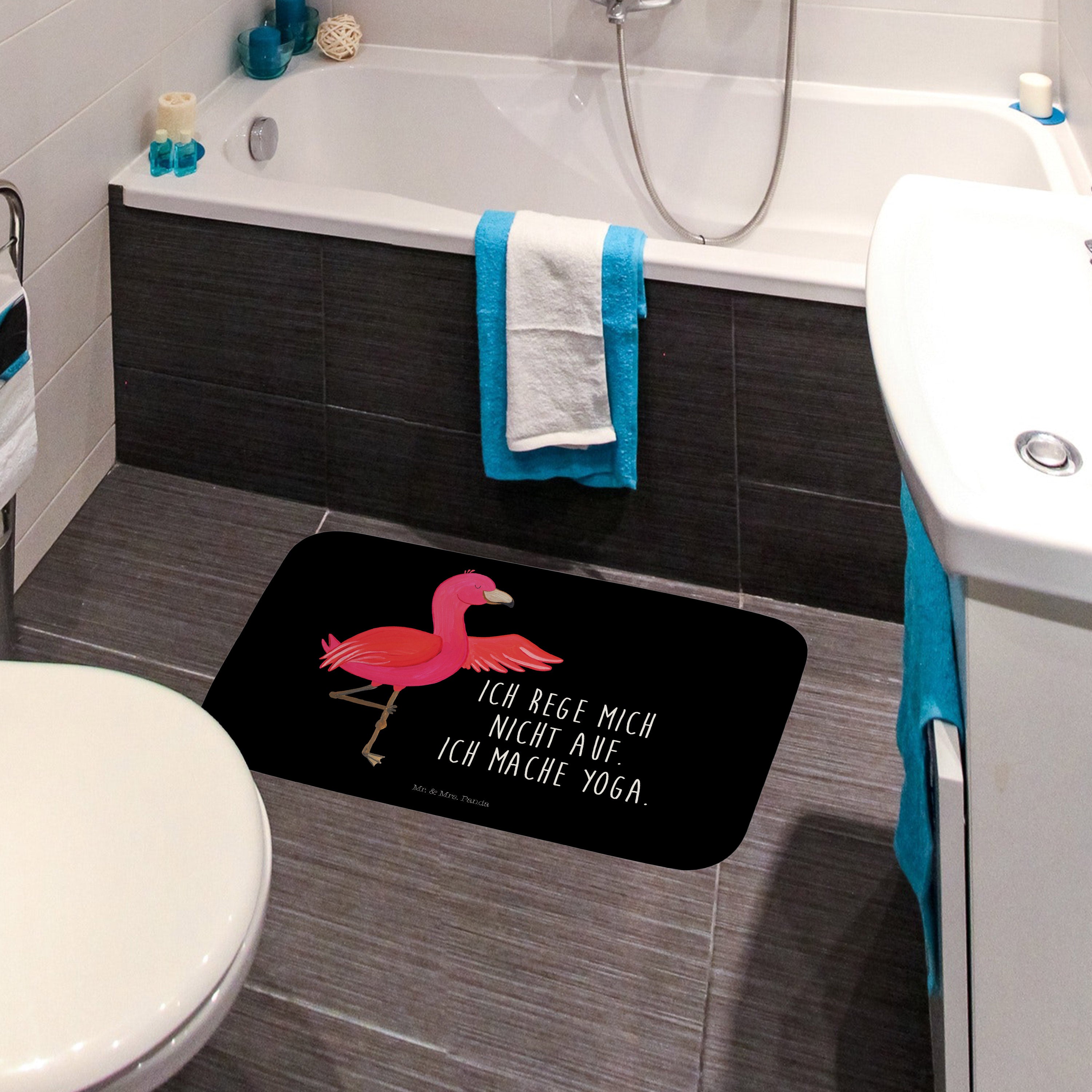 Badvorleger Flamingo Yoga - mit Spruch - Schwarz