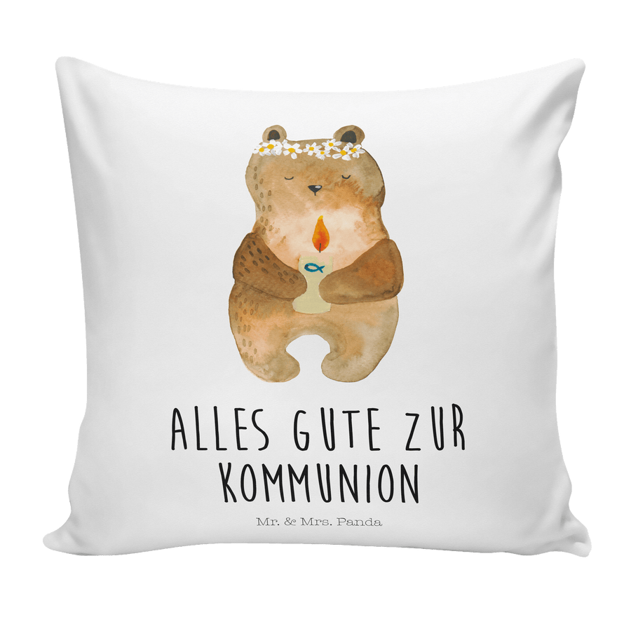 40x40 Kissen Kommunion-Bär - mit Spruch - Weiß
