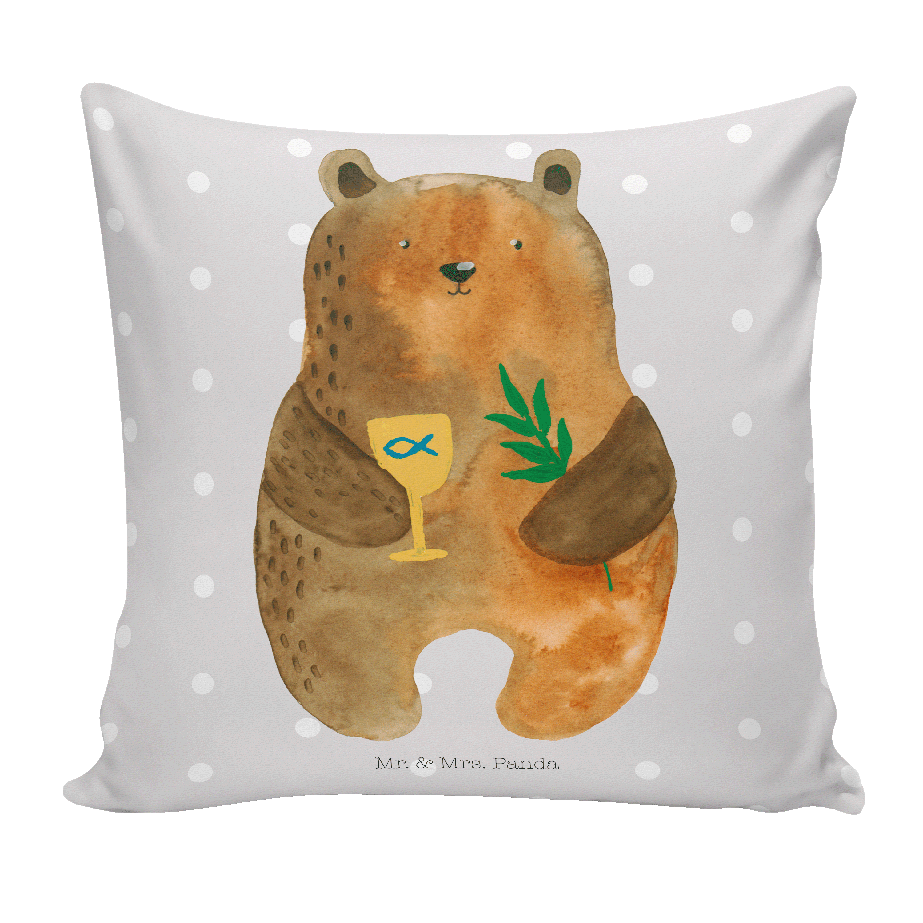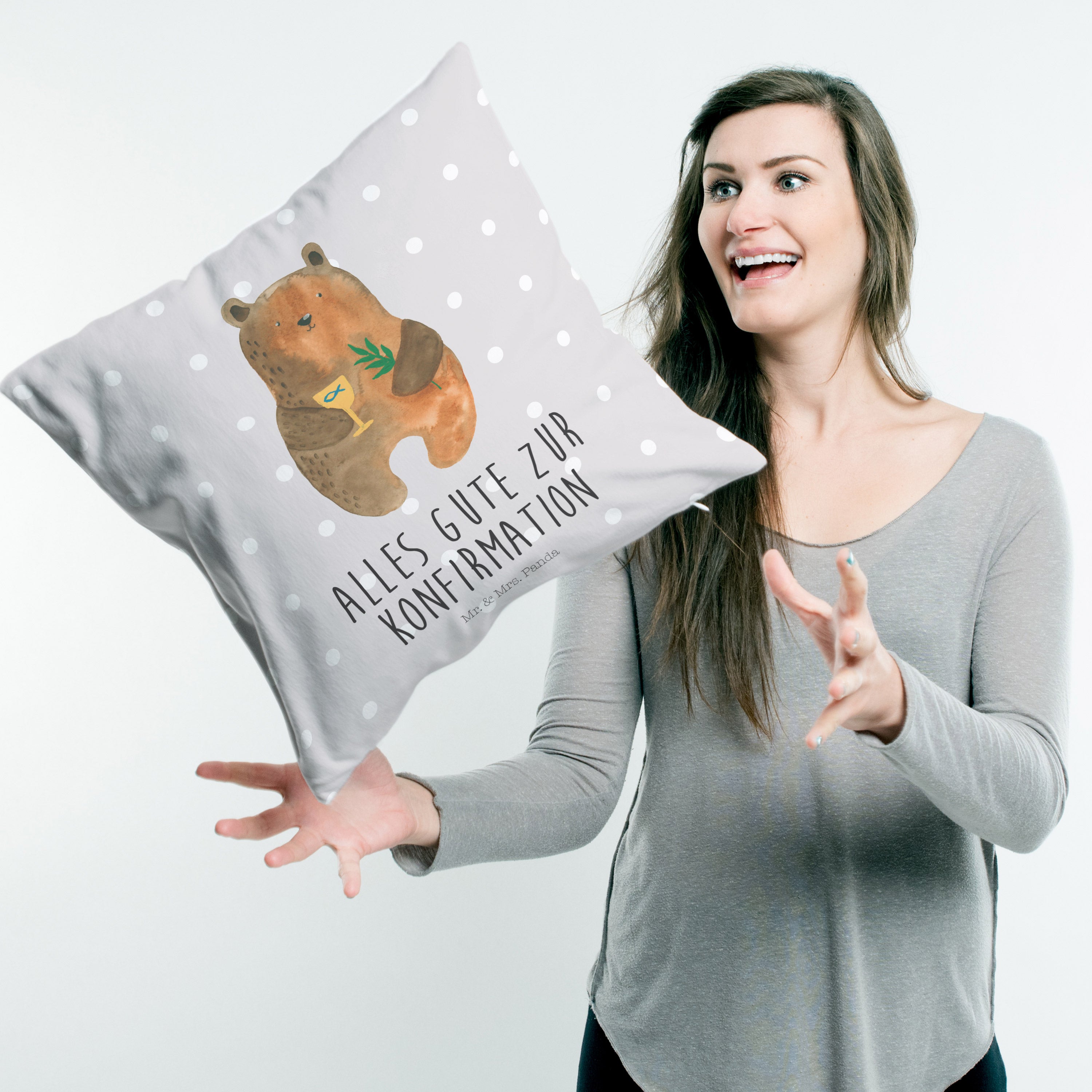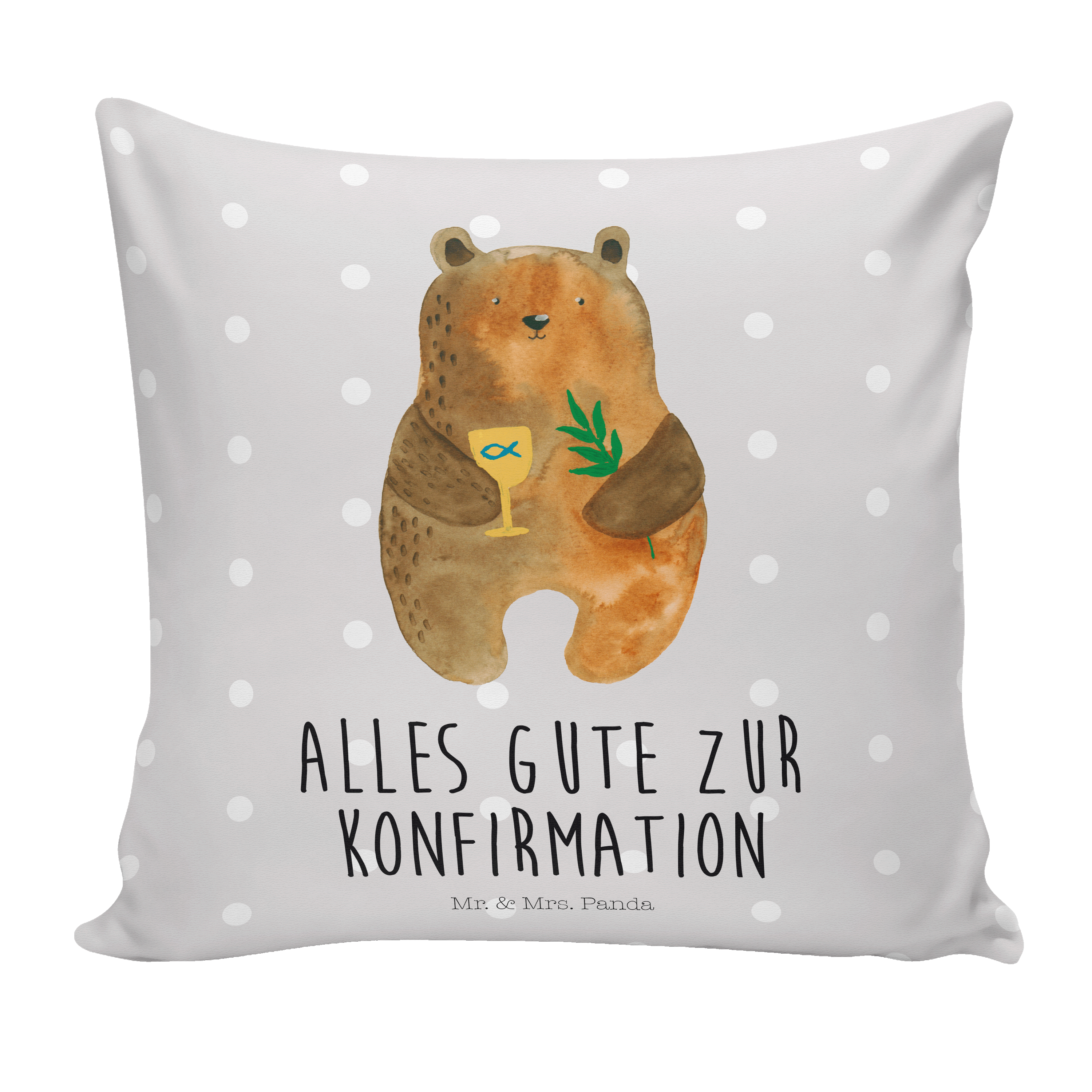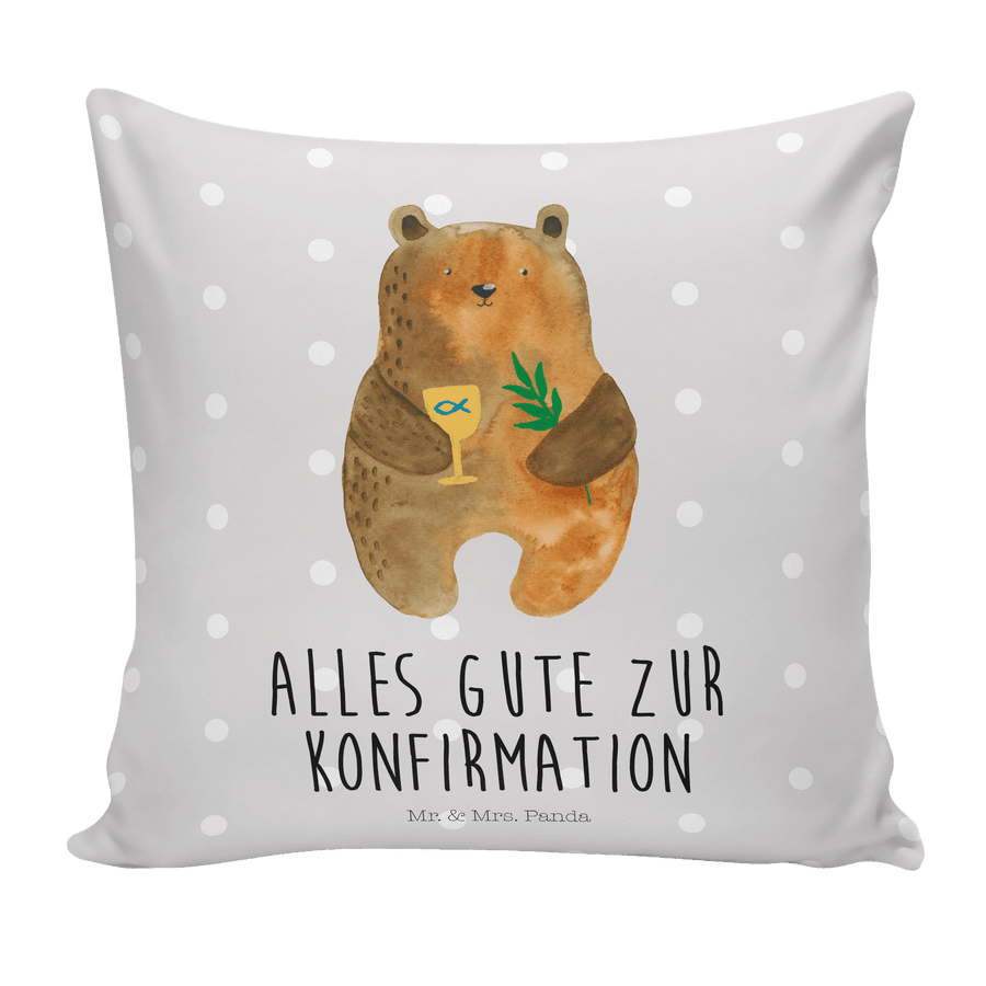 40x40 Kissen Konfirmation-Bär - mit Spruch - Grau Pastell