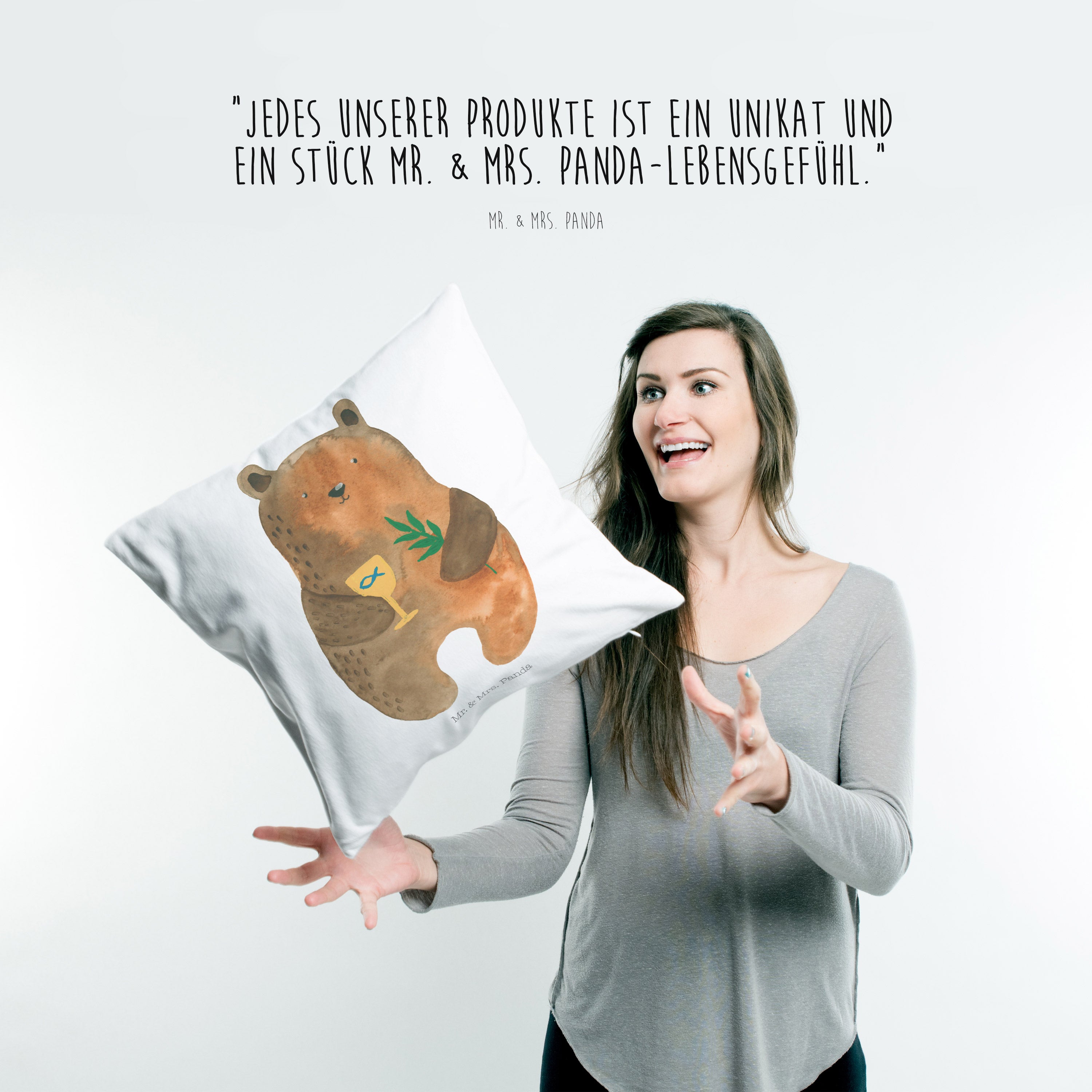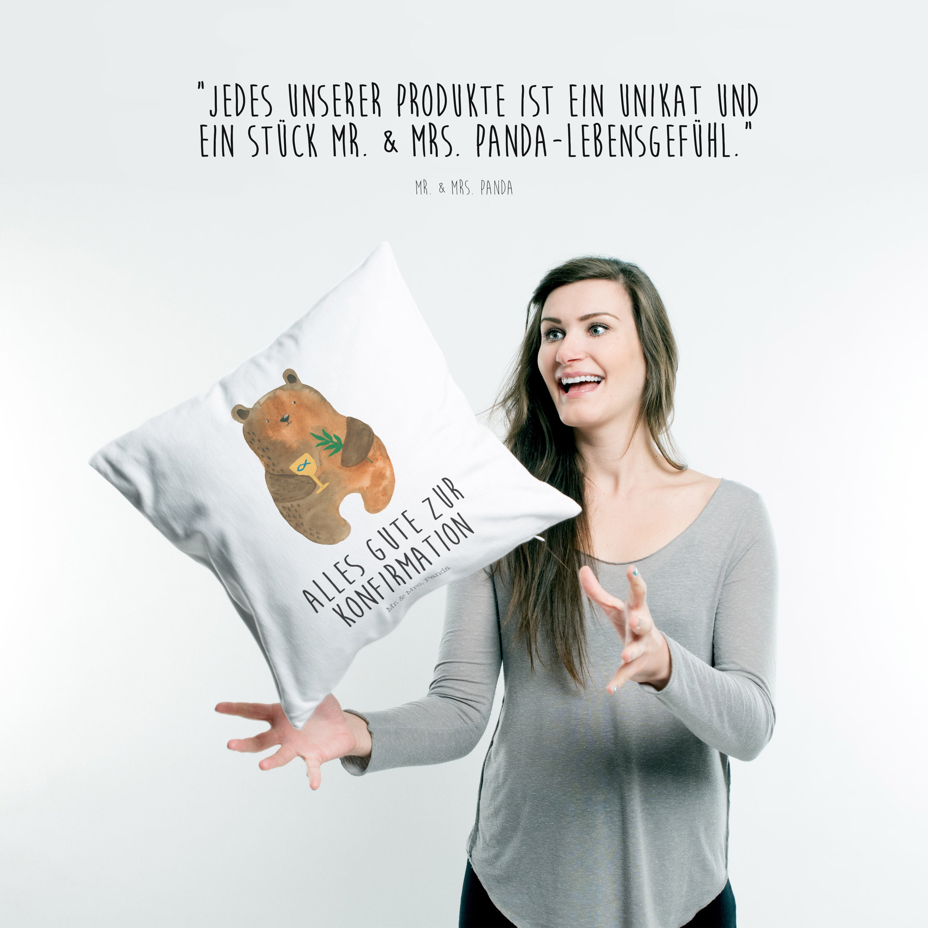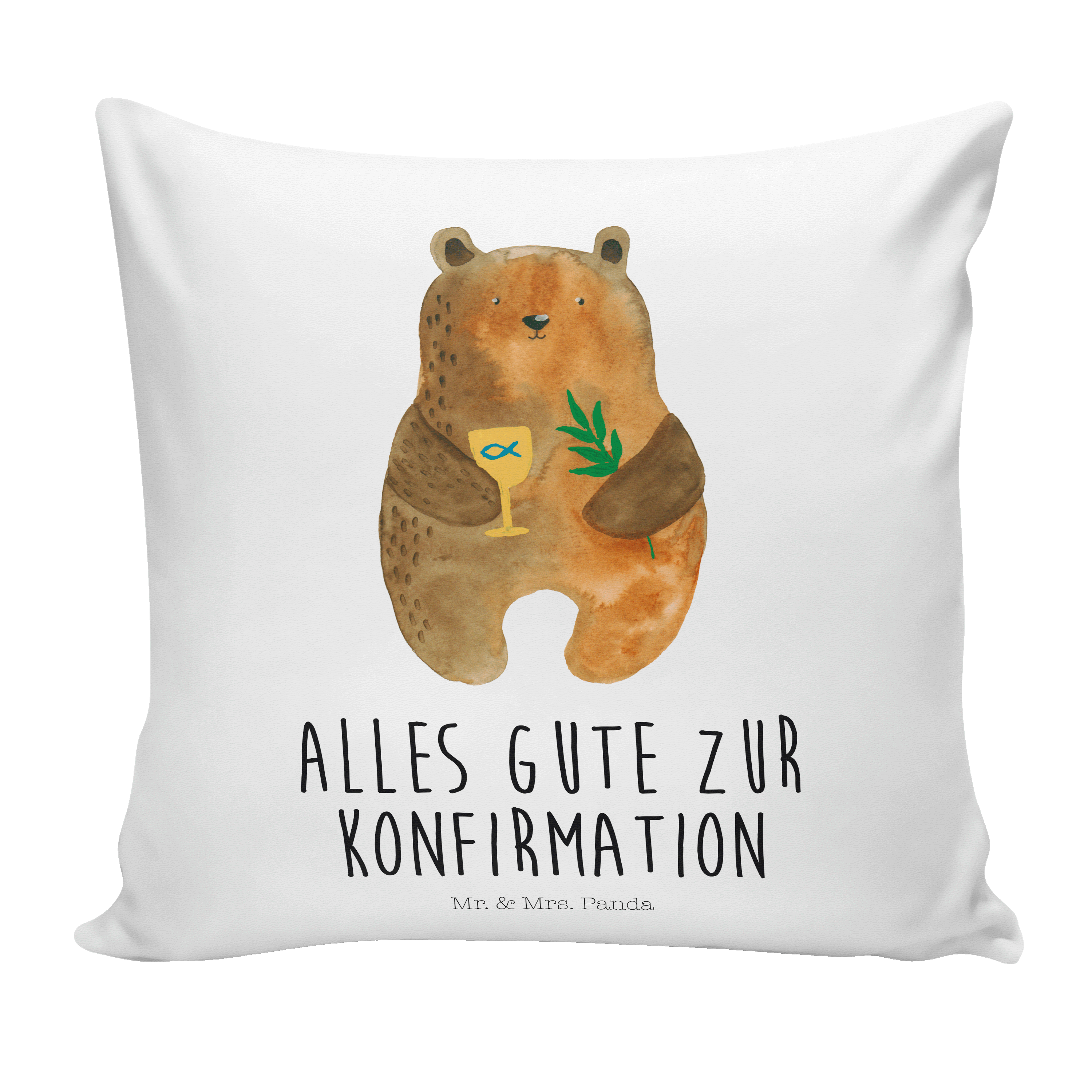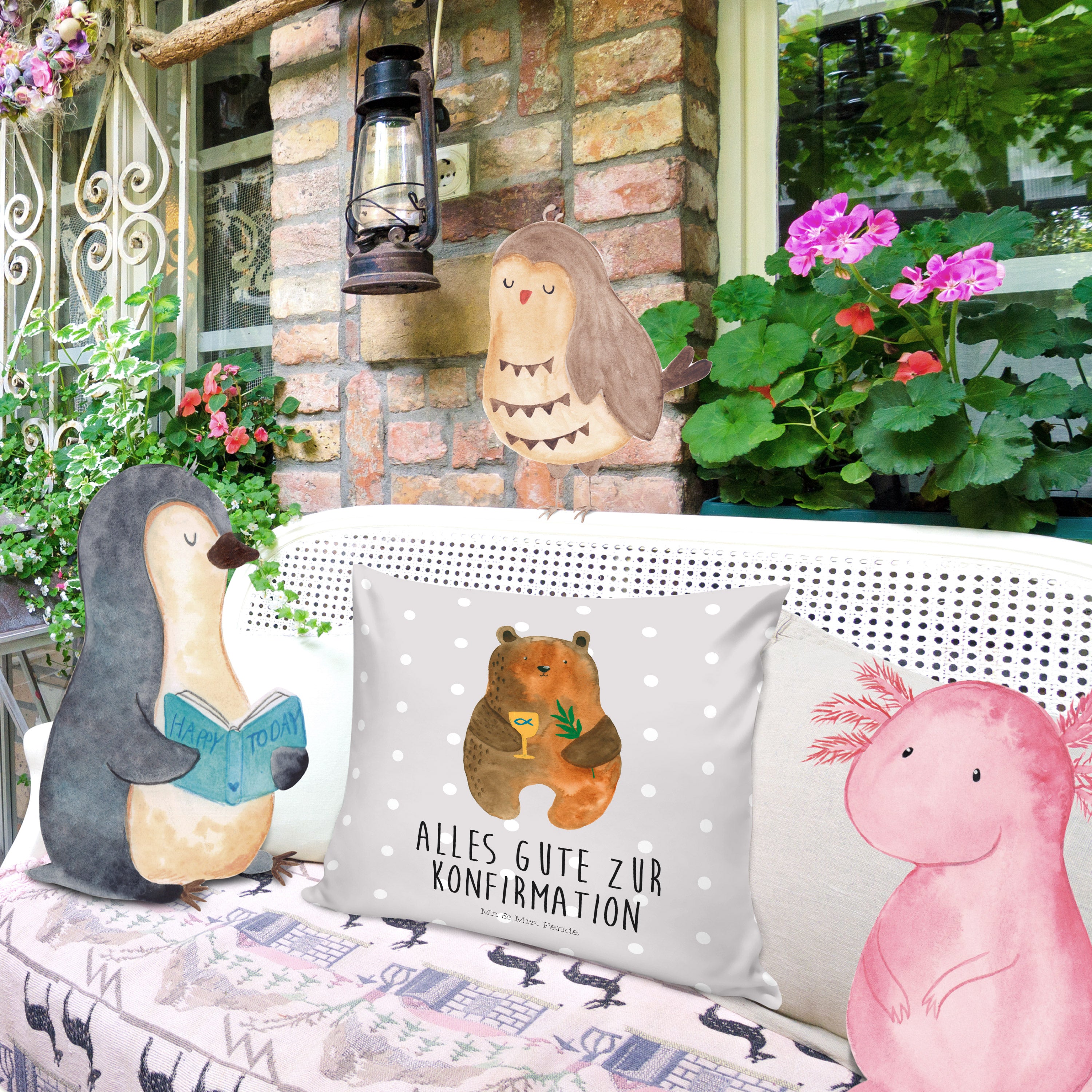 40x40 Kissen Konfirmation-Bär - mit Spruch - Grau Pastell