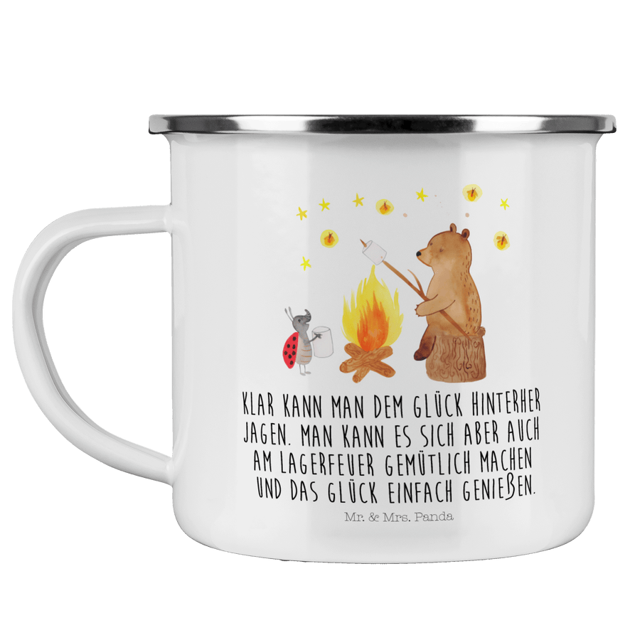 Camping Emaille Tasse Bär & Marienkäfer Lagerfeuer - mit Spruch