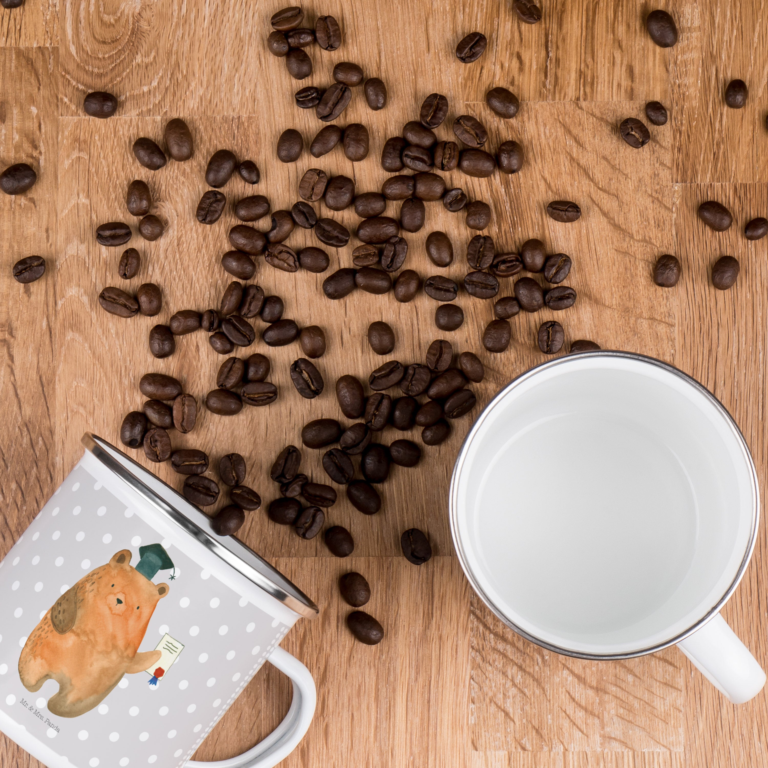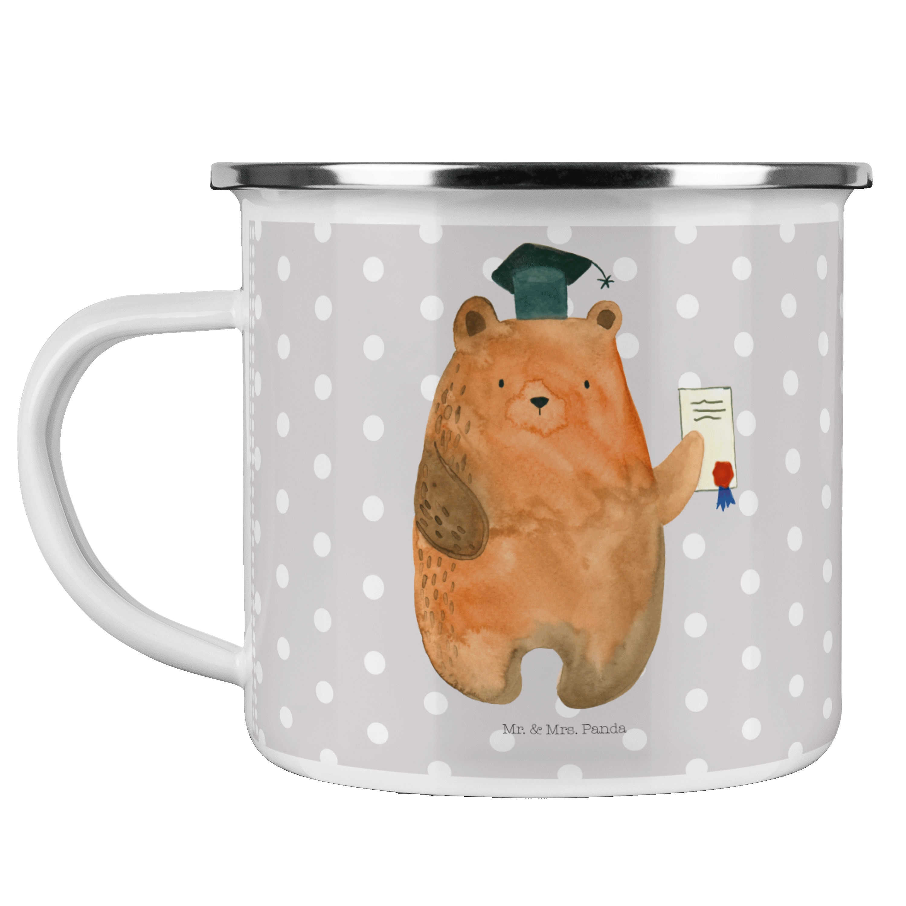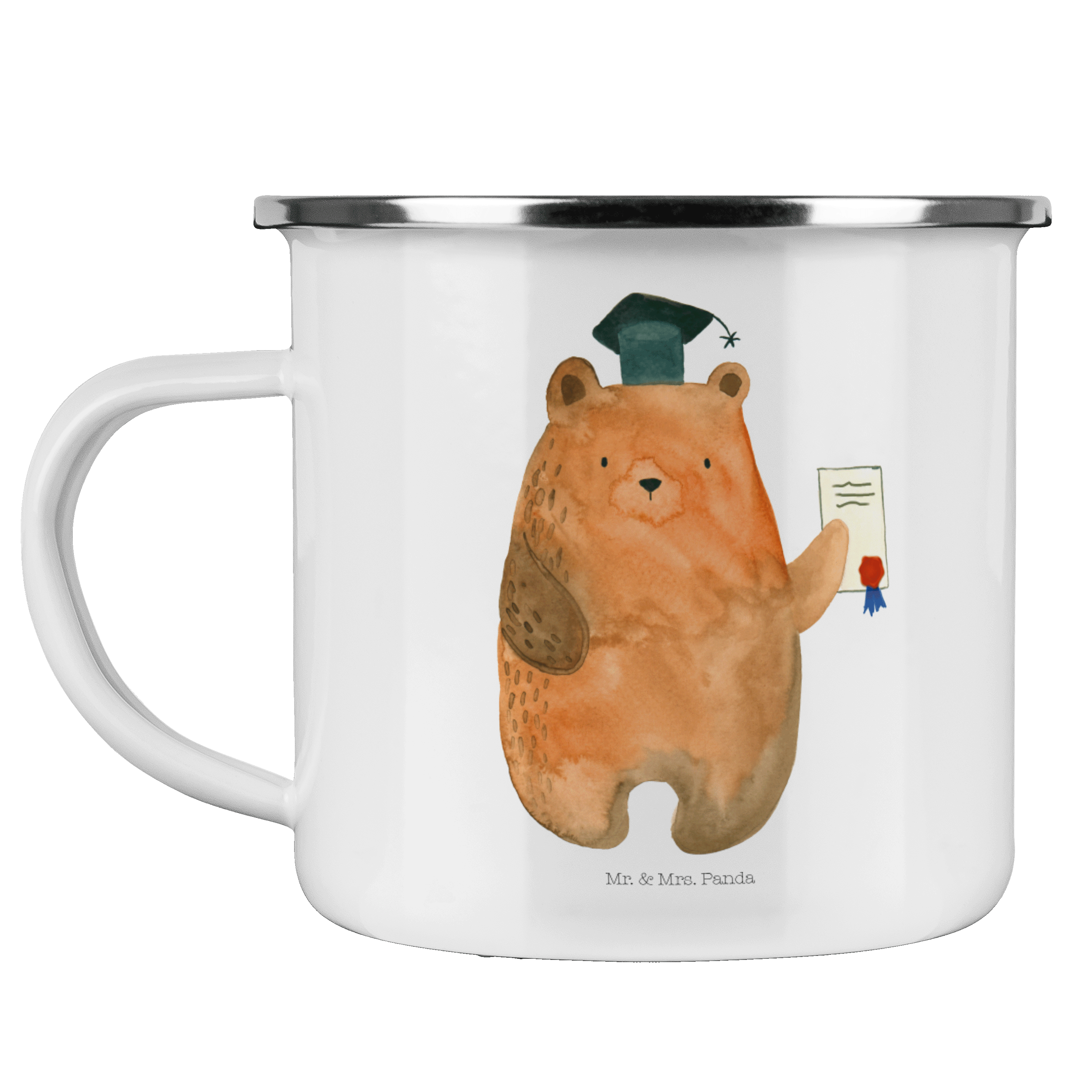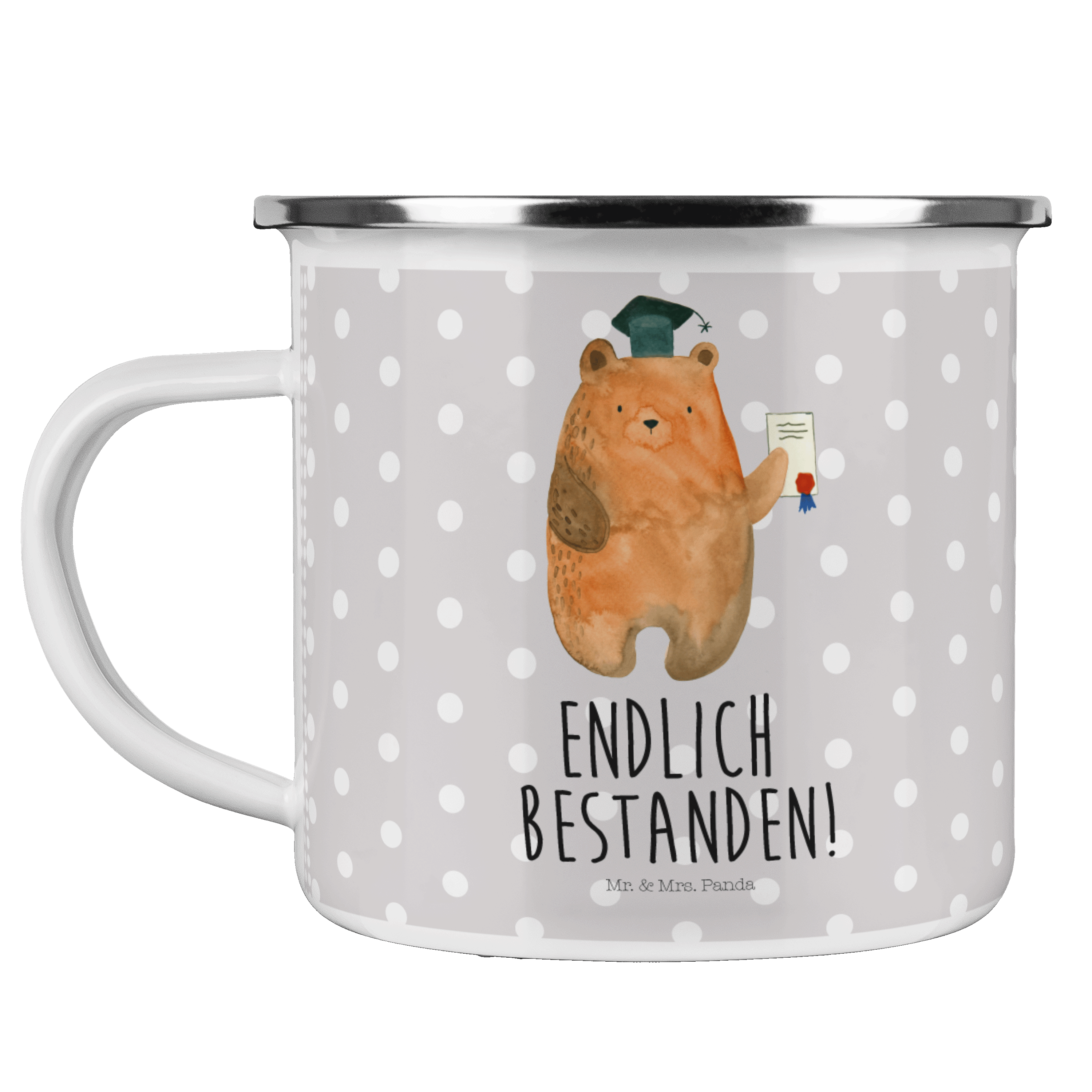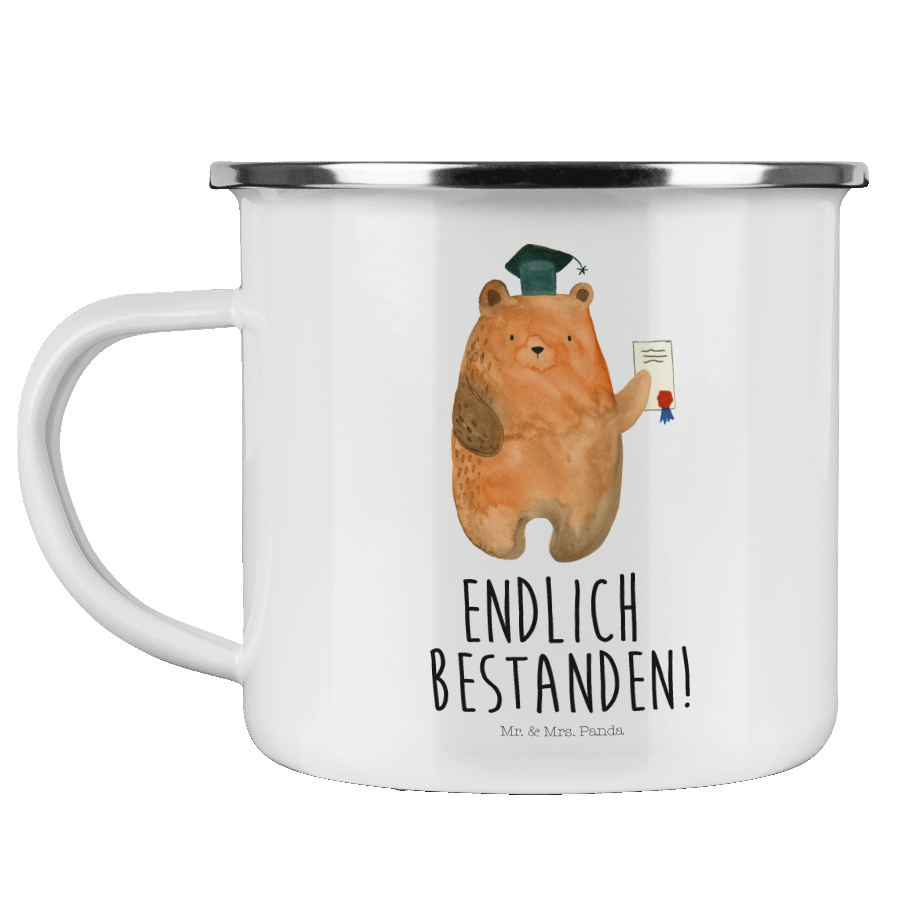 Camping Emaille Tasse Prüfungsbär - mit Spruch - Weiß