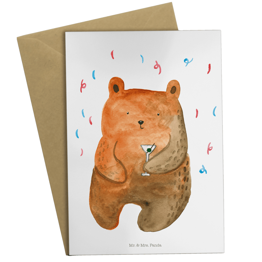 Grußkarte Bär Party - ohne Spruch - Weiß