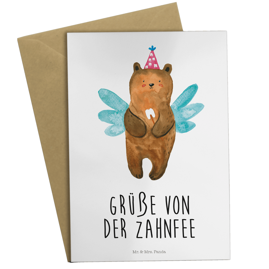 Grußkarte Zahnfee Bär - mit Spruch - Weiß