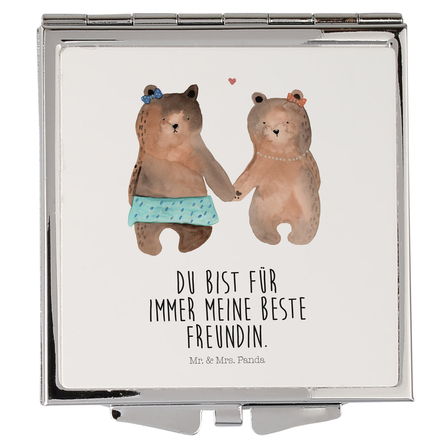 Handtaschenspiegel quadratisch Bär Freundin - mit Spruch - Weiß