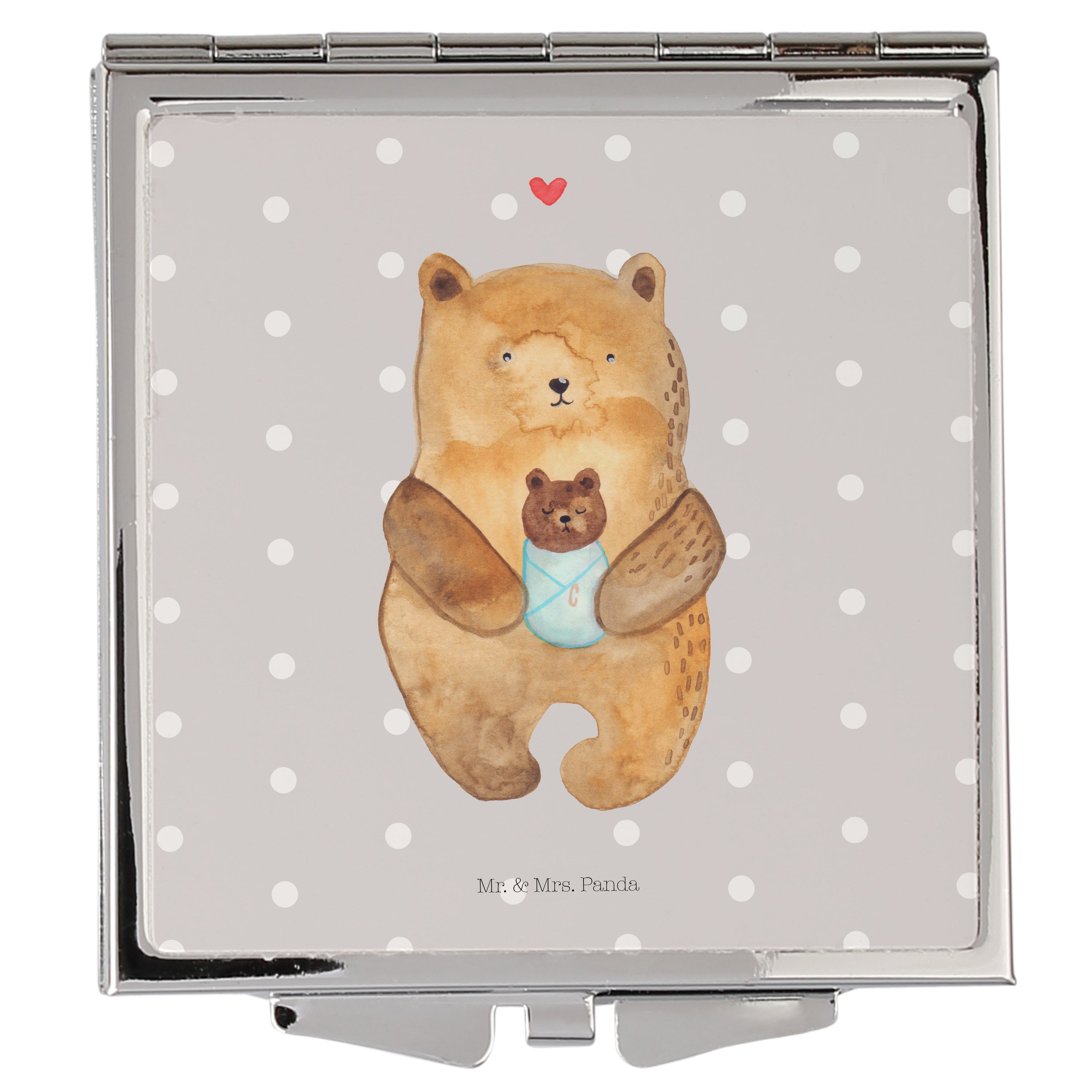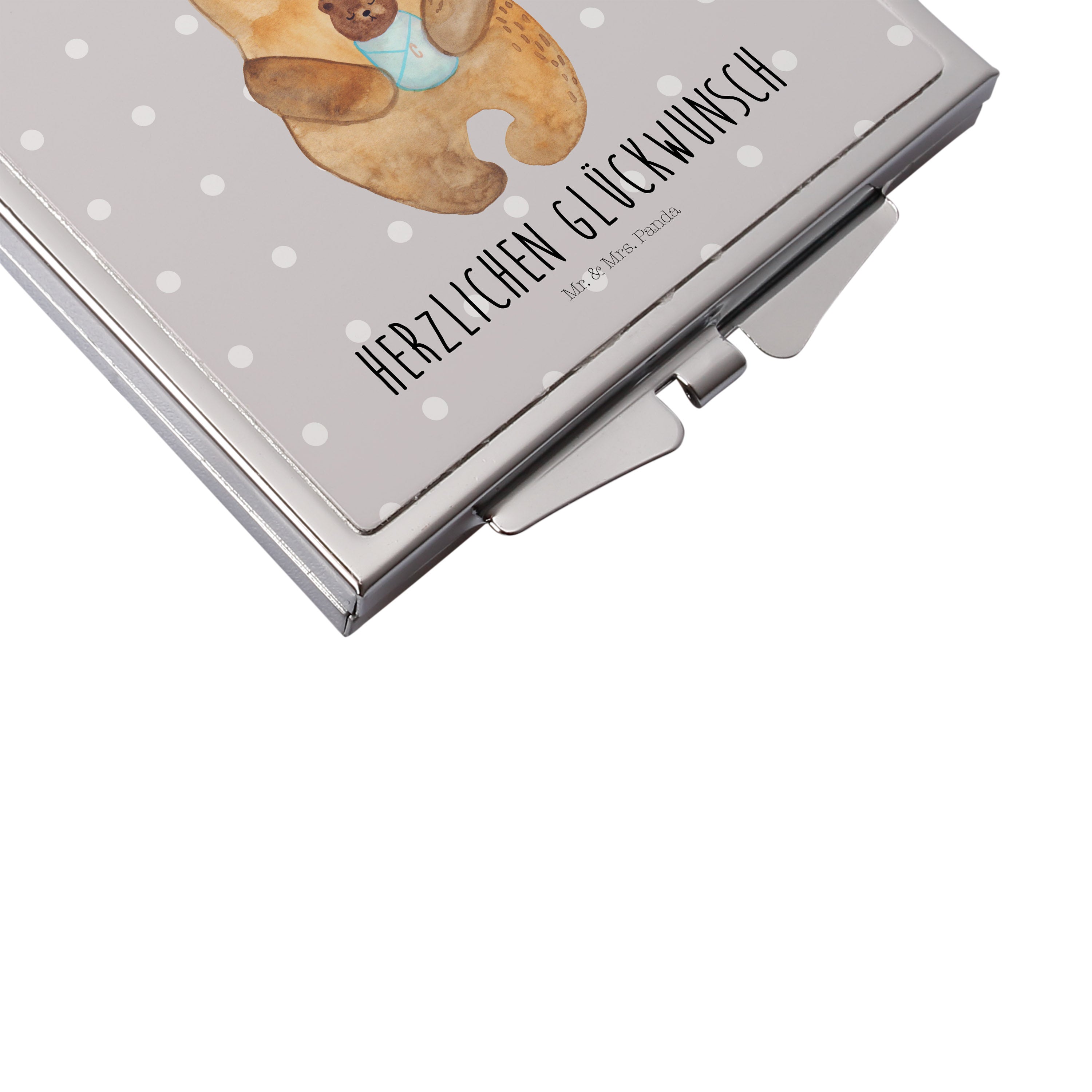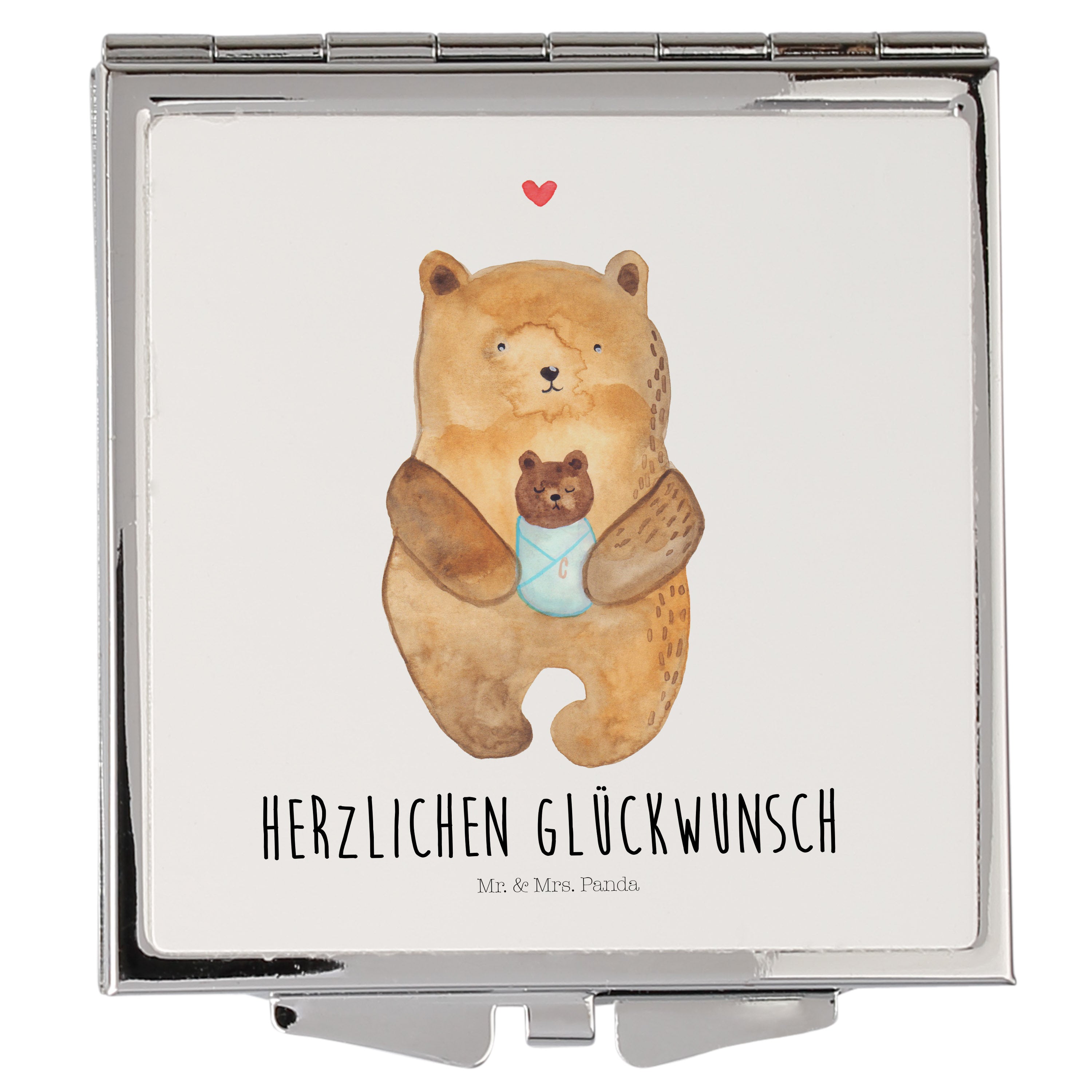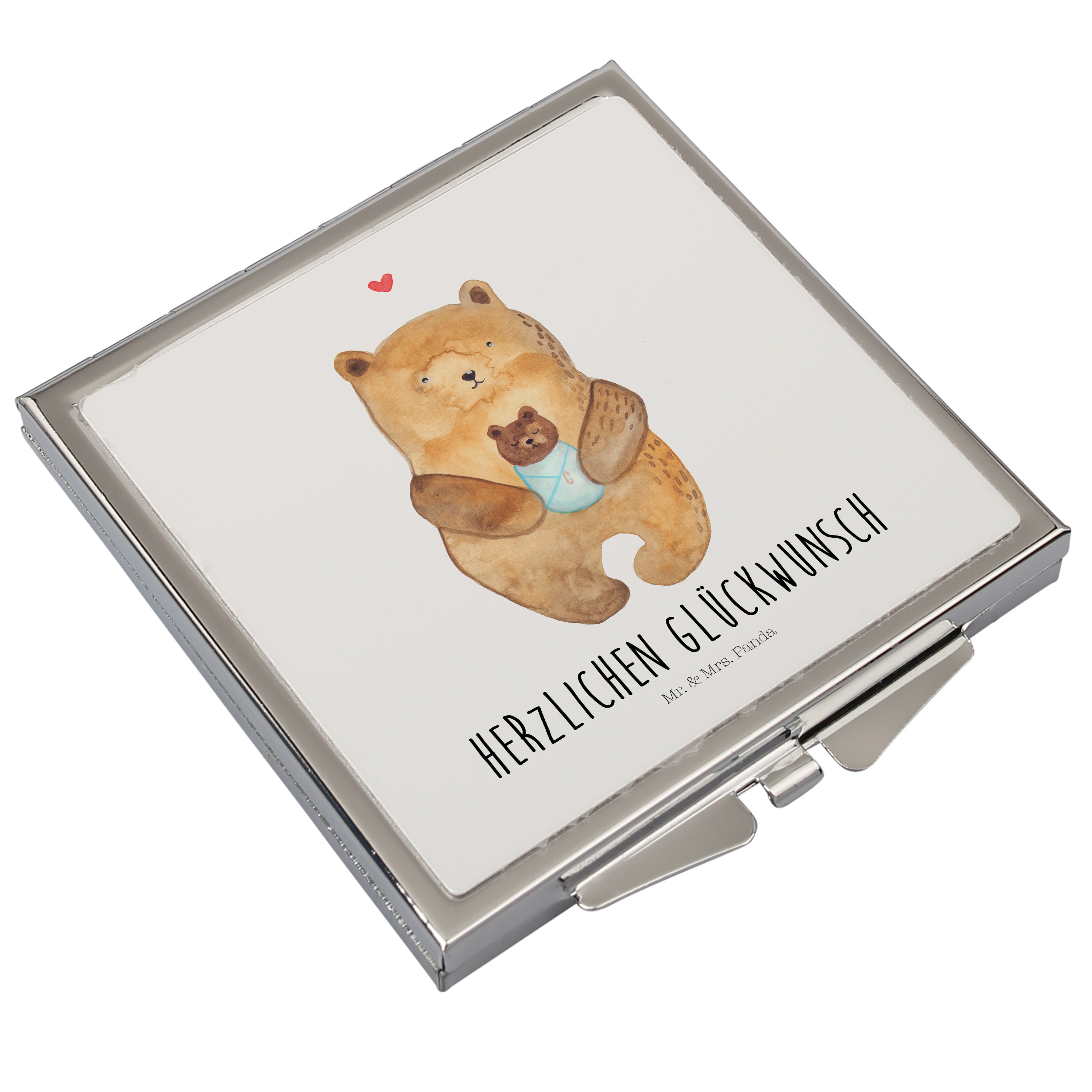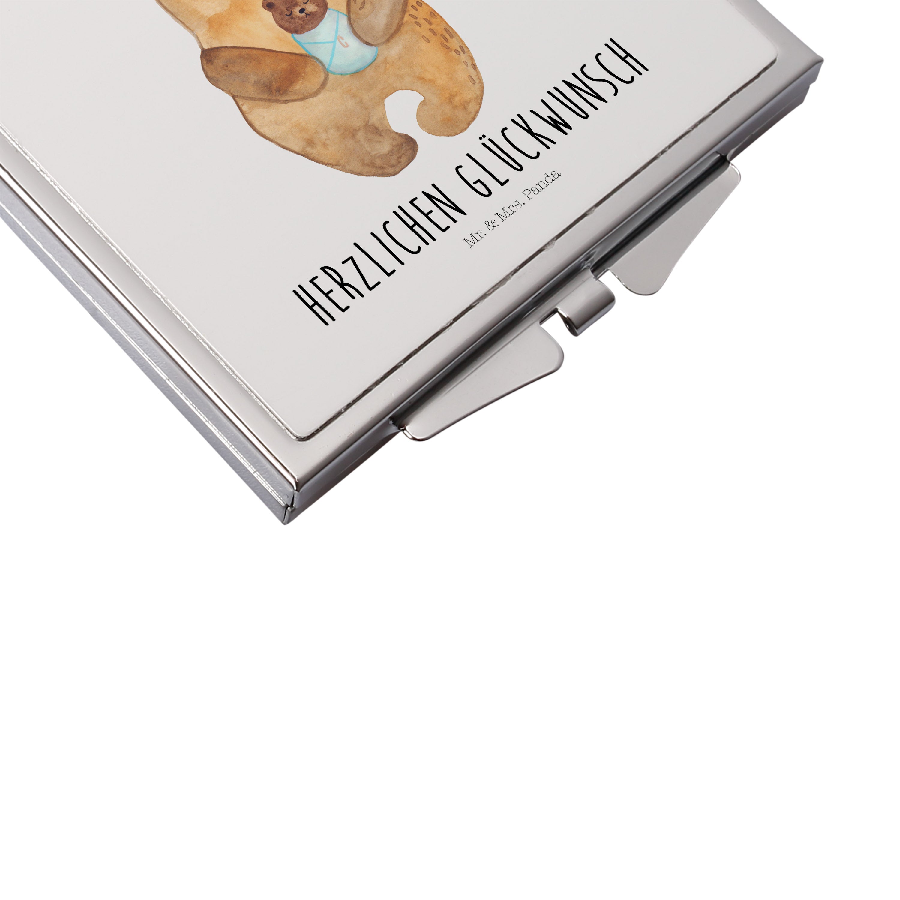 Handtaschenspiegel quadratisch Bär mit Baby Spiegel, Handtasche, Quadrat, silber, schminken, Schminkspiegel, Bär, Teddy, Teddybär, Eltern, Mutter, Baby, Taufe, Geburt, Nichte, Neffe, Enkel, Enkelin, Täufling, Geburtstag, Glückwunsch