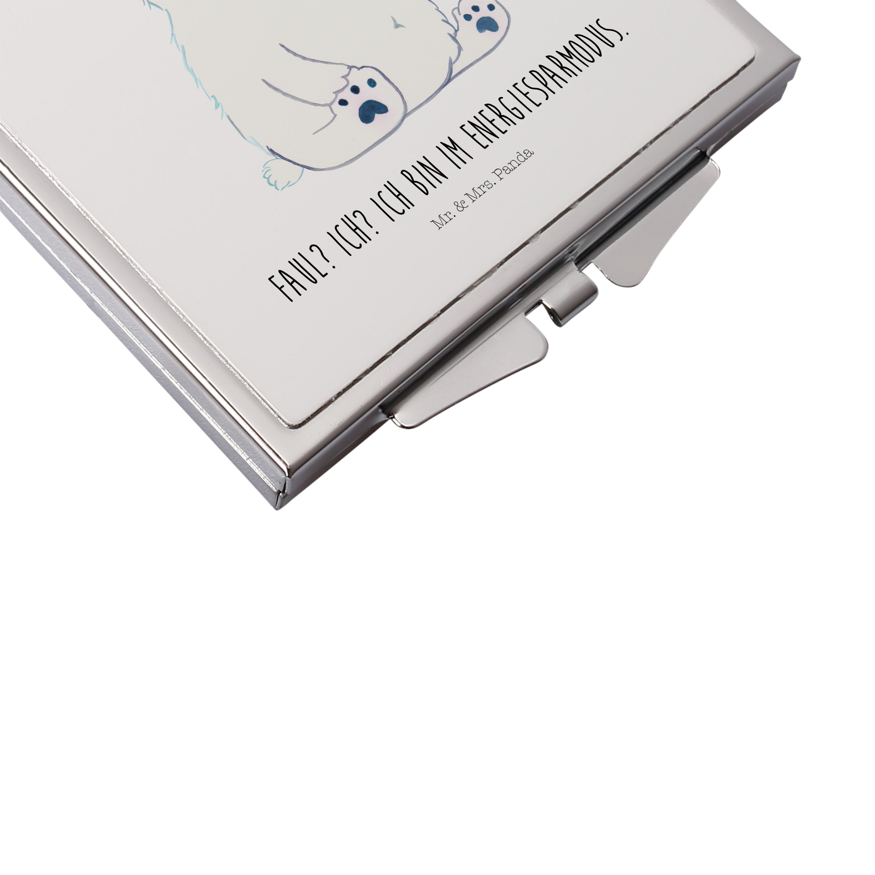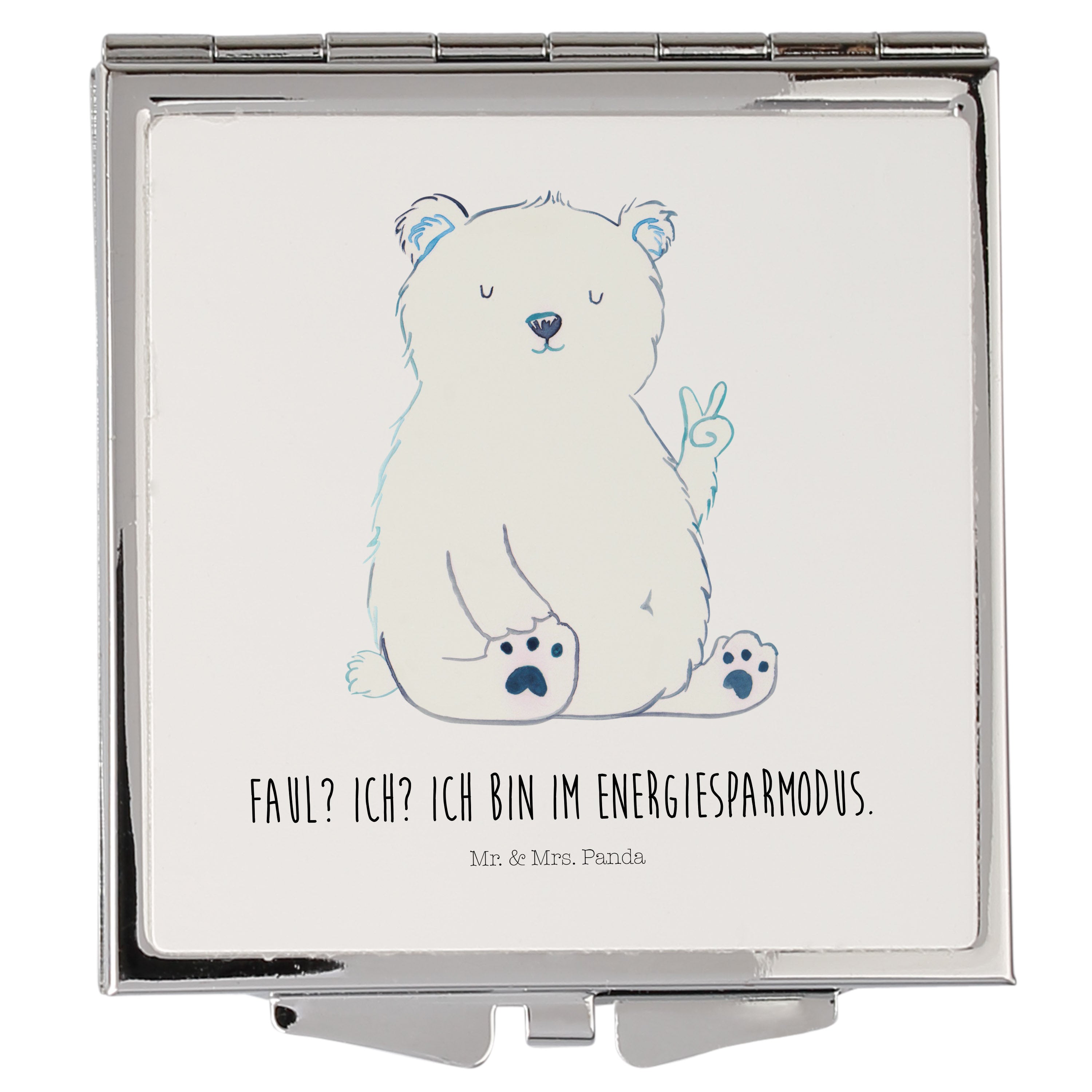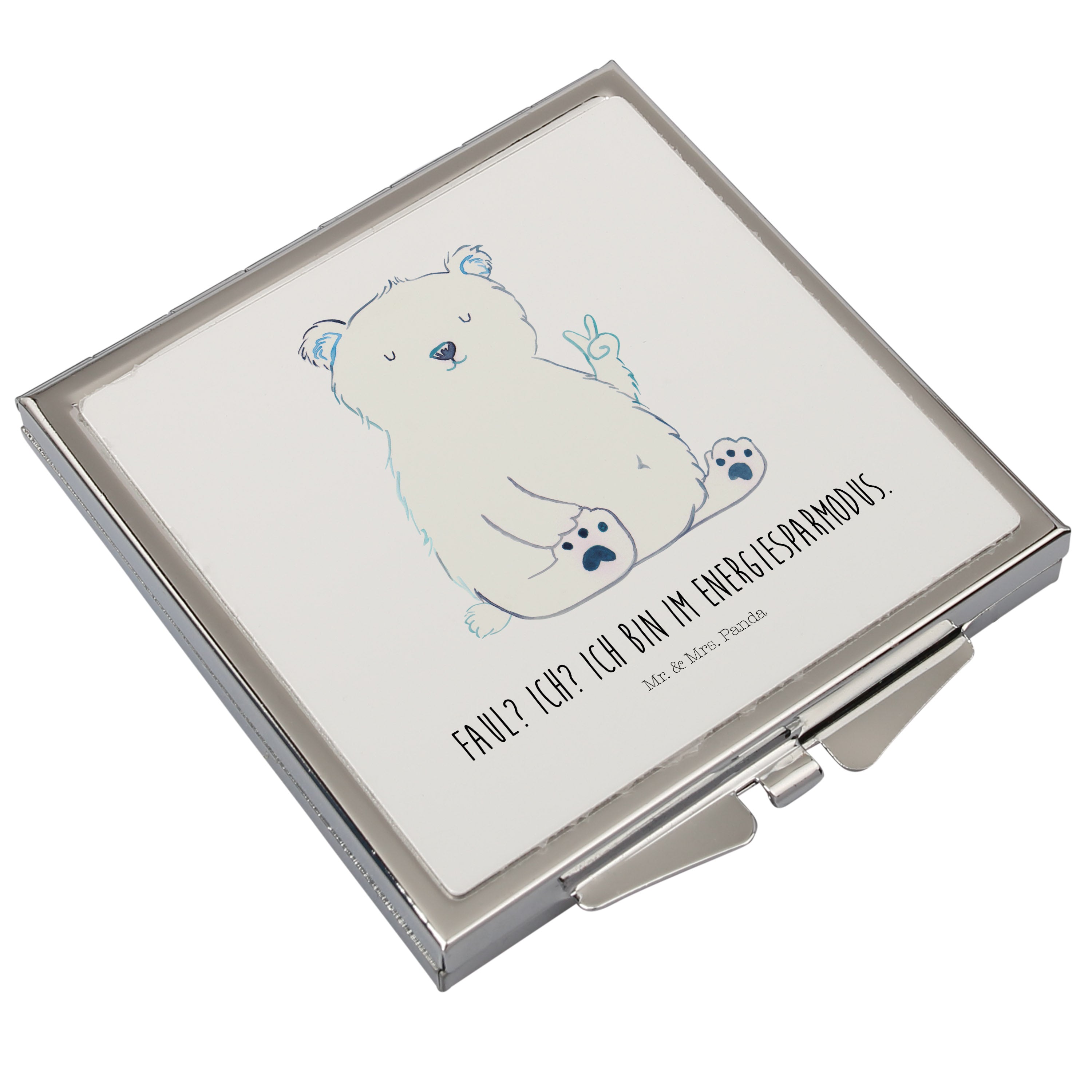 Handtaschenspiegel quadratisch Eisbär Faul - mit Spruch - Weiß