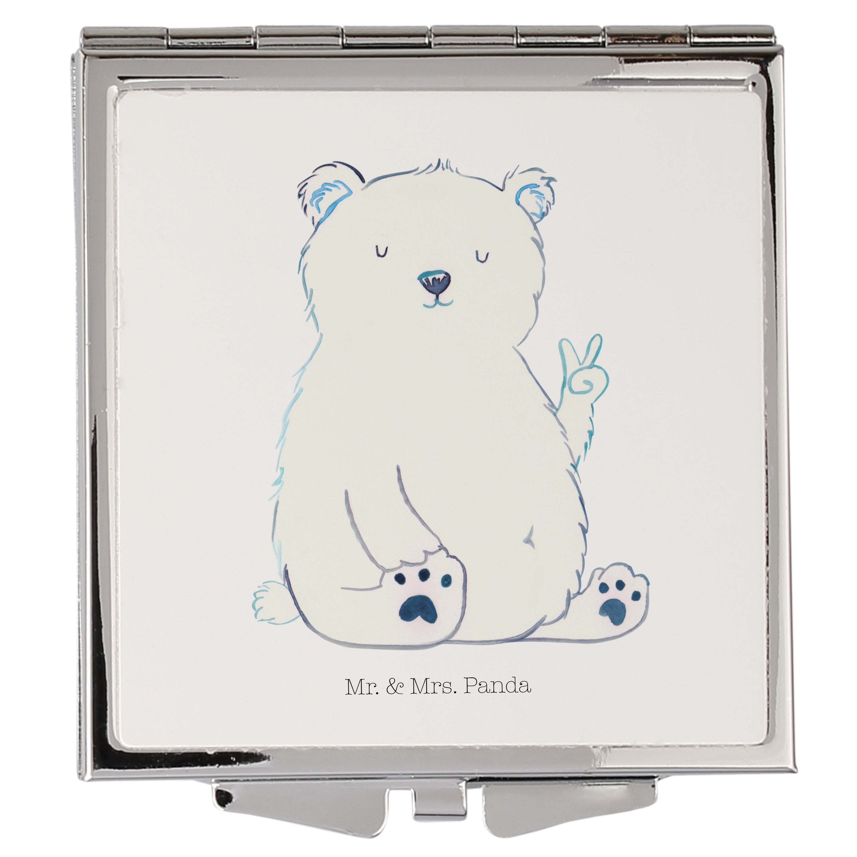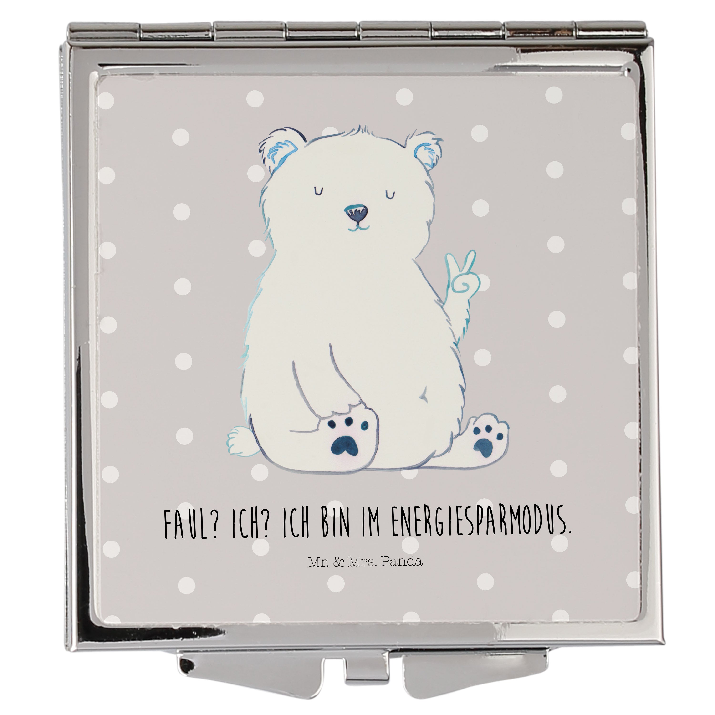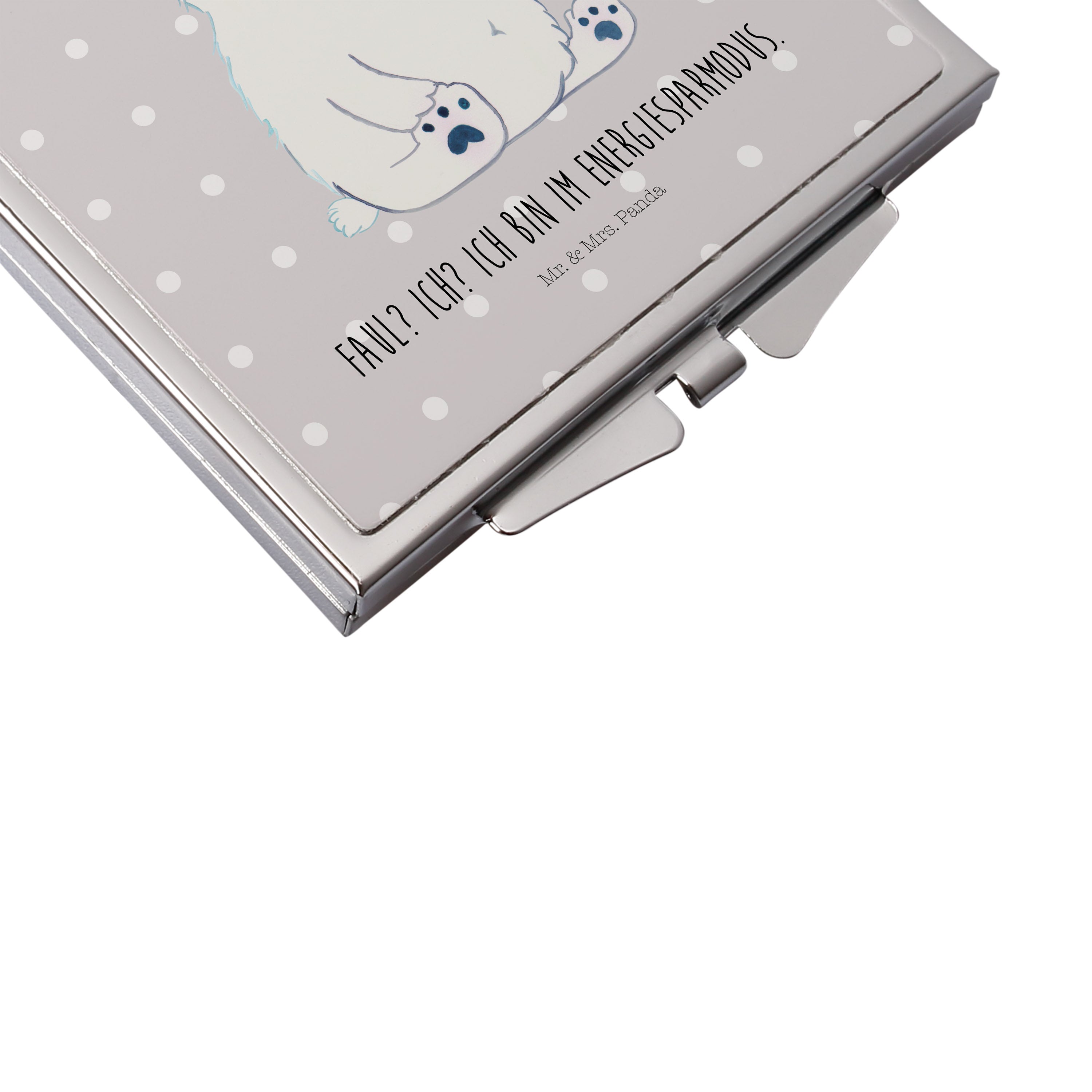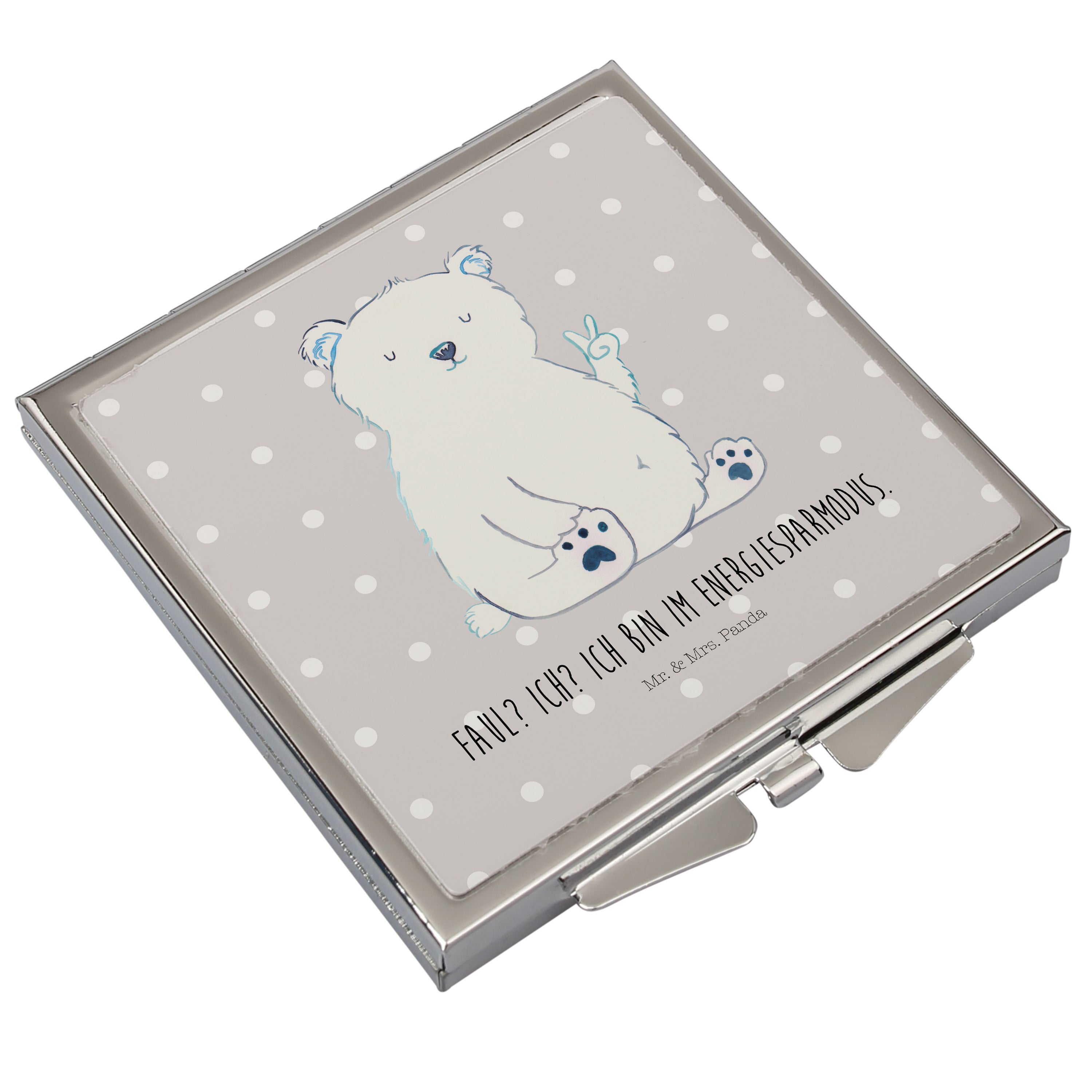 Handtaschenspiegel quadratisch Eisbär Faul - mit Spruch - Weiß