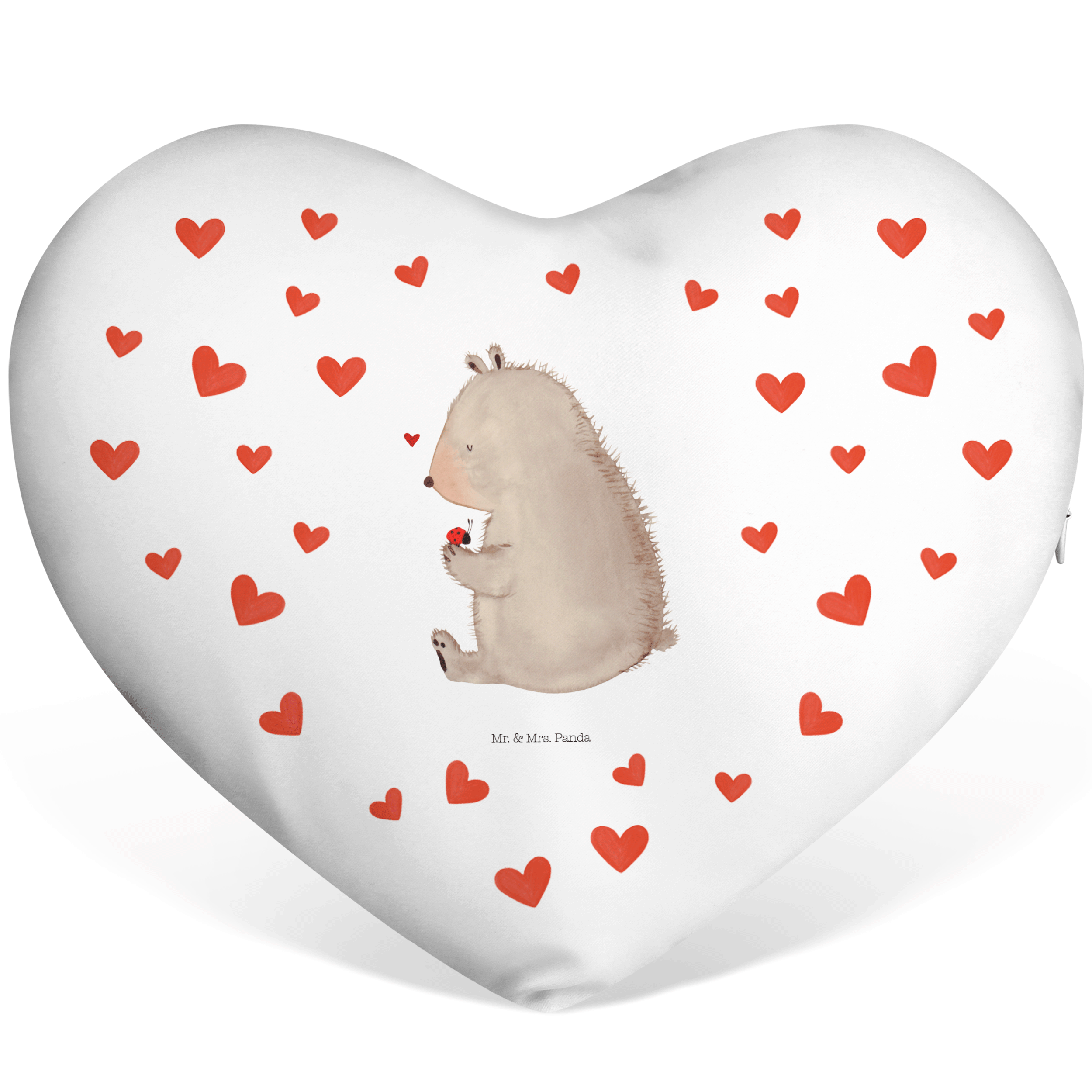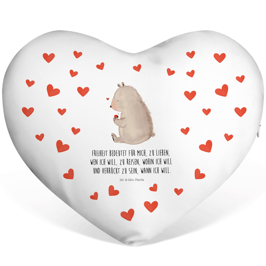 Herzkissen Bär mit Marienkäfer Kissen, Herzkissen, Herzform, Herz, Dekokissen, Bär, Teddy, Teddybär, Marienkäfer, Liebe, Freiheit, Motivation, Das Leben ist schön