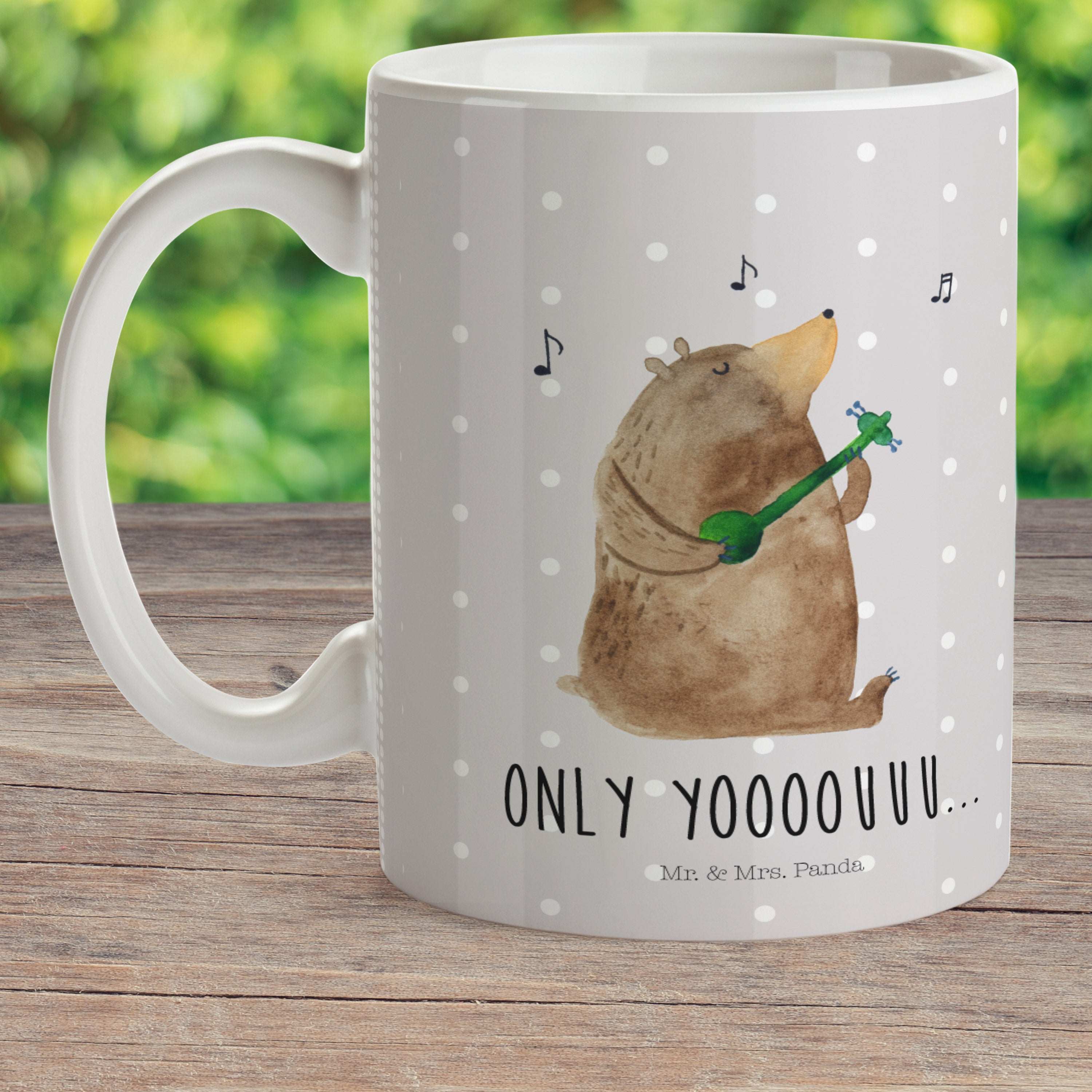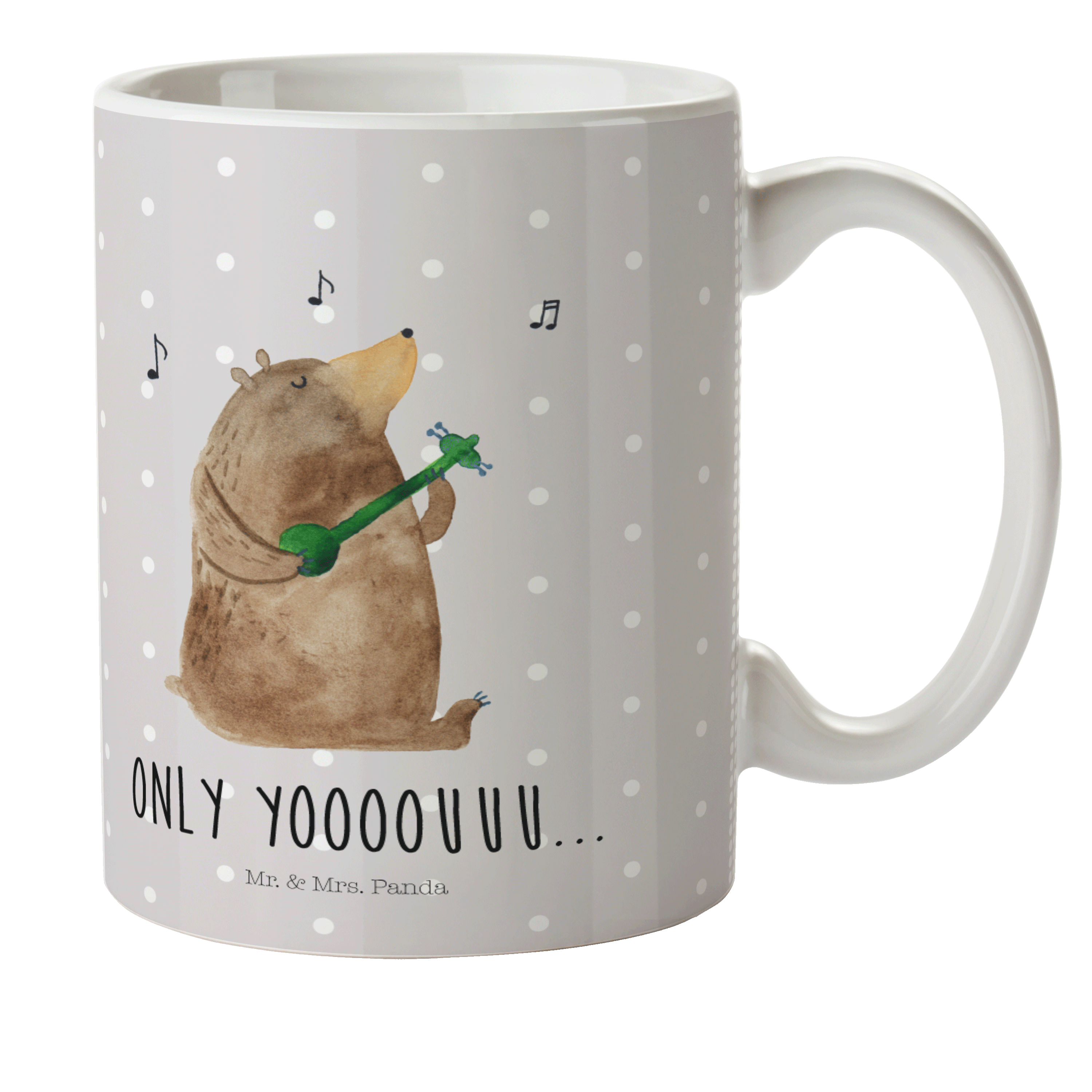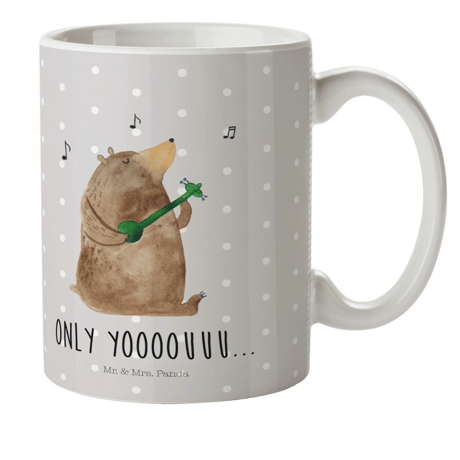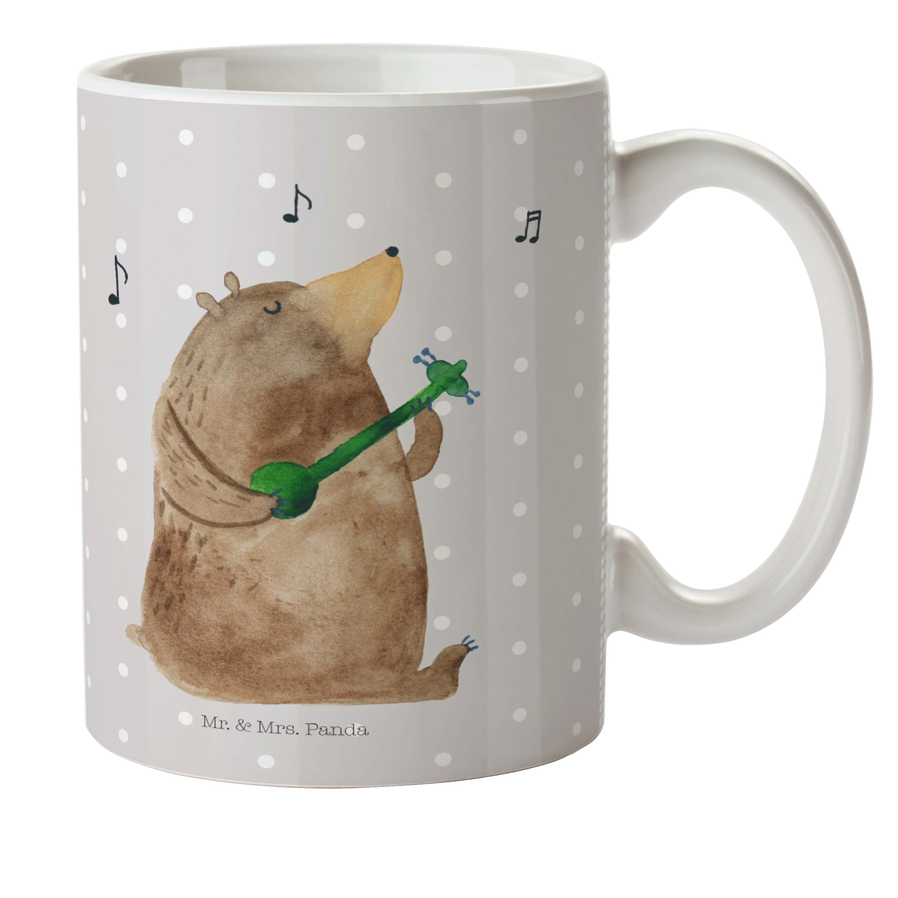 Kindertasse Bär Gitarre - mit Spruch - Grau Pastell