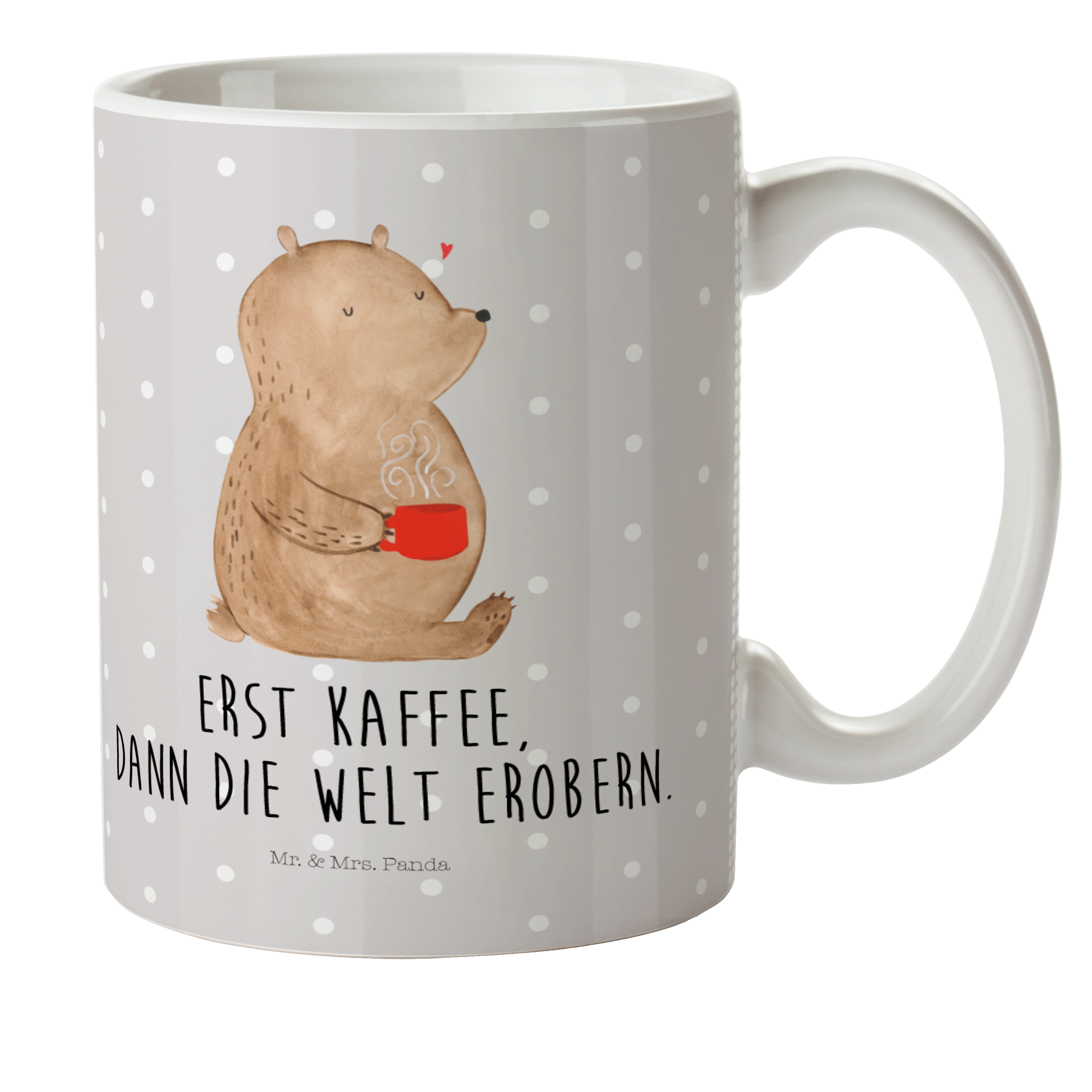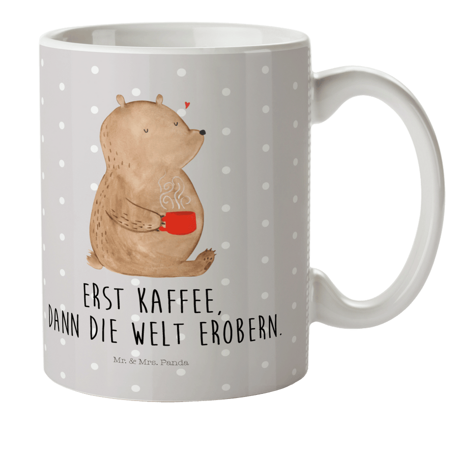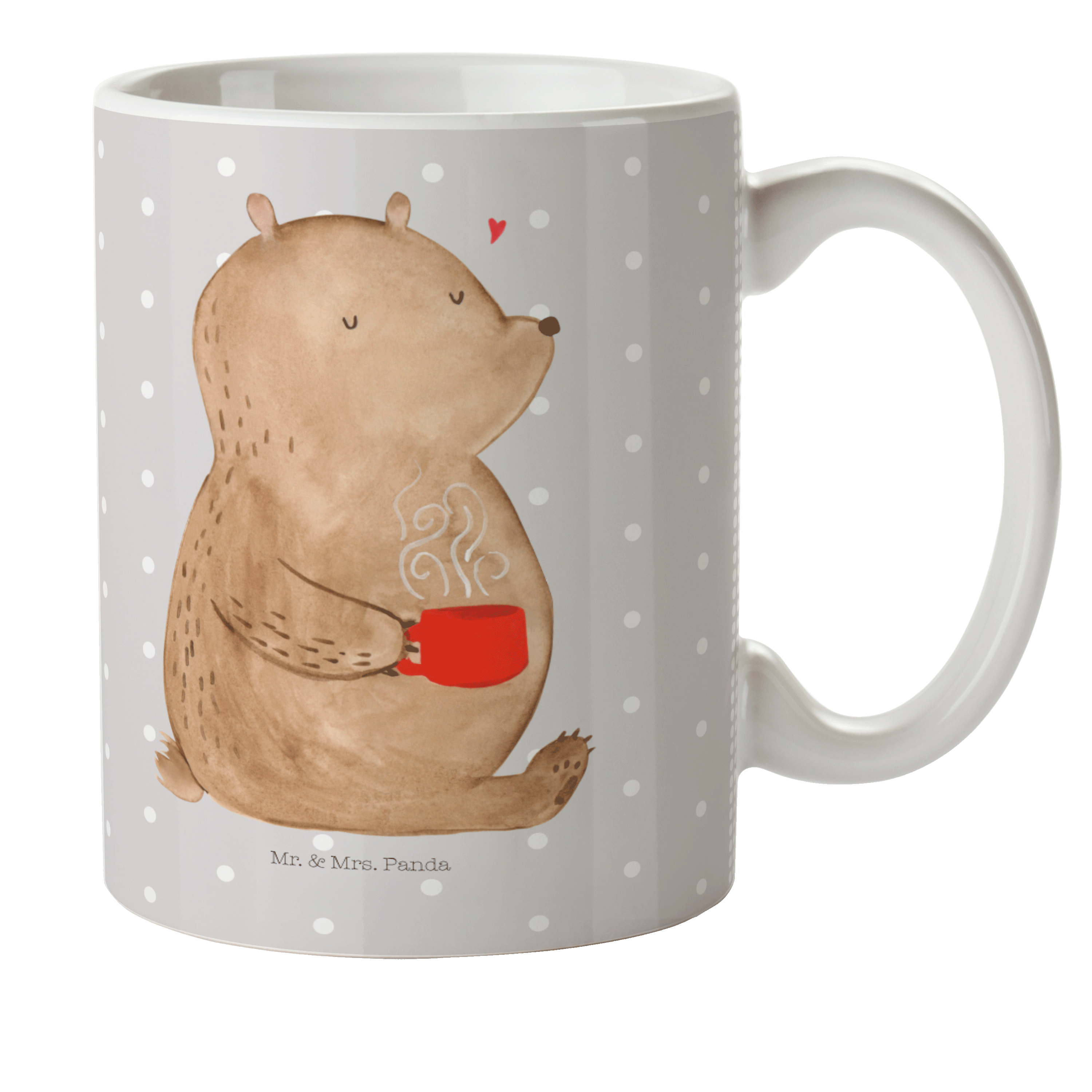 Kindertasse Bär Kaffee - mit Spruch - Grau Pastell