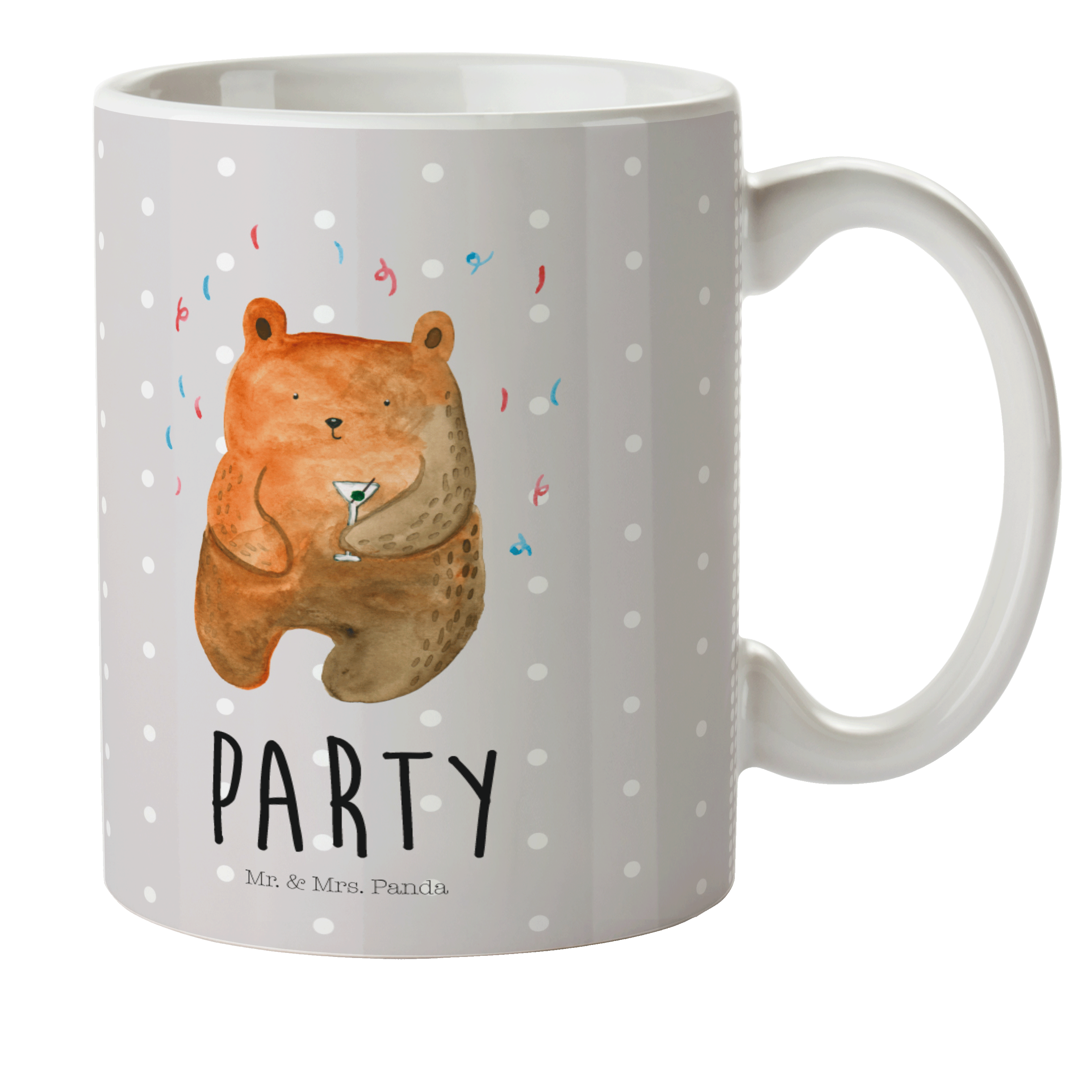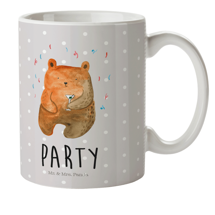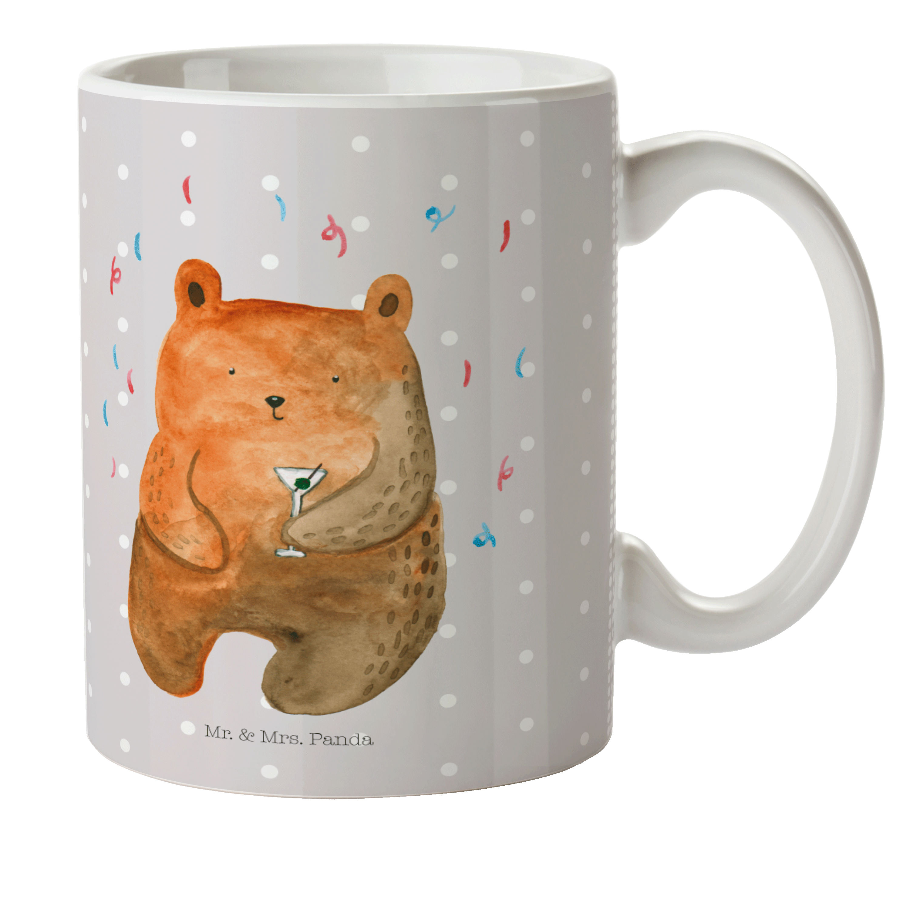 Kindertasse Bär Party - mit Spruch - Grau Pastell