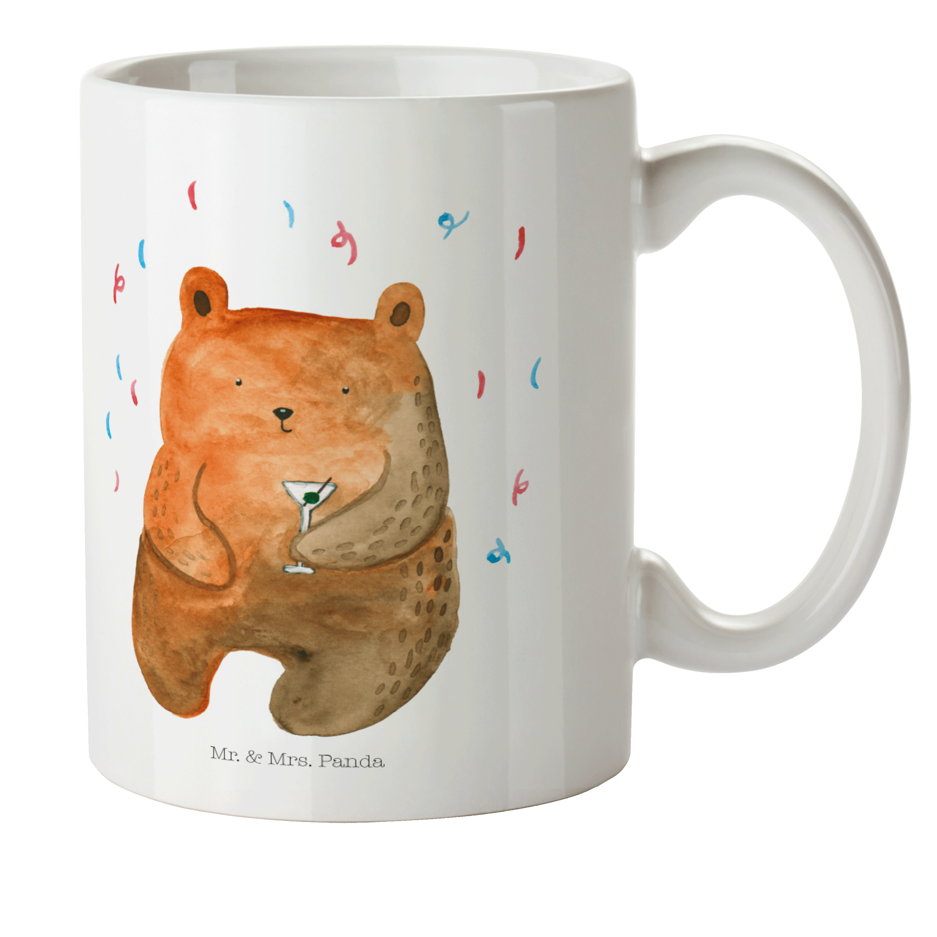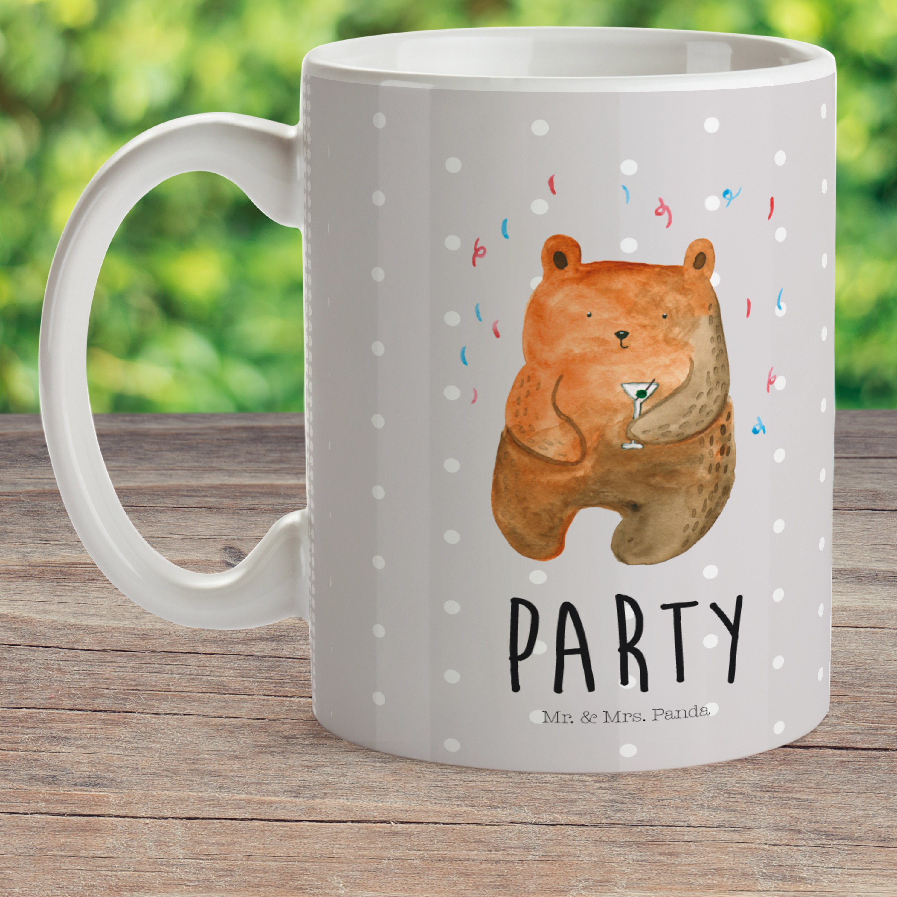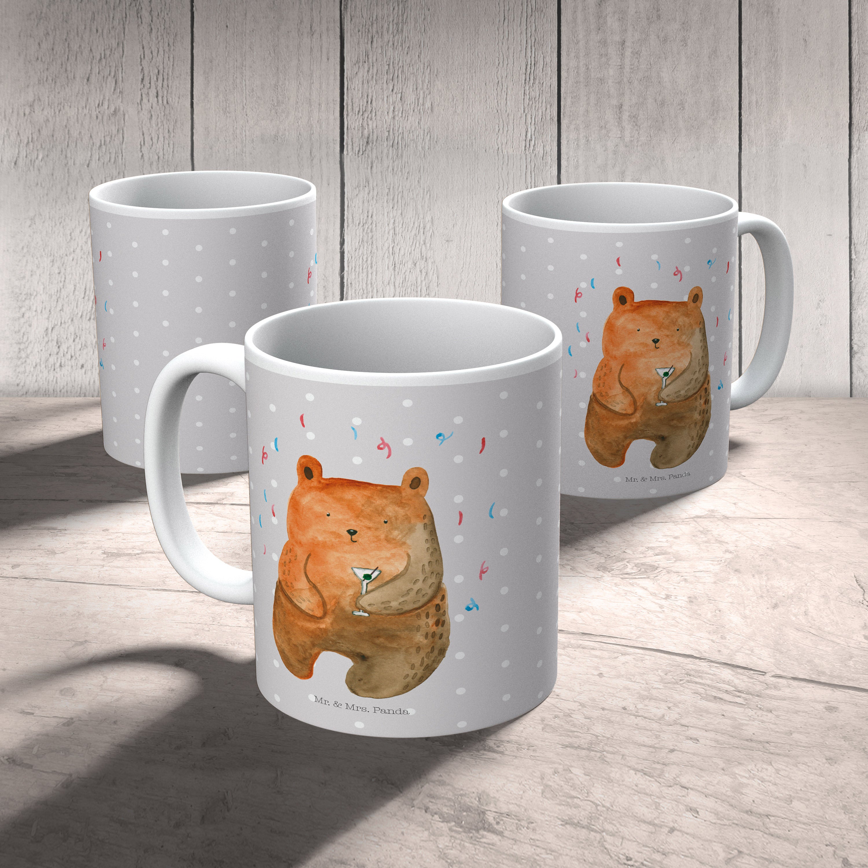 Kindertasse Bär Party - mit Spruch - Grau Pastell