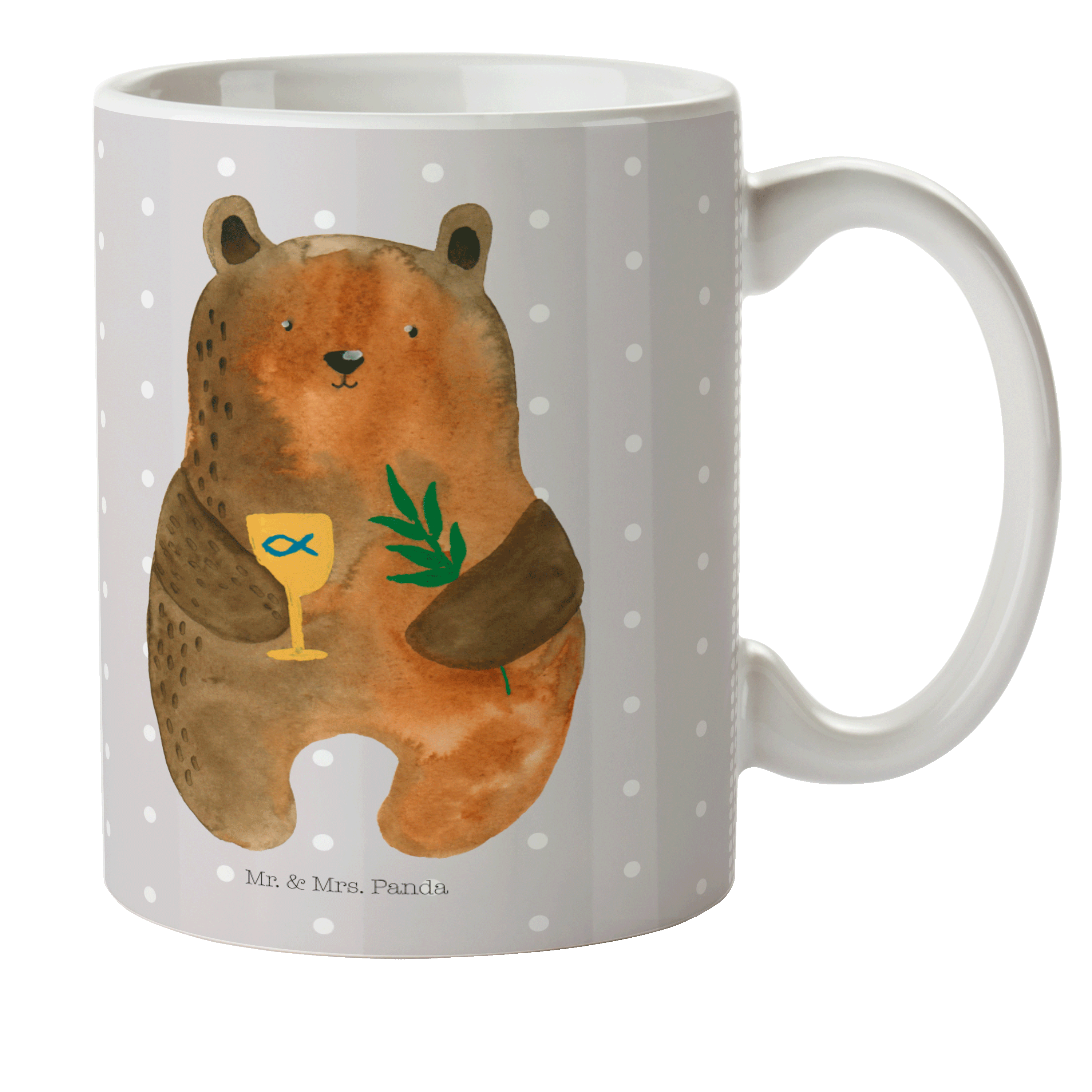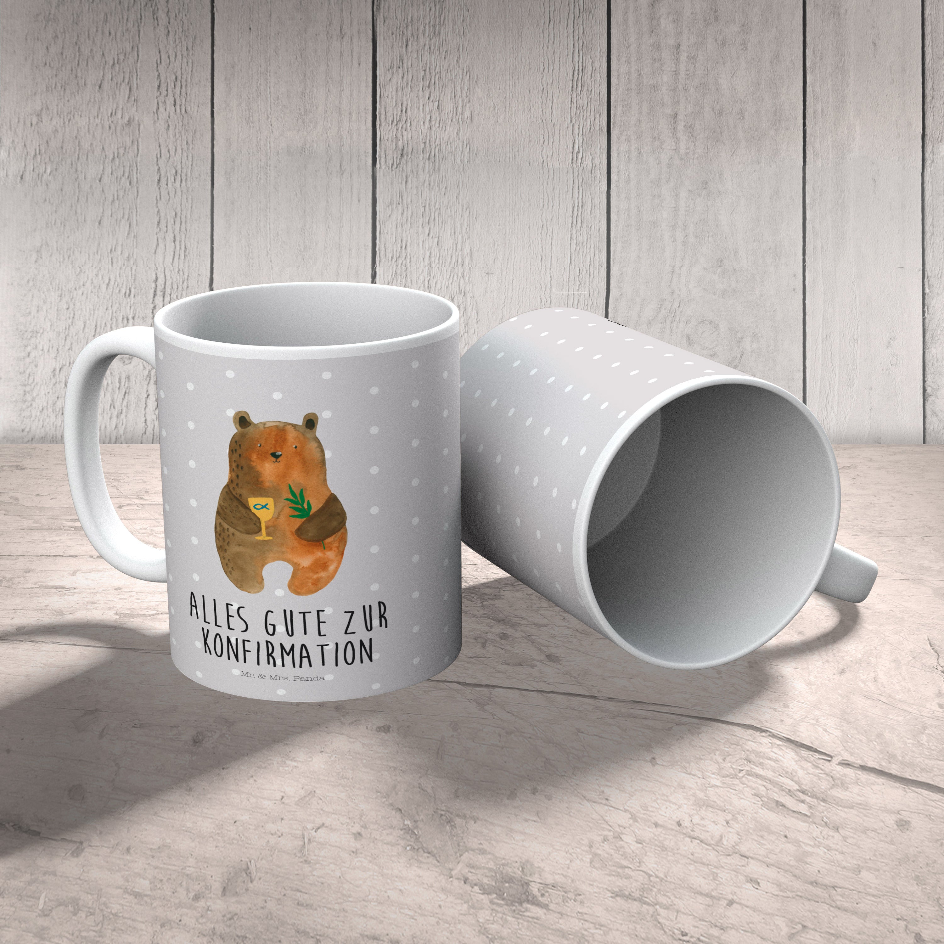 Kindertasse Konfirmation-Bär - mit Spruch - Grau Pastell