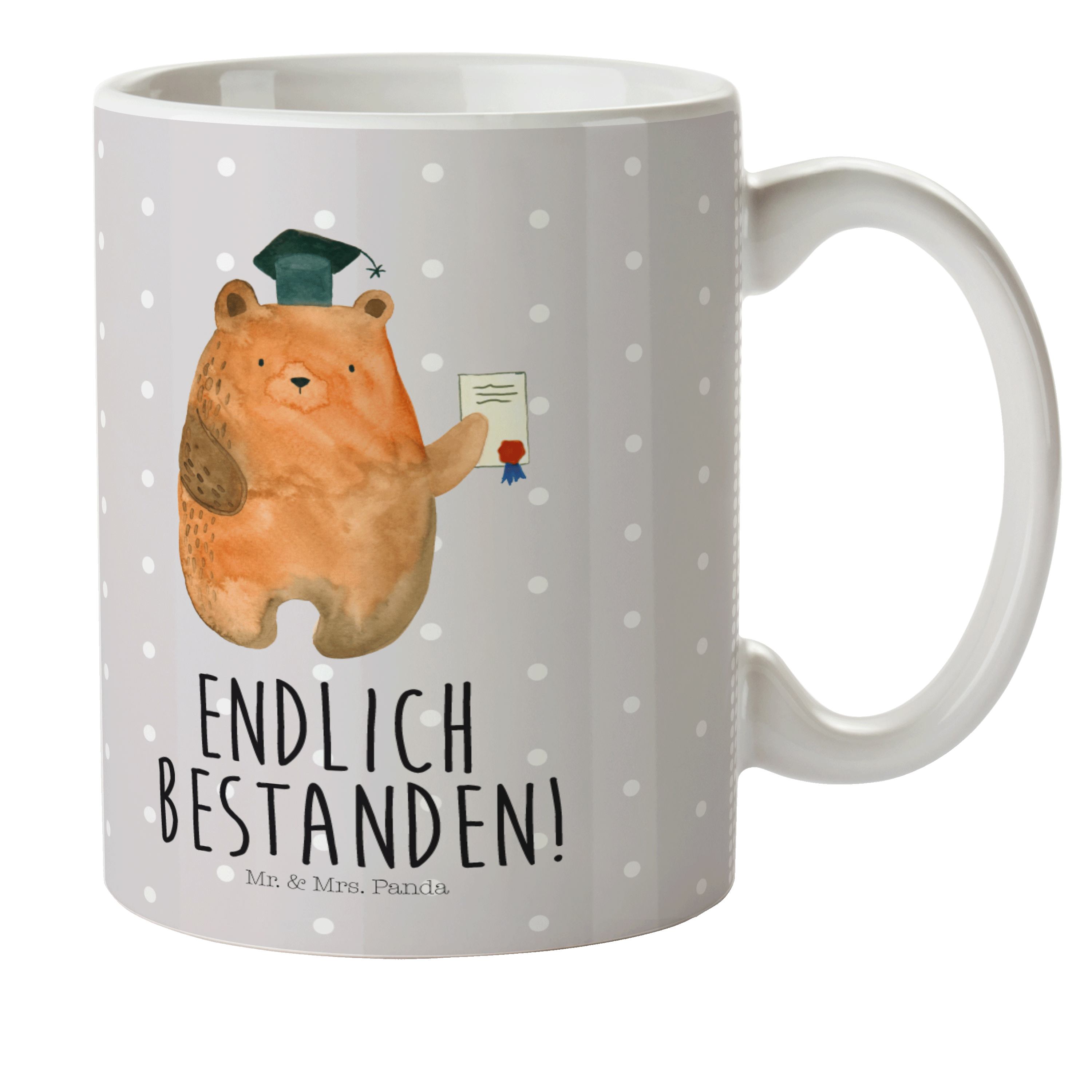 Herzlichen Glückwunsch! Endlich hast du es geschafft und deine Prüfung erfolgreich bestanden. Dieser süße Prüfungsbär von Mr. & Mrs. Panda begleitet dich auf deinem weiteren Lebensweg und erinnert dich immer daran, dass du alles schaffen kannst, wenn du nur daran glaubst.