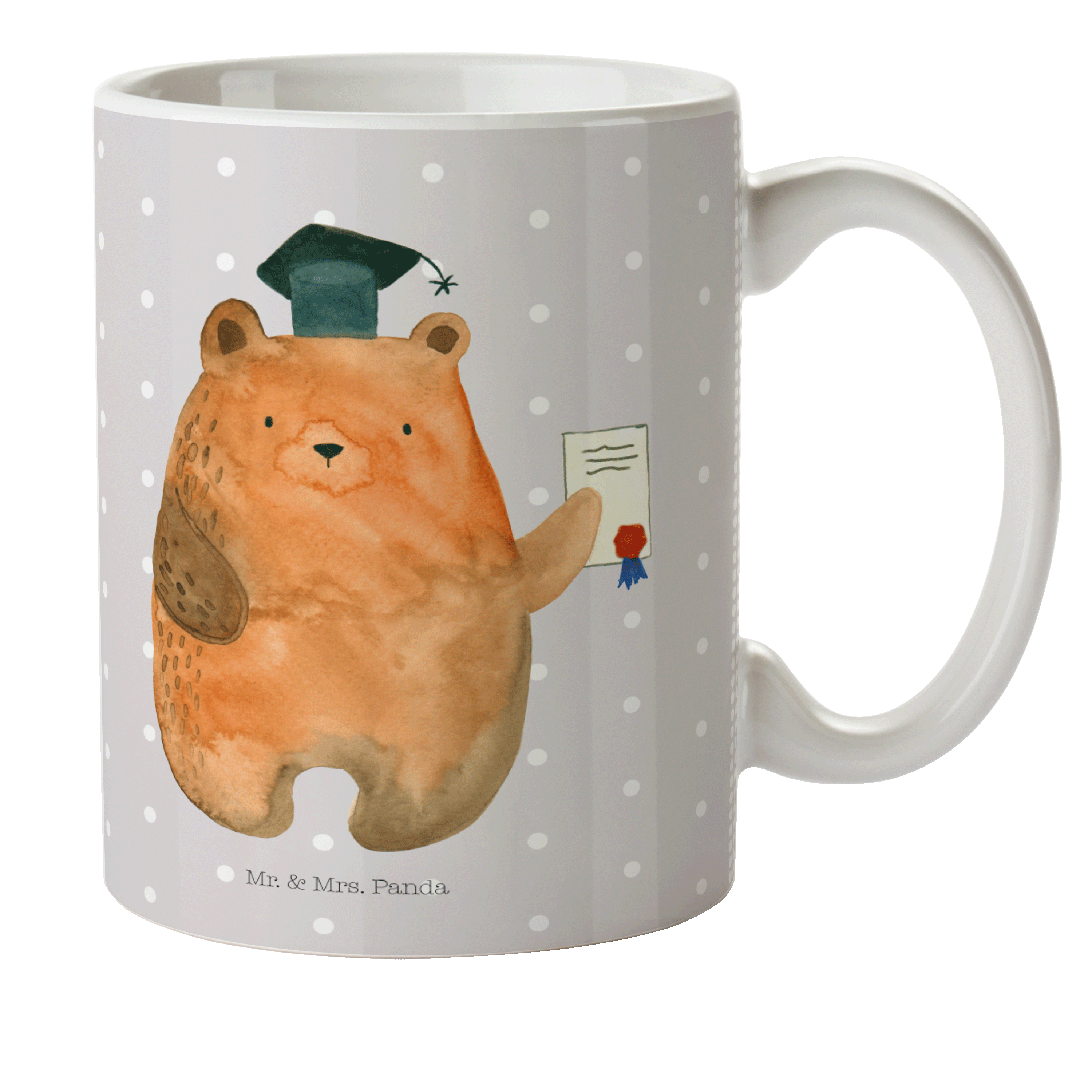 Kindertasse Prüfungsbär - mit Spruch - Grau Pastell
