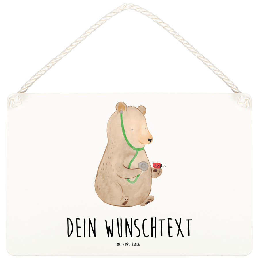 Personalisiertes Deko Schild Bär Arzt - Weiß - DIN A4
