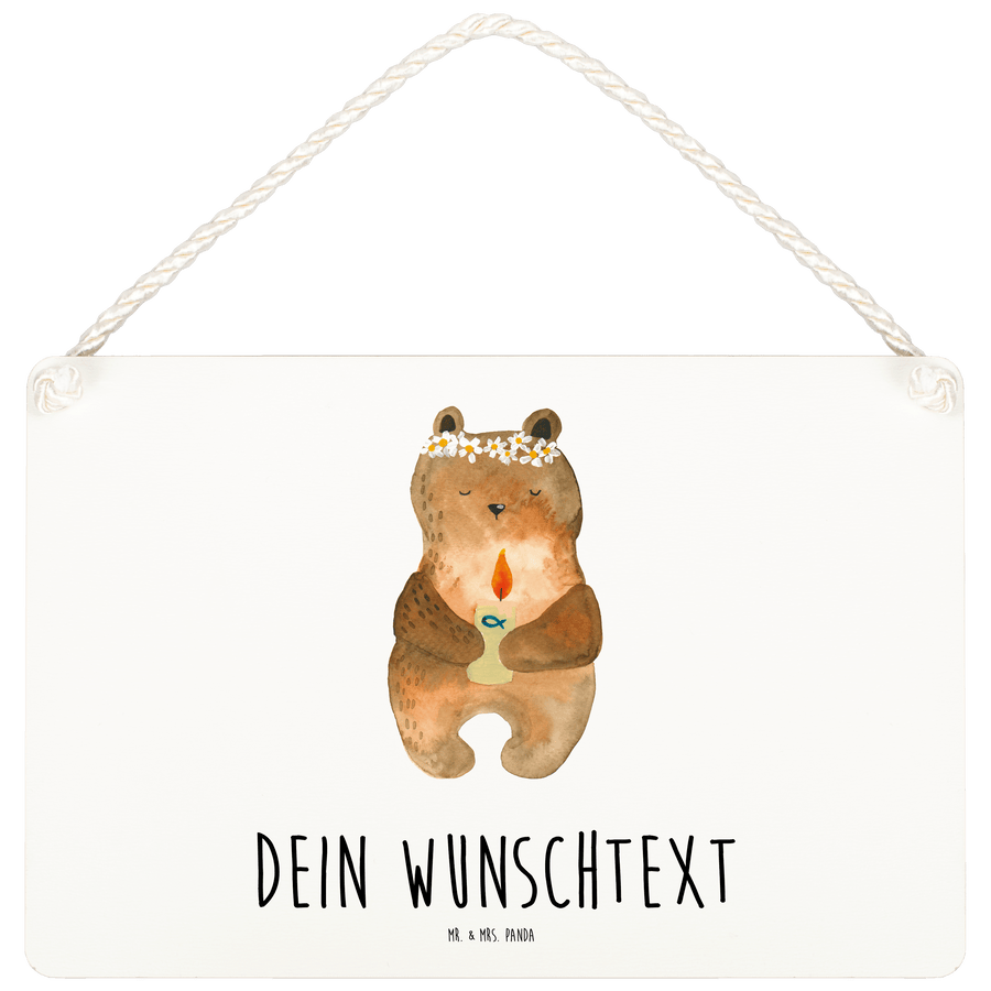 Personalisiertes Deko Schild Kommunion-Bär - Weiß - DIN A6