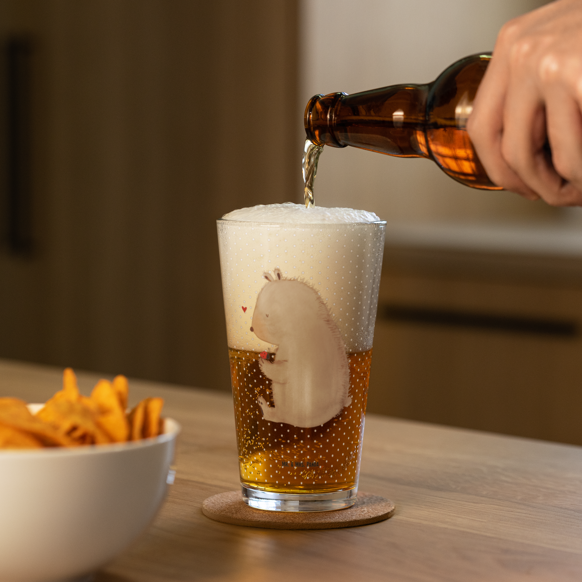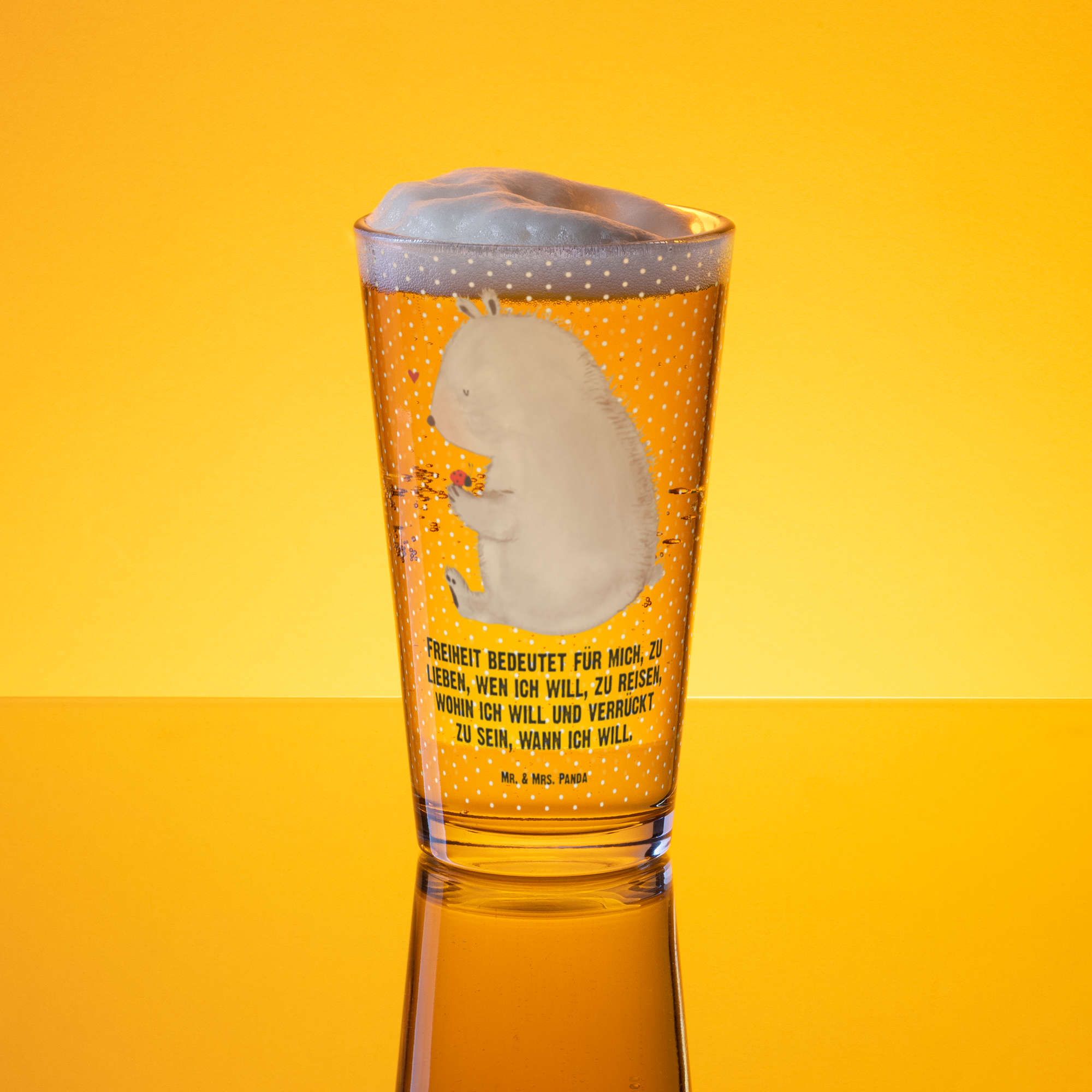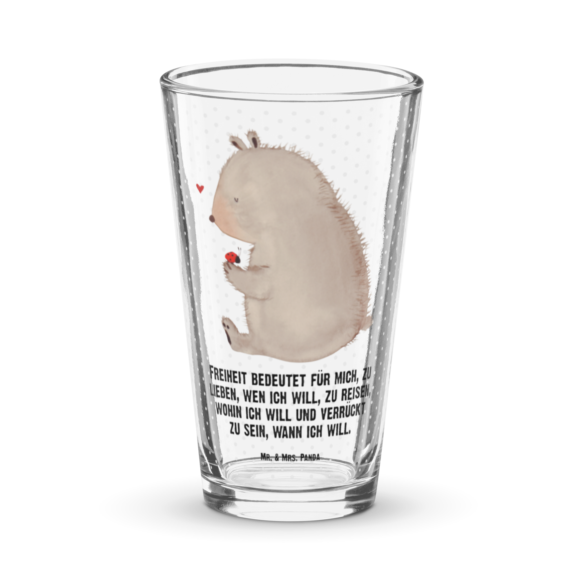 Premium Trinkglas Bär mit Marienkäfer - mit Spruch