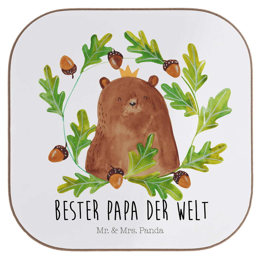 Quadratische Untersetzer Bär König - mit Spruch - Weiß