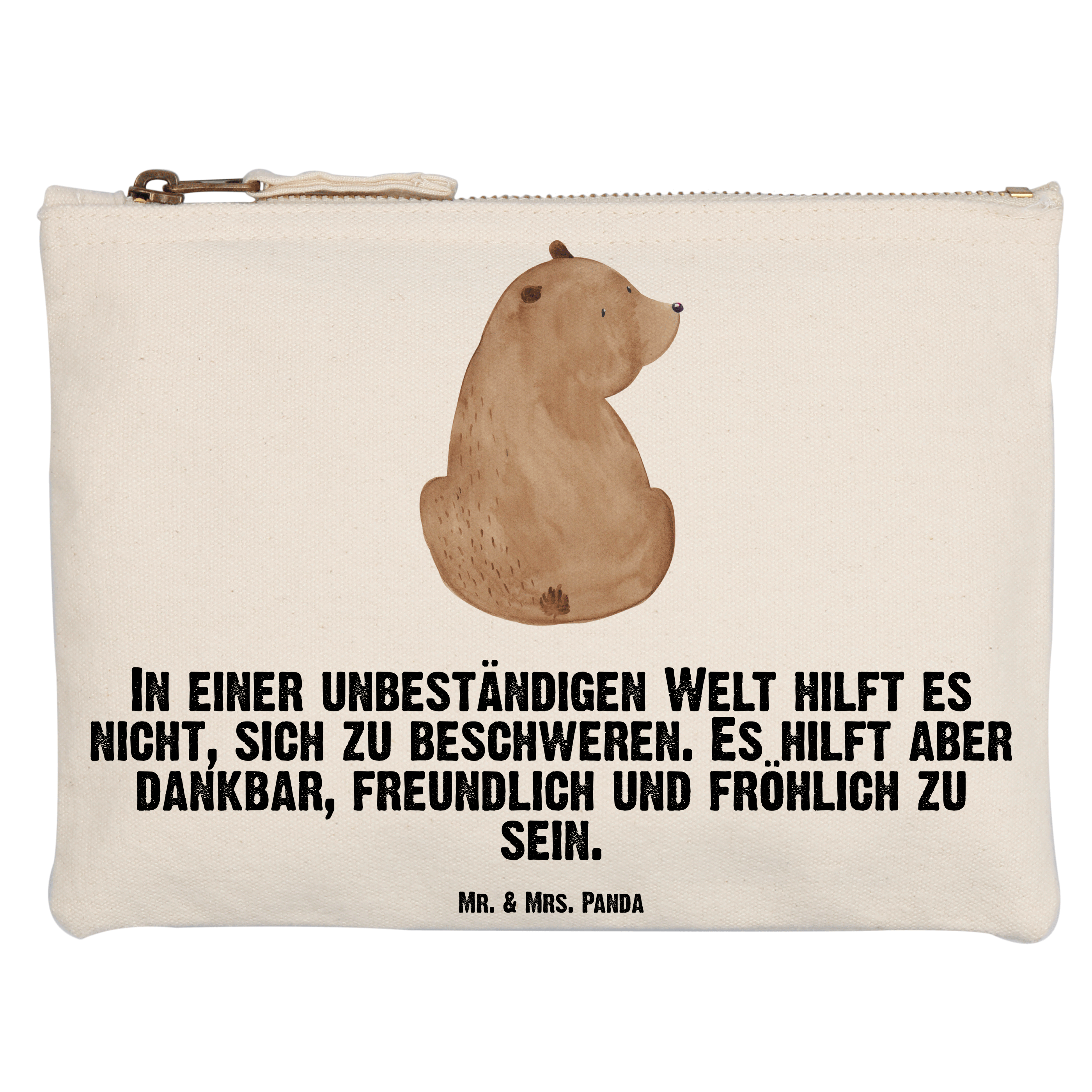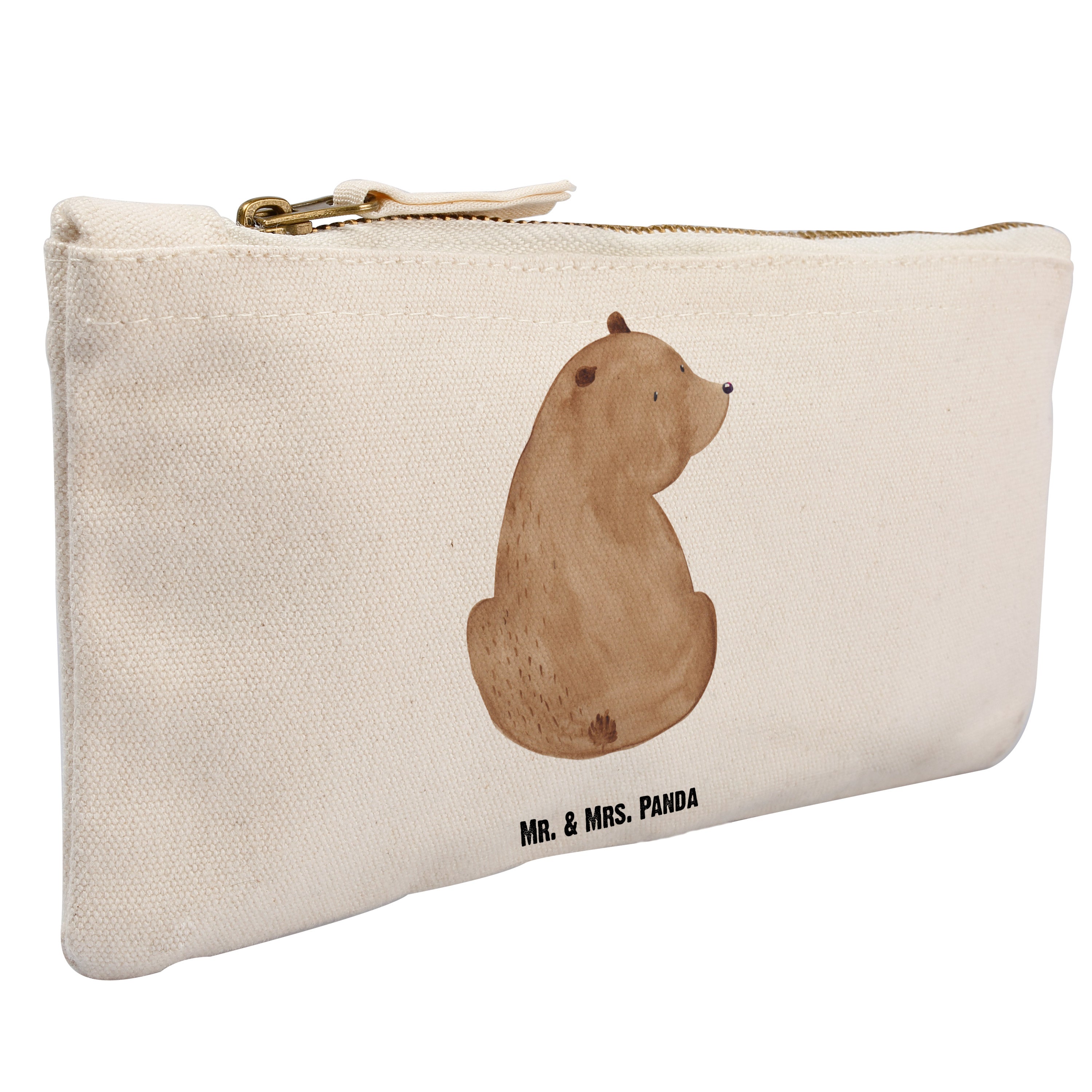 Schminktasche Bär Schulterblick Schminktasche, Kosmetiktasche, Kosmetikbeutel, Stiftemäppchen, Etui, Federmappe, Makeup, XXL, Schminketui, Kosmetiketui, Schlamperetui, Bär, Teddy, Teddybär, Selbstachtung, Weltansicht, Motivation, Bären, Bärenliebe, Weisheit