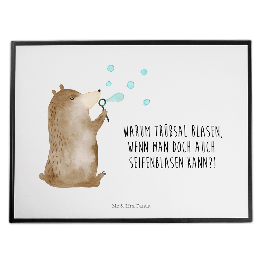 Schreibtischunterlage Bär Seifenblasen - mit Spruch - Weiß