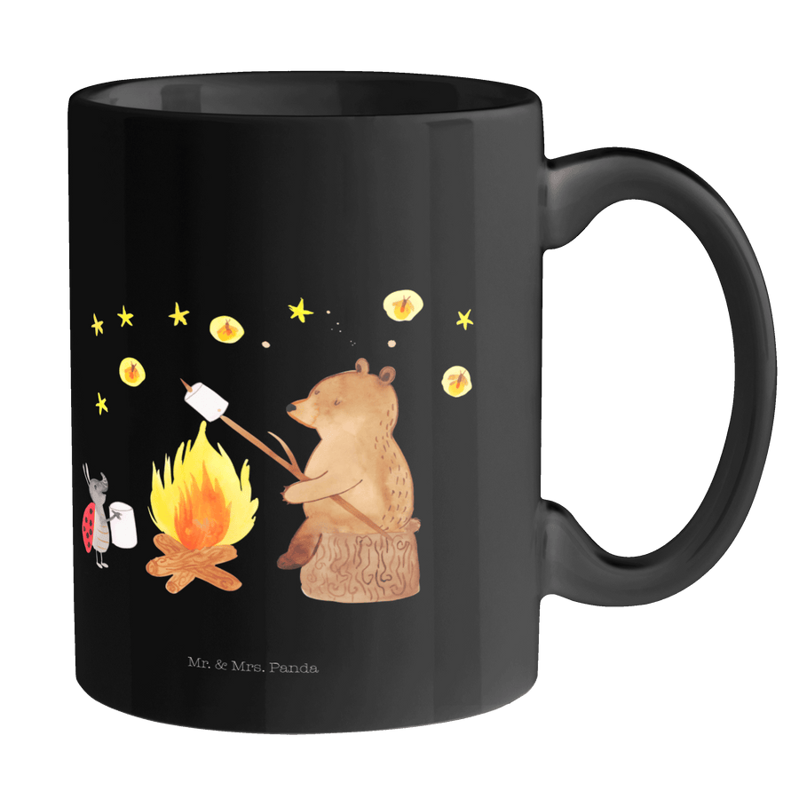 Tasse Bär & Marienkäfer Lagerfeuer - ohne Spruch - Schwarz