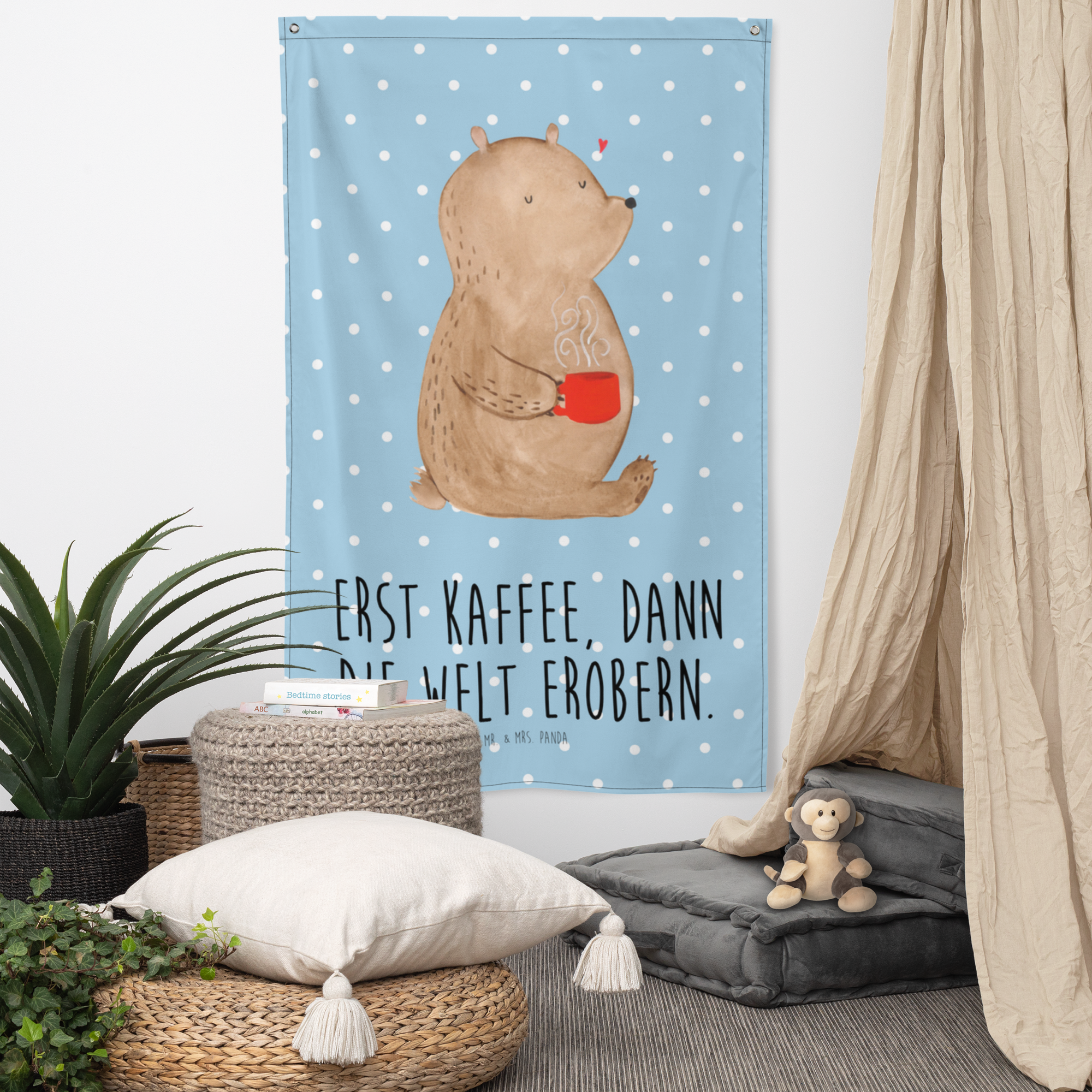 Wandteppich Bär Kaffee Wandbehang, Dekoration, Boho, Wandteppich, Wandtuch, Wanddeko, Tapisserie, Tapestry, Wandbild, Textil-Kunst, Schmuck-Wandbehang, Wand Deko, Kinderzimmer, Kinderzimmer Wand, Kinderzimmer Deko, Kinderzimmer Wanddeko, Bär, Teddy, Teddybär, Kaffee, Coffee, Bären, guten Morgen, Morgenroutine, Welt erobern, Welt retten, Motivation