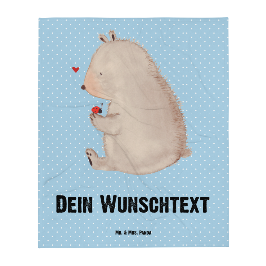 Die super flauschige personalisierte Babydecke mit Namen von Mr. & Mrs. Panda kann mit einem Namen bedruckt werden und ist ideal für kalte Monate und Tage. Die Größe der Kuscheldecke beträgt 127 x 153 cm und ist somit perfekt, um es sich im Wohnzimmer auf dem Sofa oder im Schlafzimmer auf dem Bett gemütlich zu machen.Die Sofadecke besteht aus Kuschel Fleece Mikrofaser und ist extrem flauschig. Die fellartige Kuscheldecke schmiegt sich herrlich weich an deinen Körper und wärmt außerordentlich gut, so wirst du sicherlich nicht frieren. Die Decke zeichnet sich durch ihre hochwertige und strapazierfähige Qualität aus. Alternativ kannst du die Decke auch 140x200 cm kaufen. Sie eignet sich auch optimal als Tagesdecke für Kinder und Erwachsene.