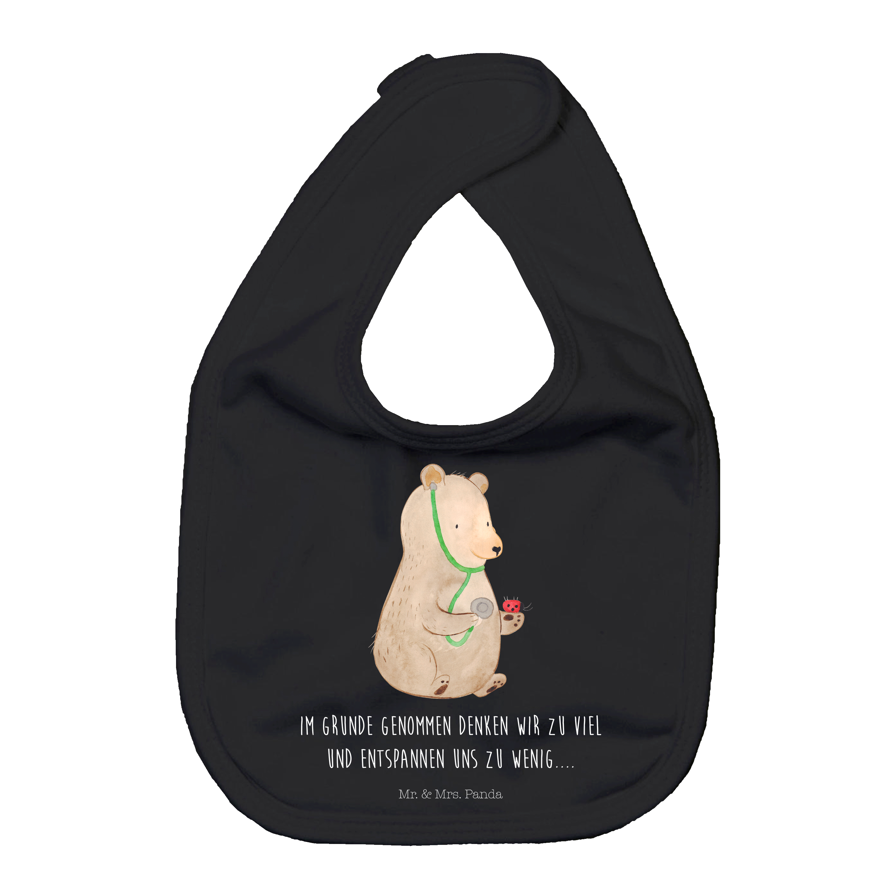 Organic Babylätzchen Bär Arzt - mit Spruch - Schwarz