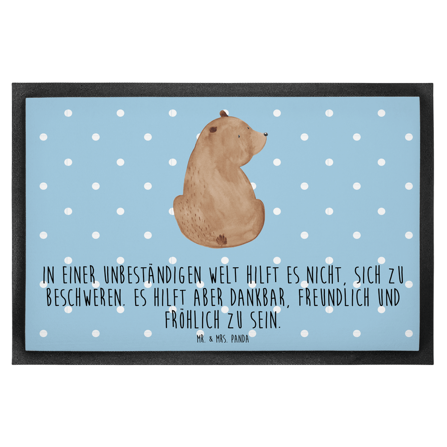 Fußmatte Bär Schulterblick - 60 x 90 cm - mit Spruch - Blau Pastell