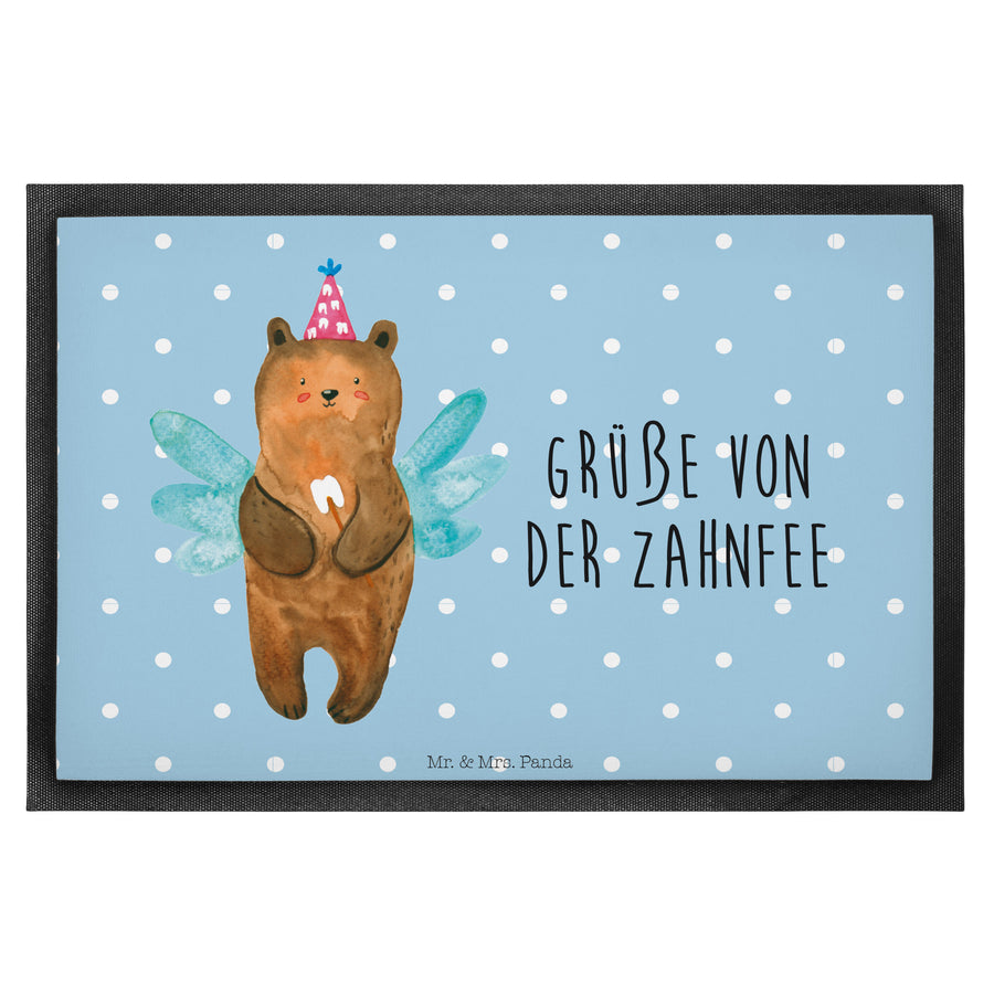 Fußmatte Zahnfee Bär - 60 x 90 cm - mit Spruch - Blau Pastell