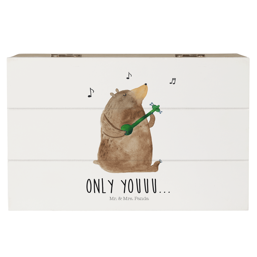 Holzkiste Bär Gitarre - 19 x 12 cm - mit Spruch - Weiß