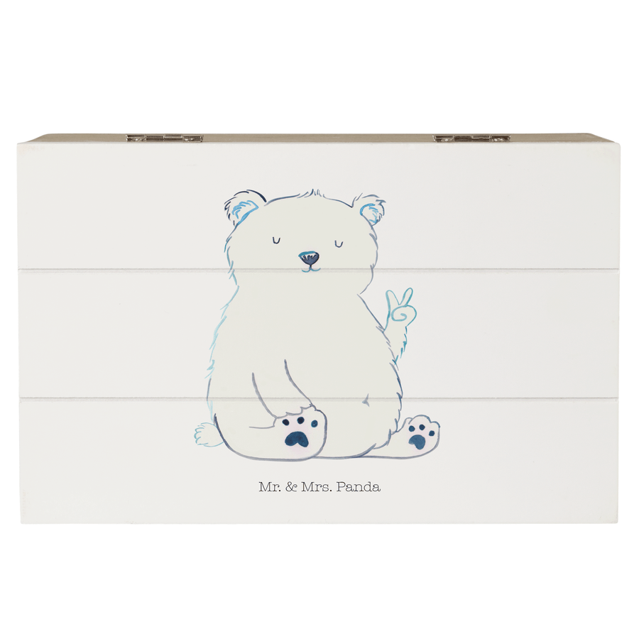 Holzkiste Eisbär Faul - 19 x 12 cm - ohne Spruch - Weiß