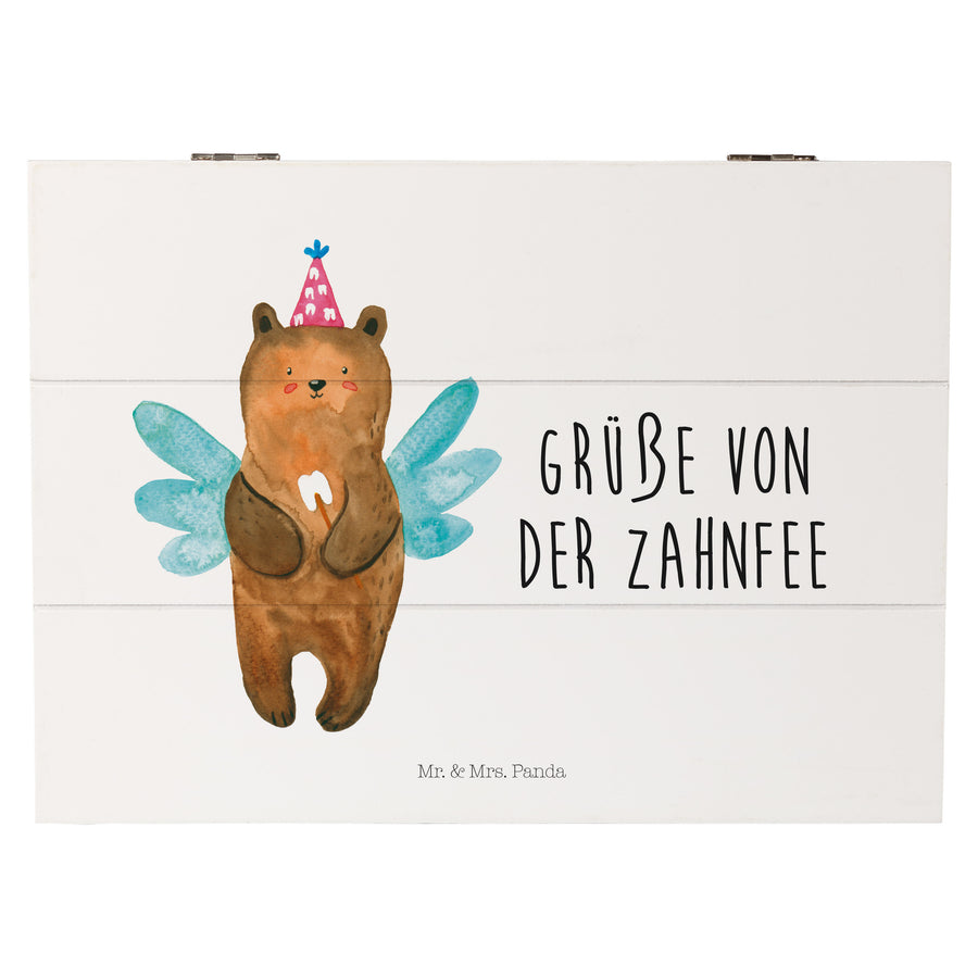 Holzkiste Zahnfee Bär - 25 x 18 cm - mit Spruch - Weiß