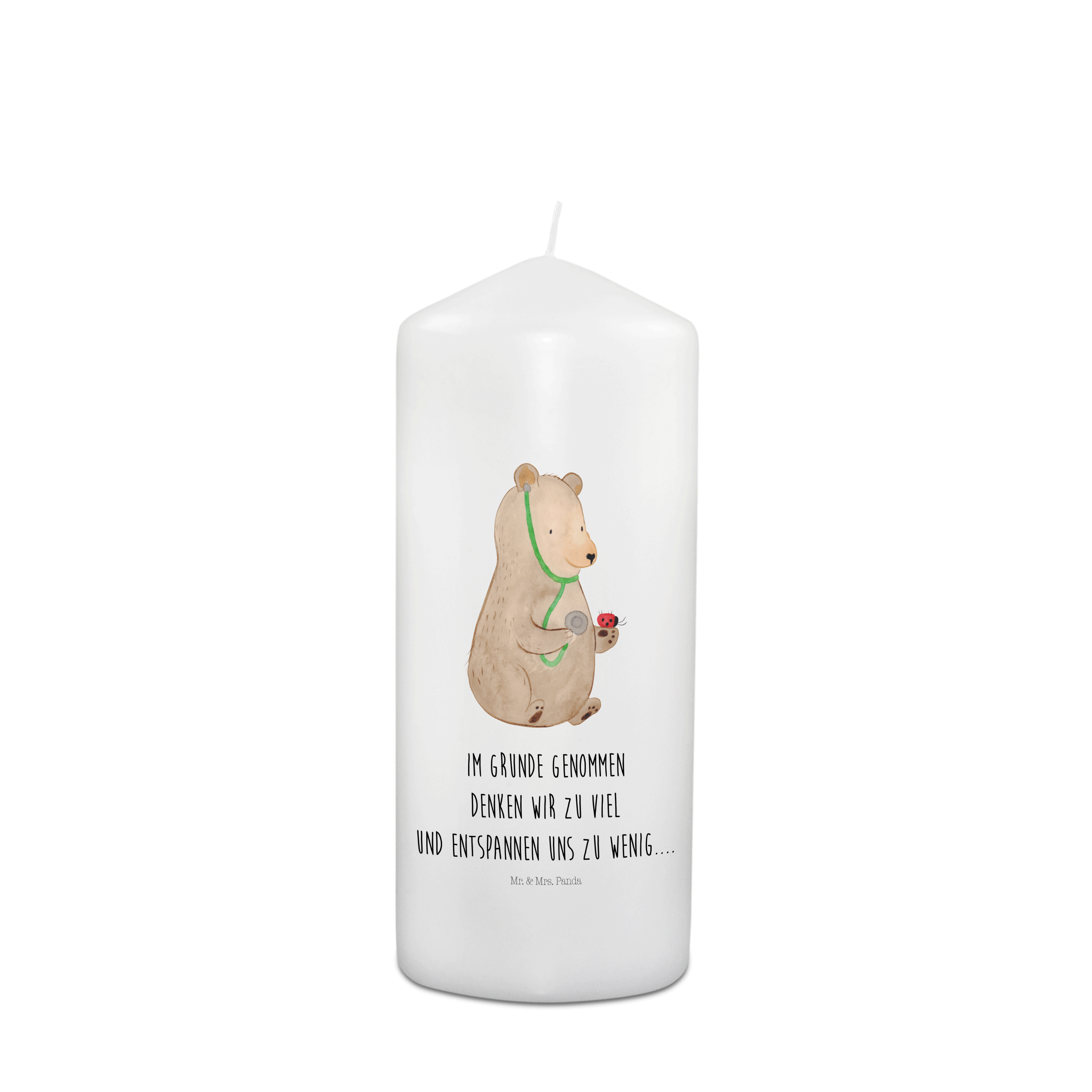 Kerze Bär Arzt - 15 x 7 cm - mit Spruch