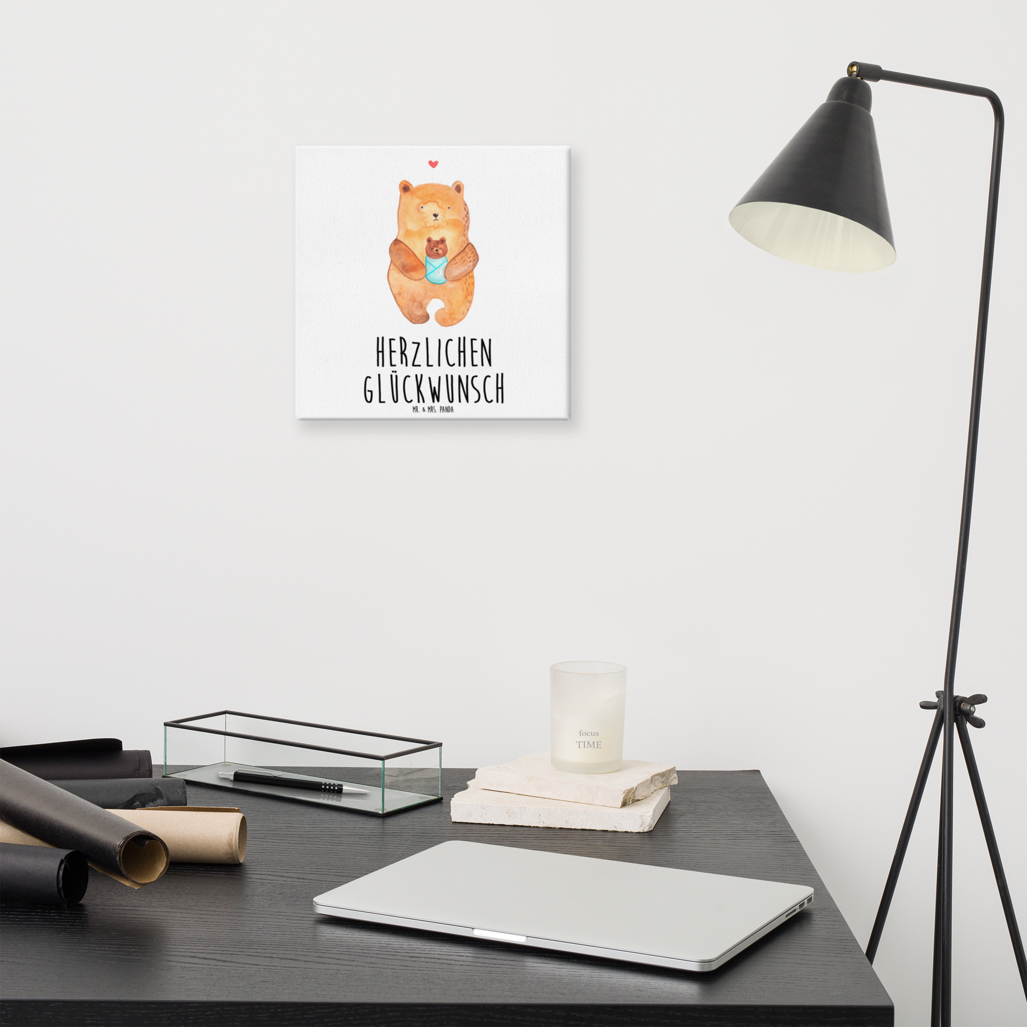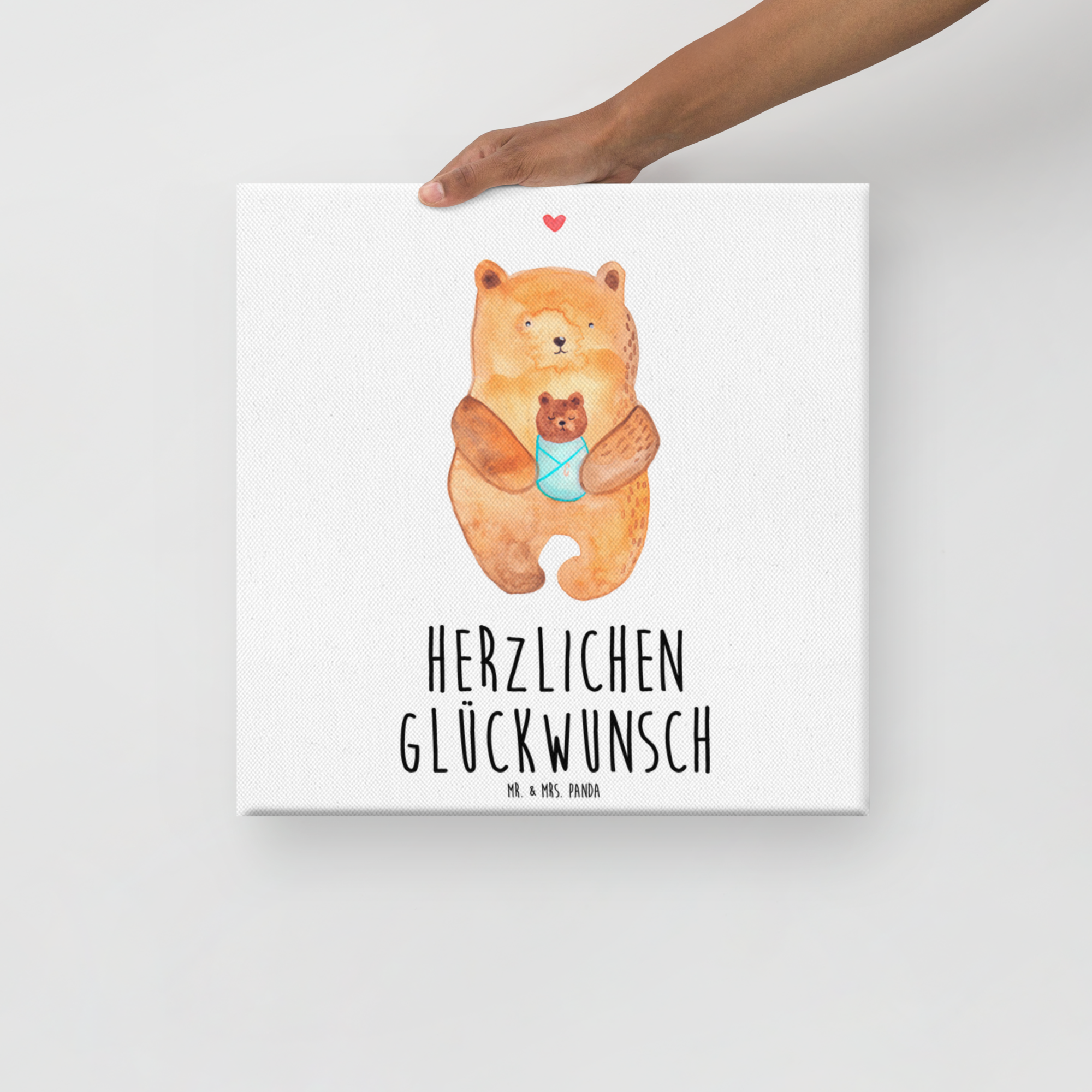 Leinwand Bild Bär mit Baby - 40 x 40 cm - mit Spruch