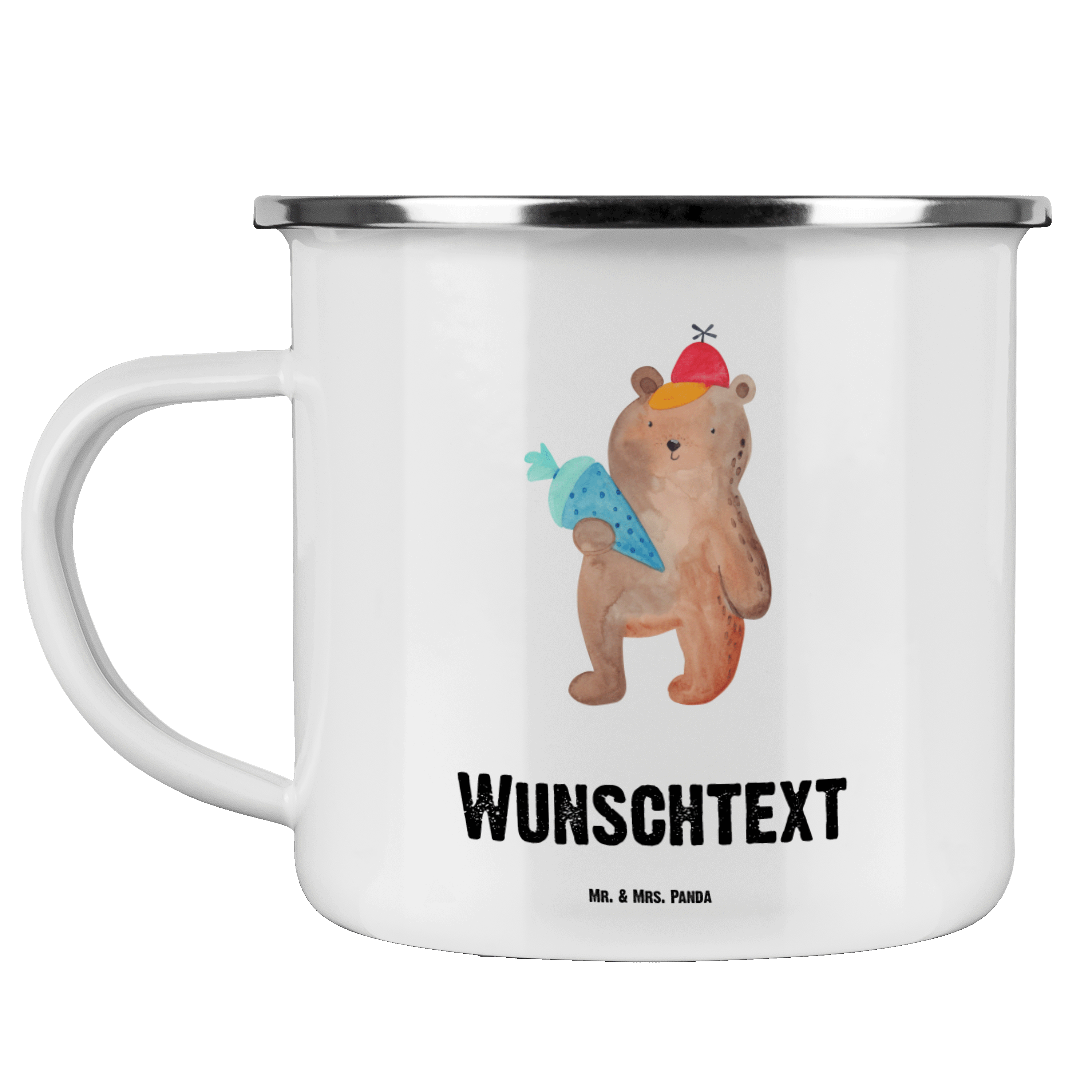 Personalisierte Emaille Tasse Bär mit Schultüte