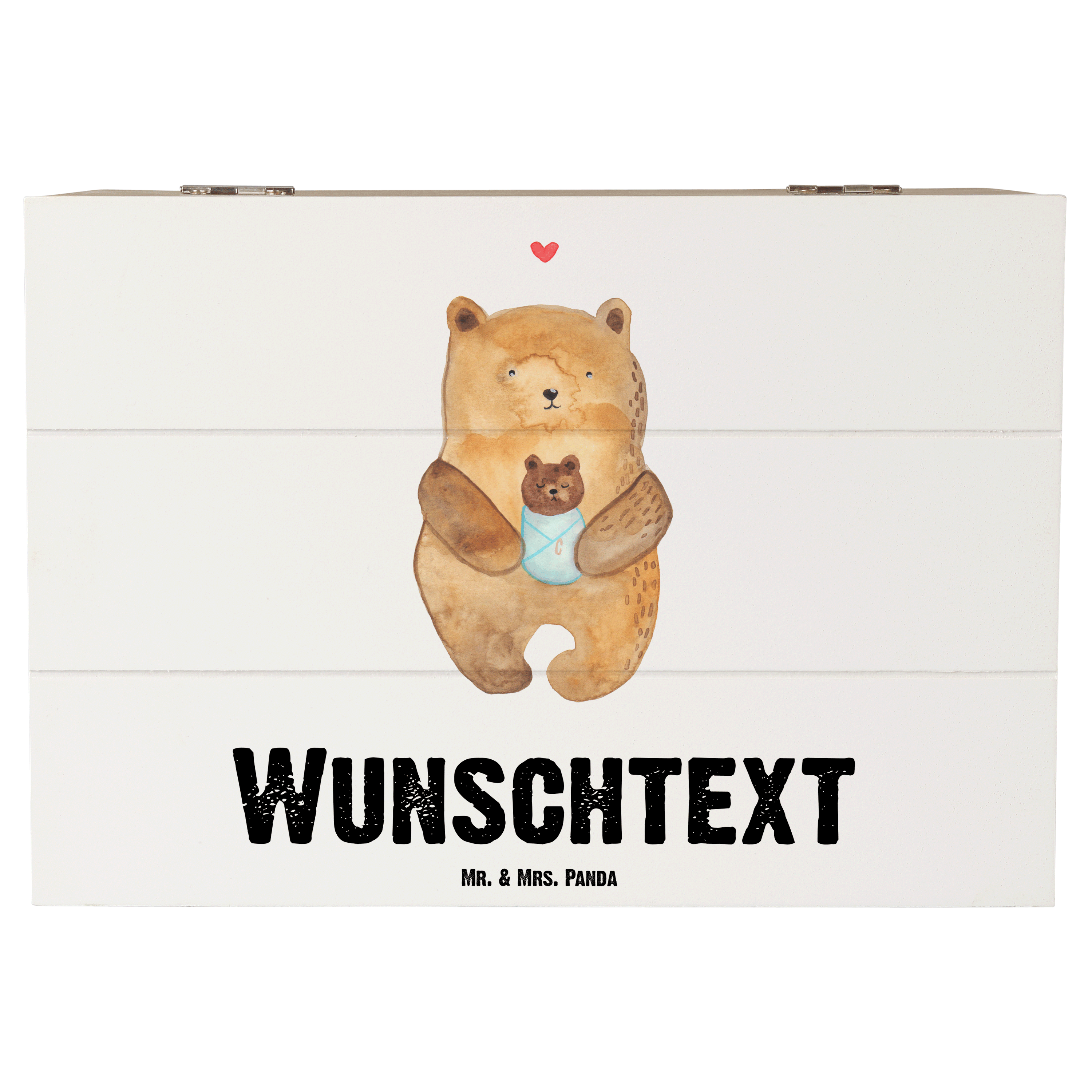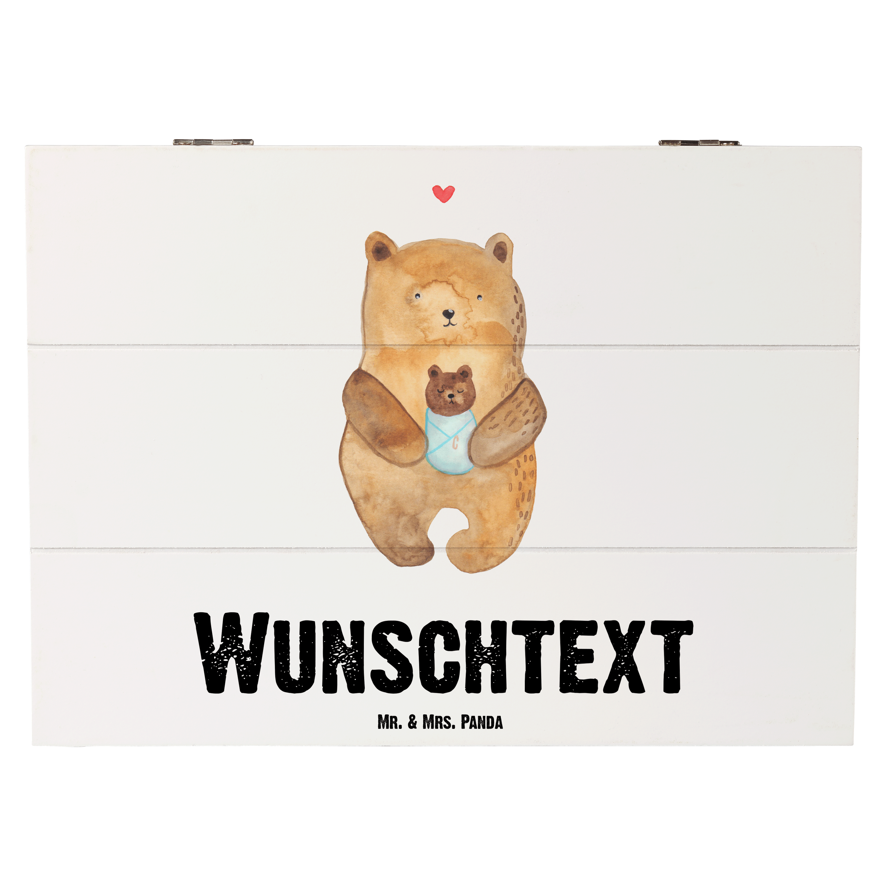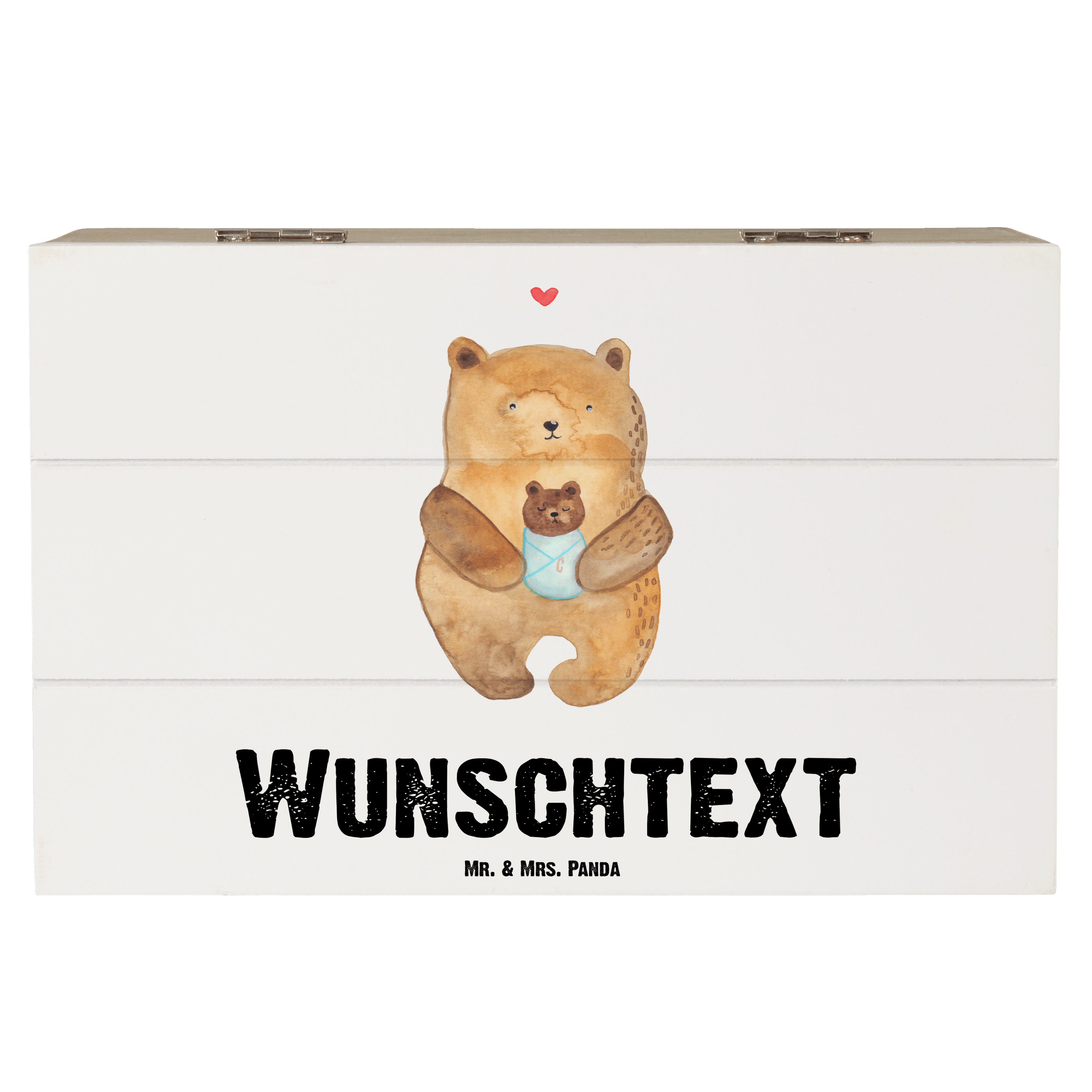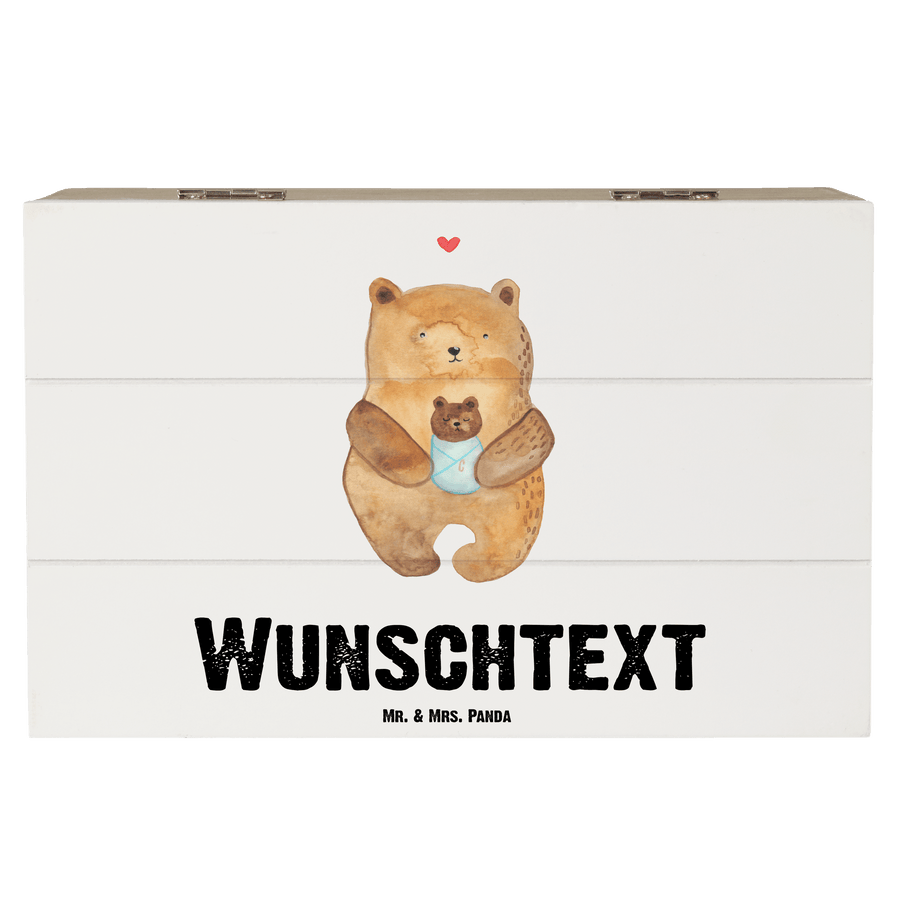Personalisierte Holzkiste Bär mit Baby - Weiß - 19 x 12 cm