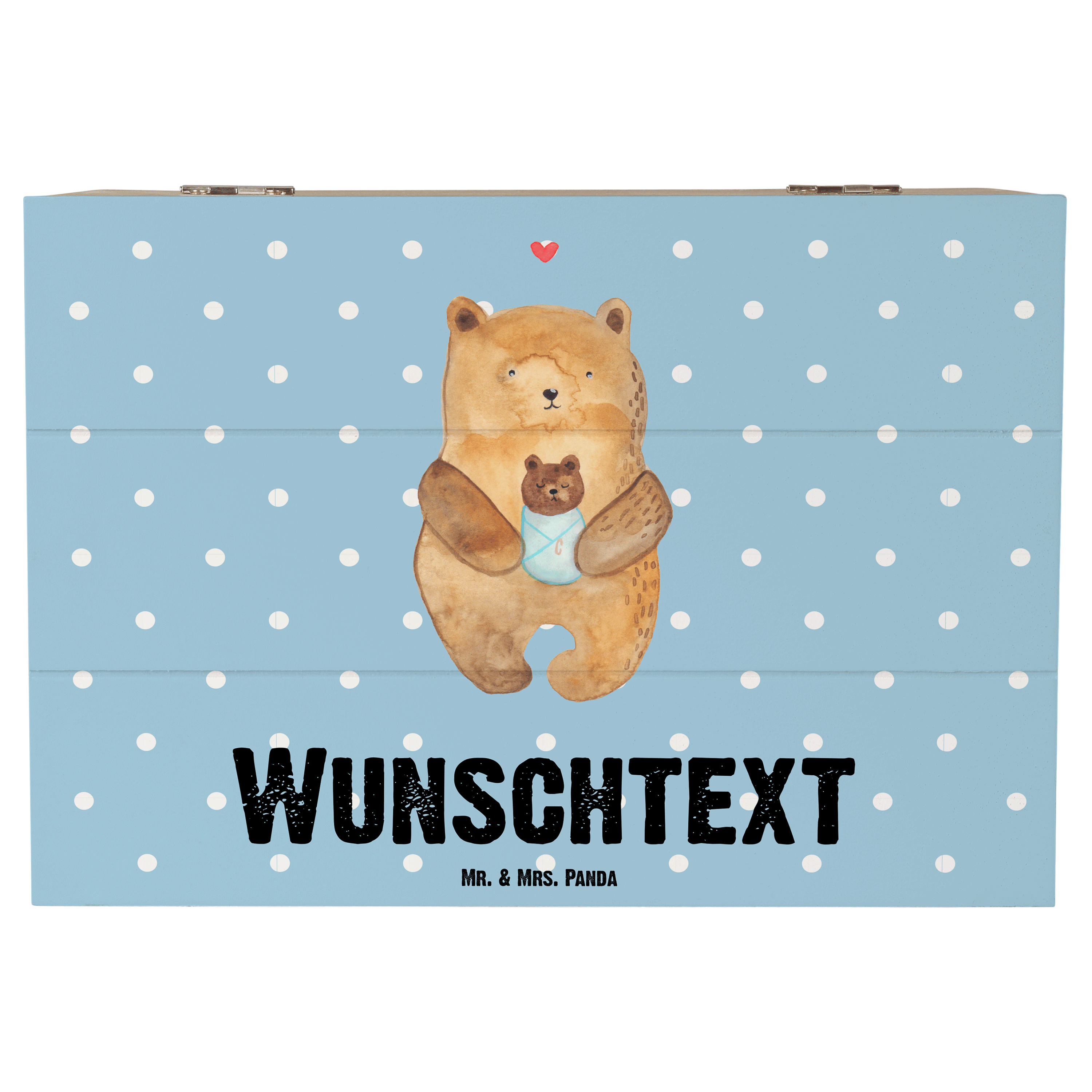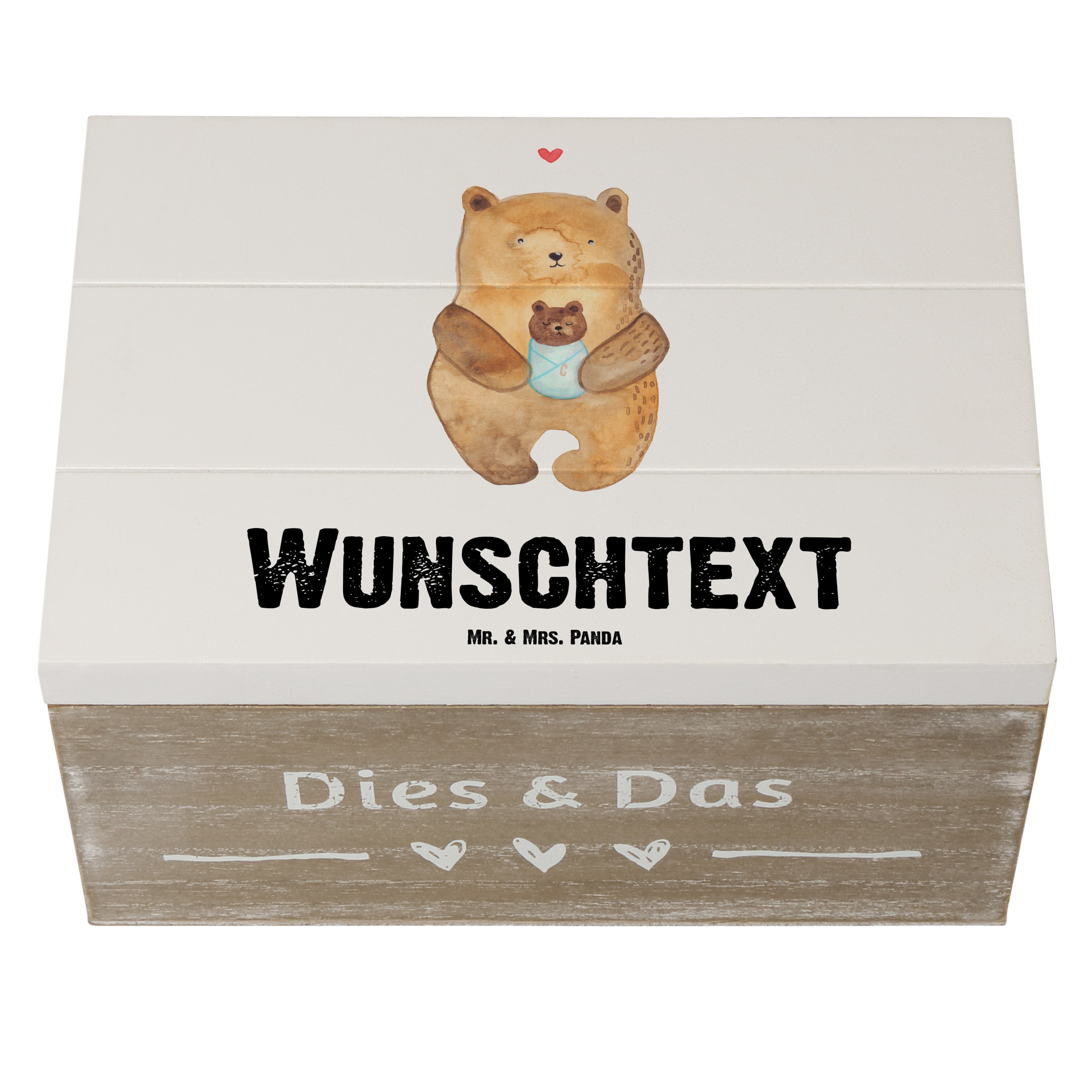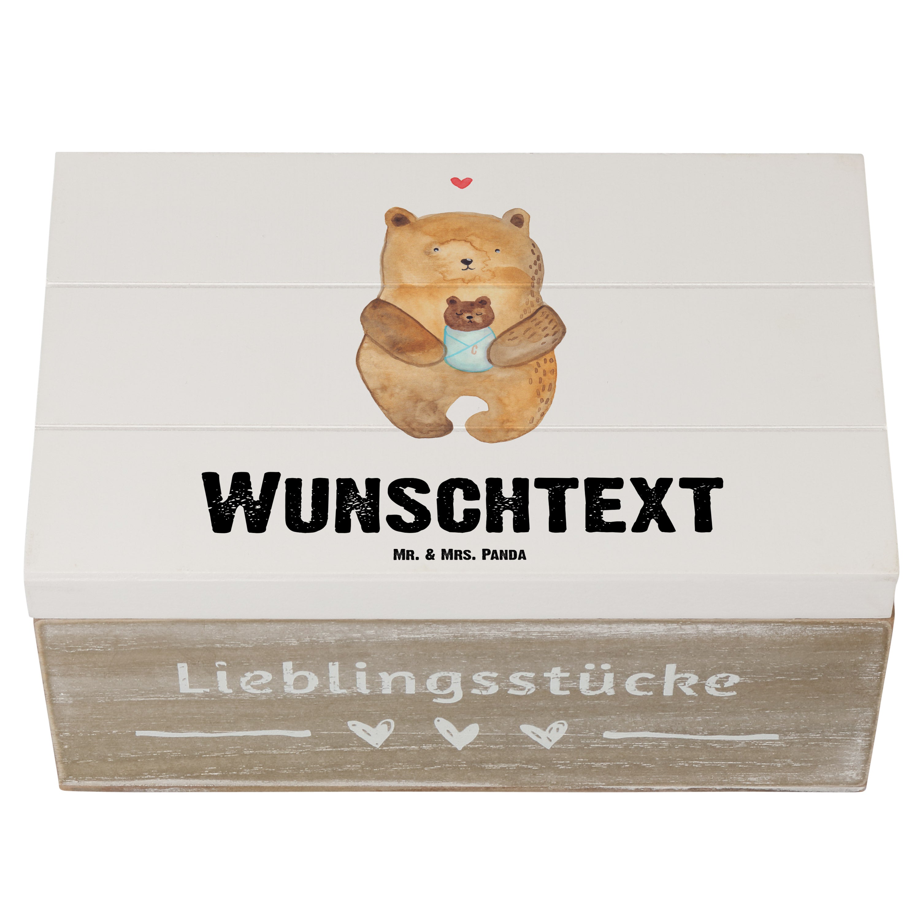 Personalisierte Holzkiste Bär mit Baby - Weiß - 19 x 12 cm