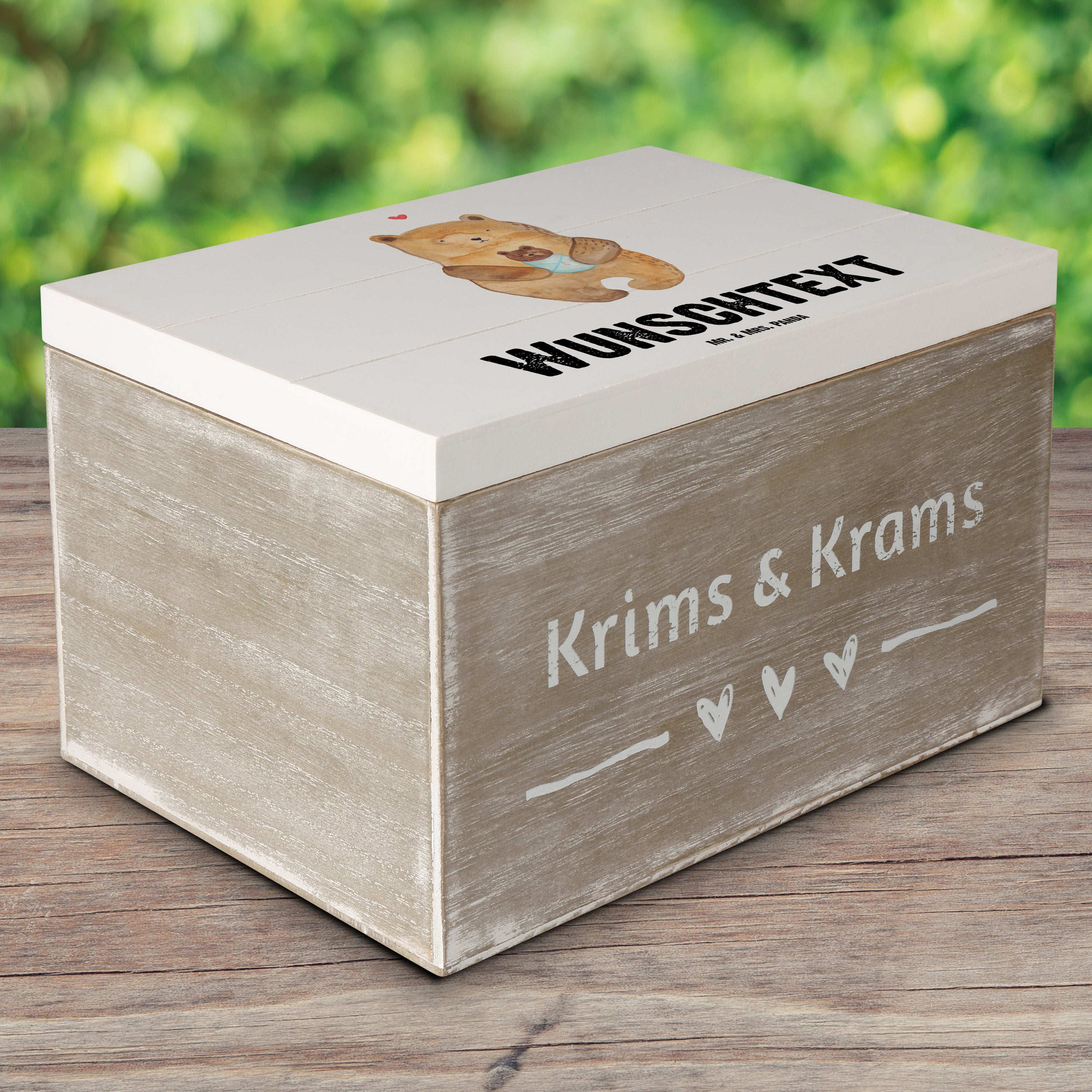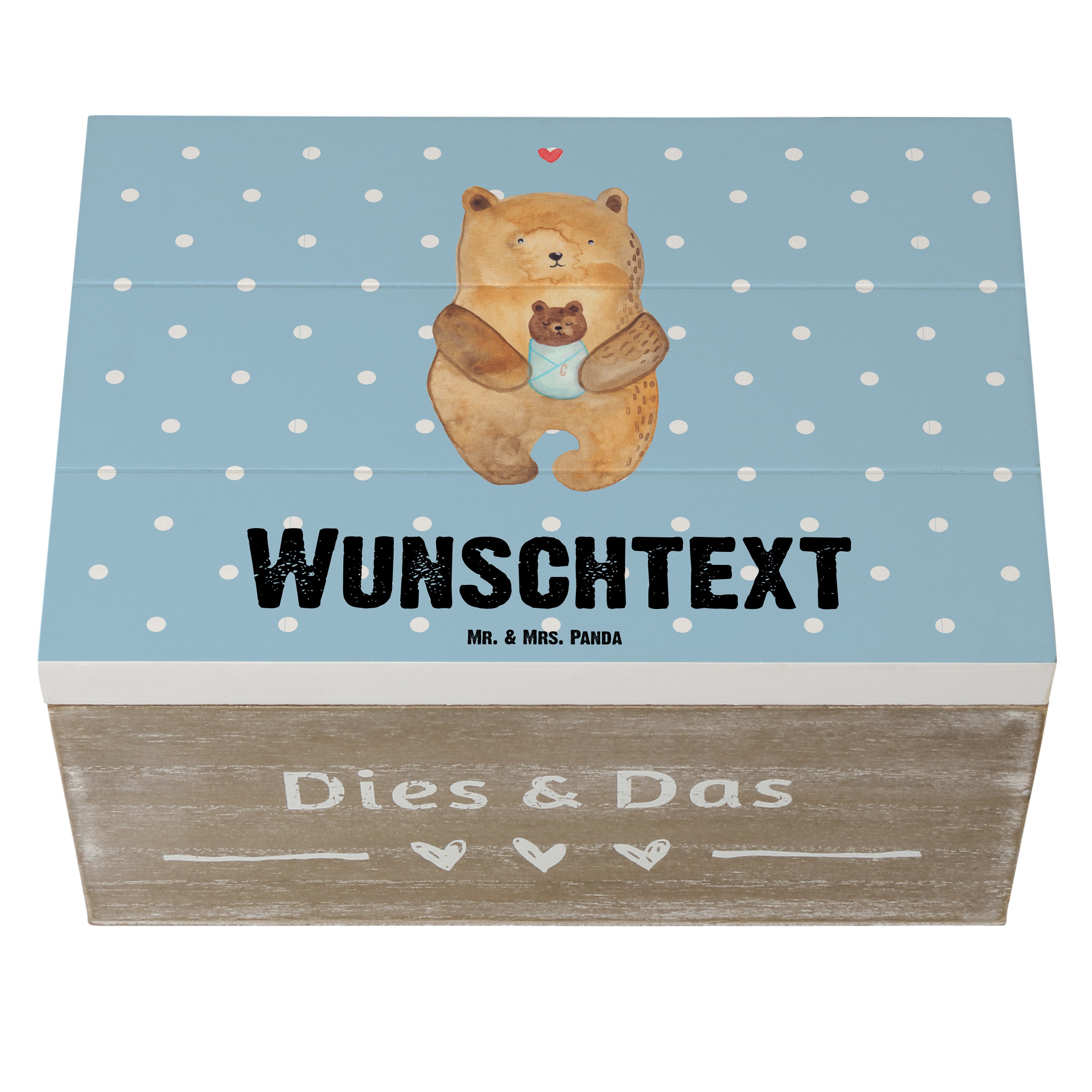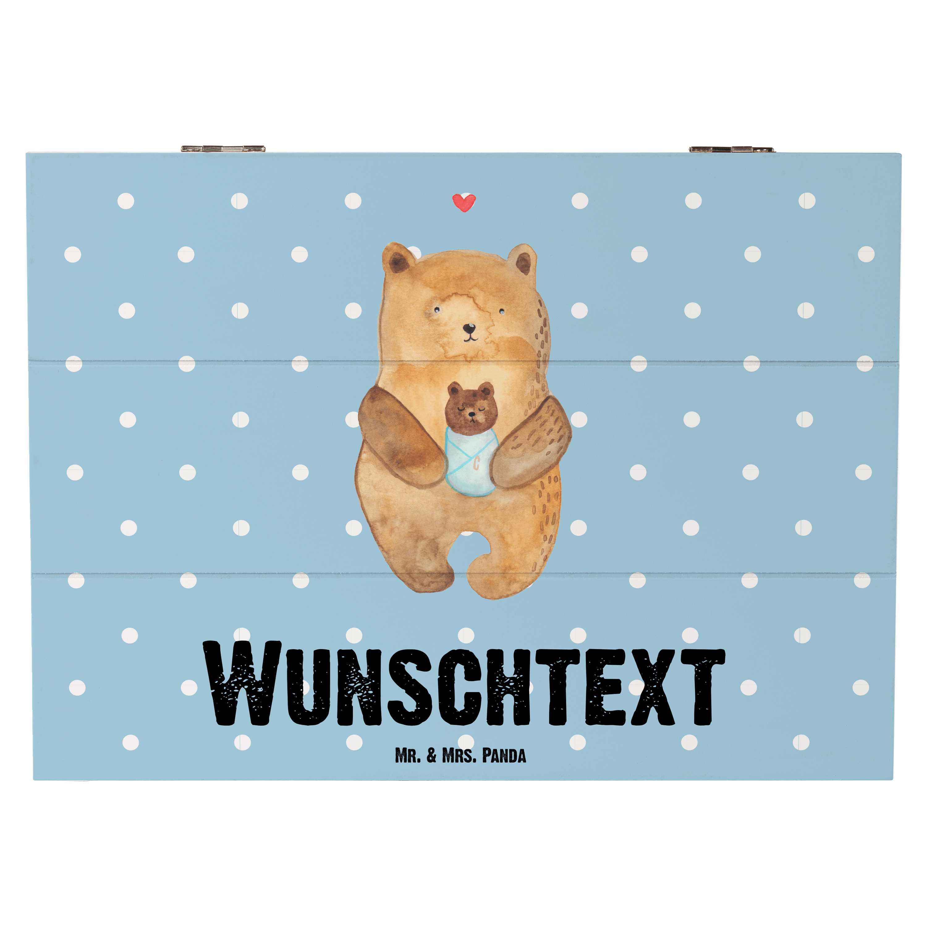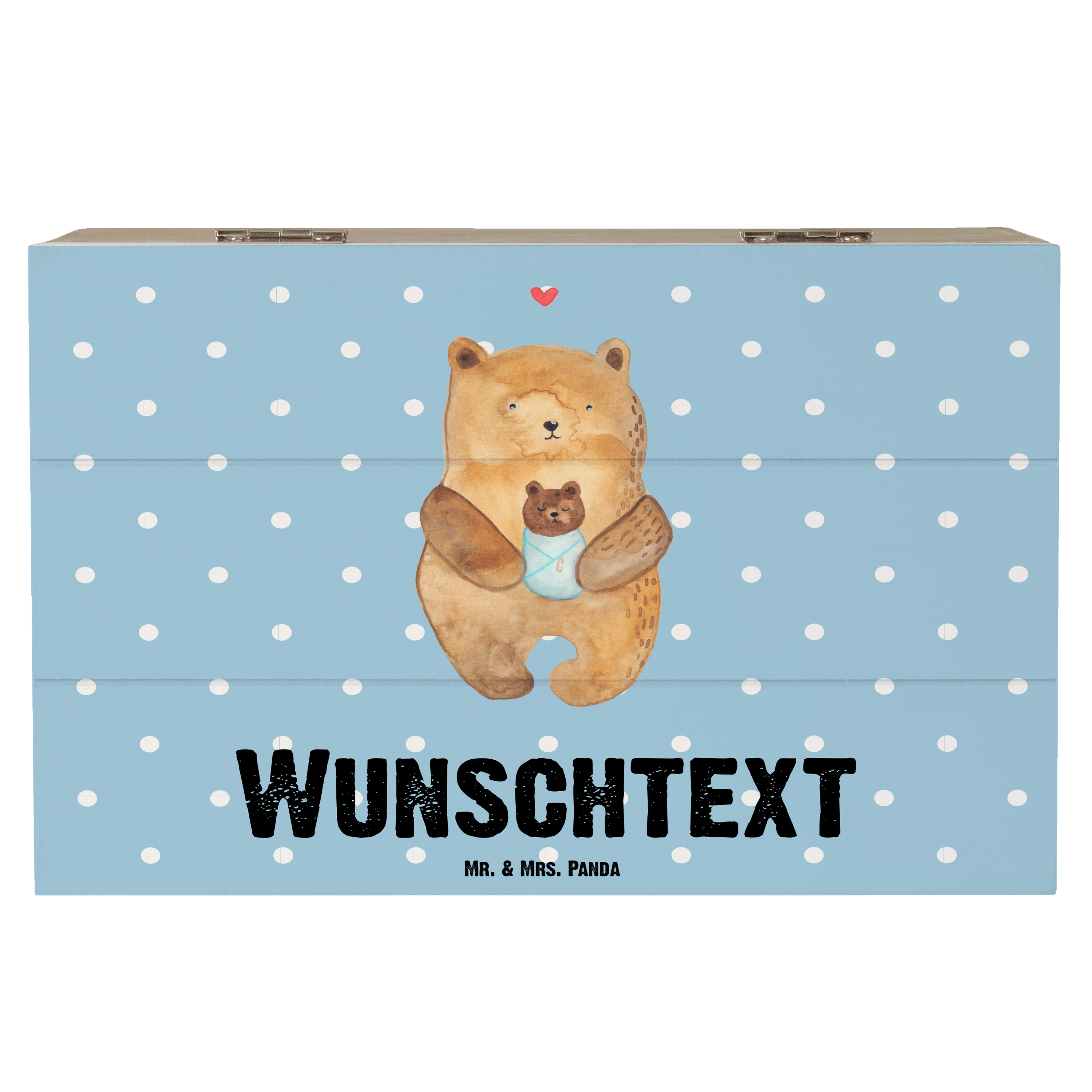 Personalisierte Holzkiste Bär mit Baby - Weiß - 19 x 12 cm