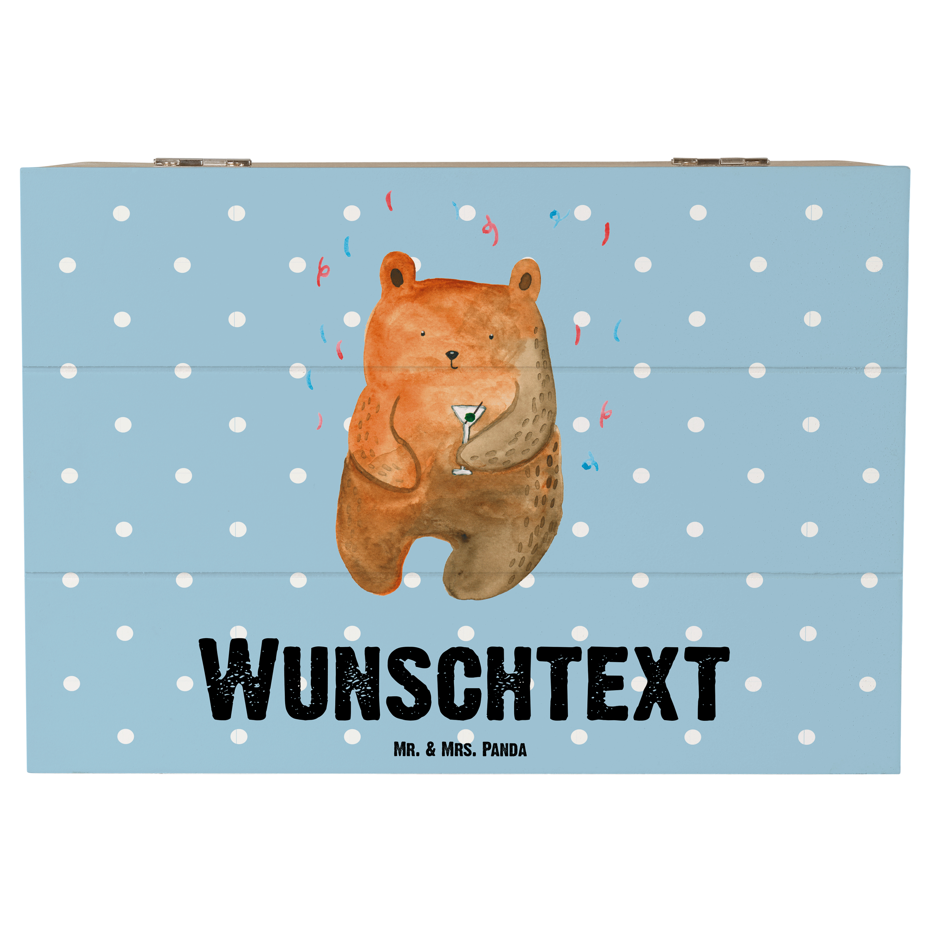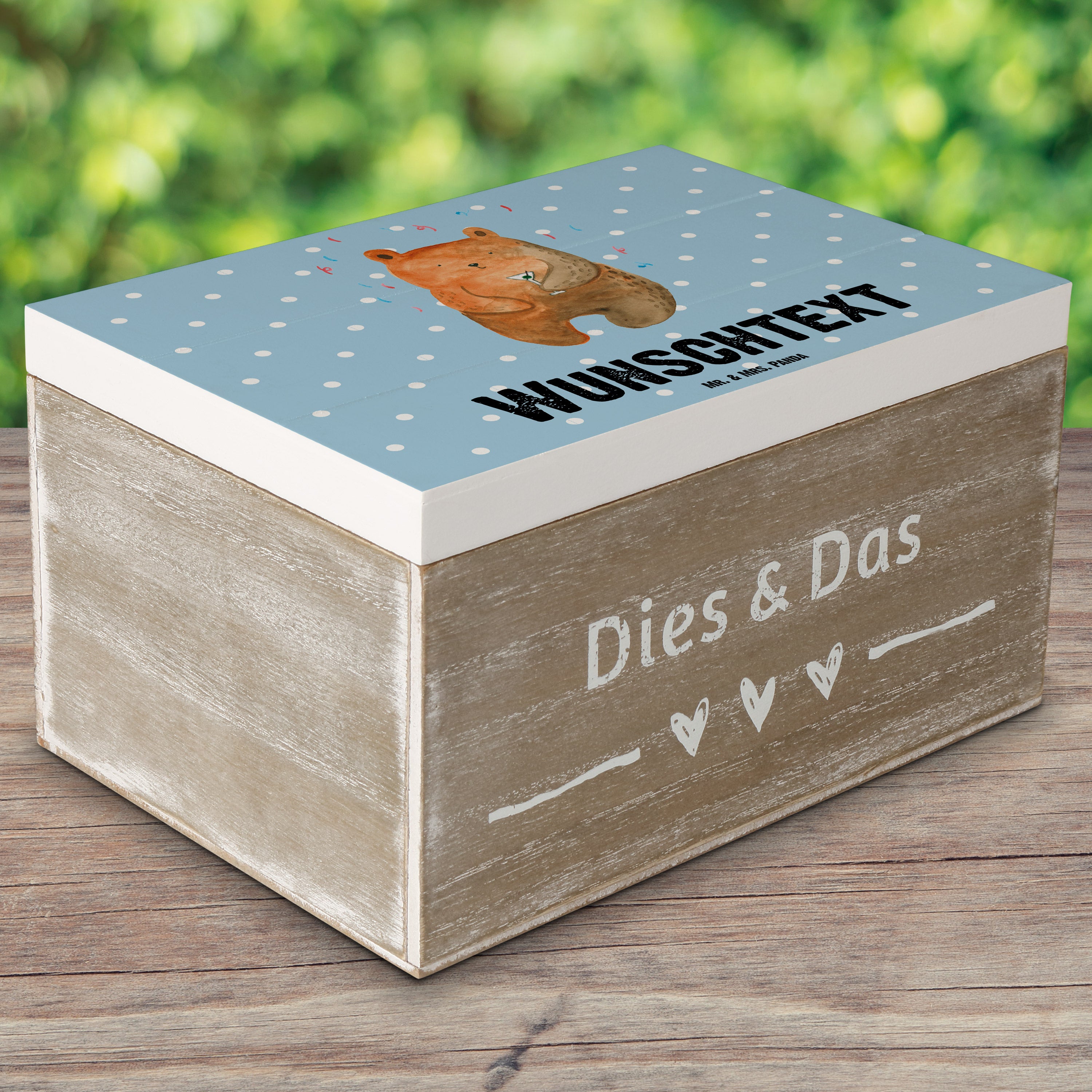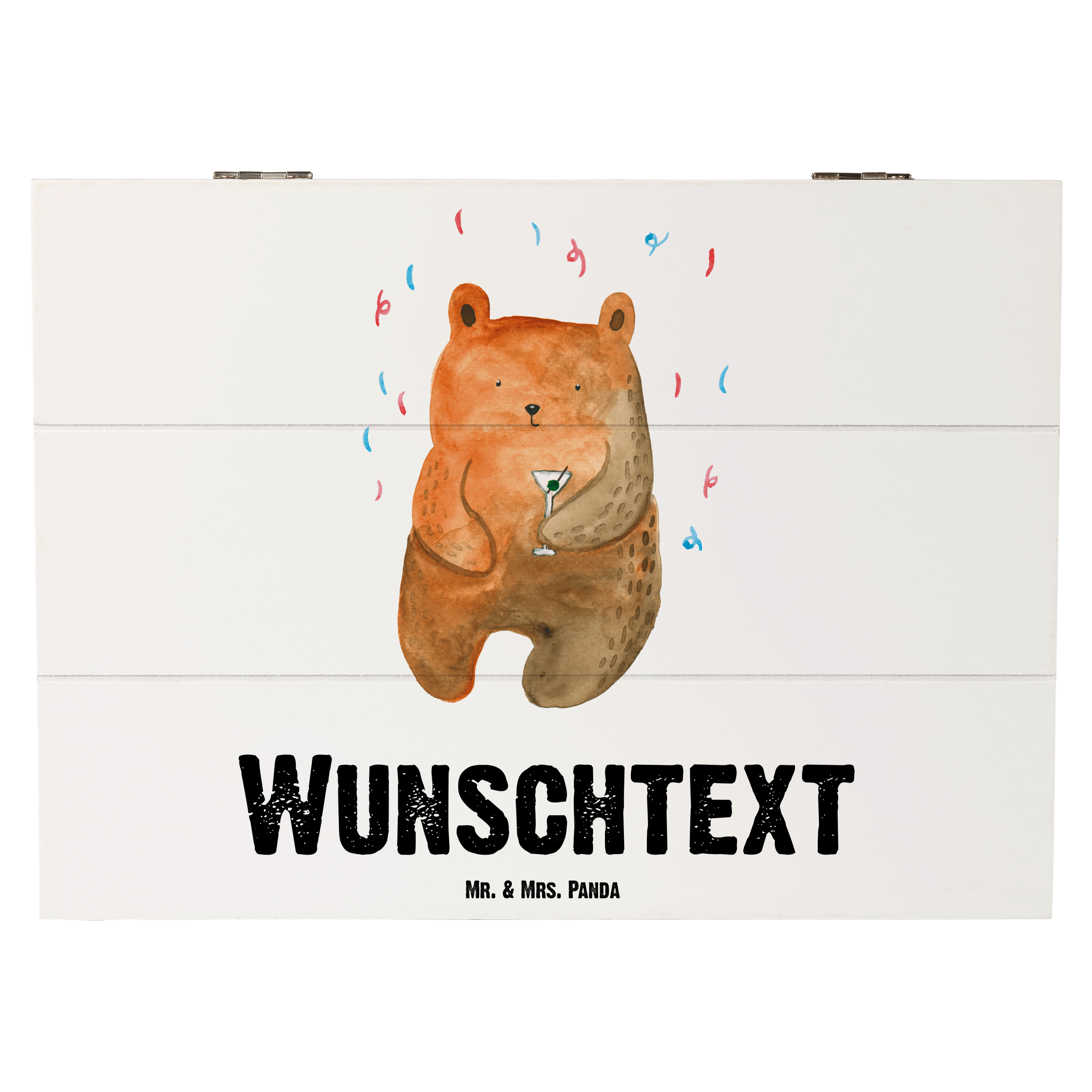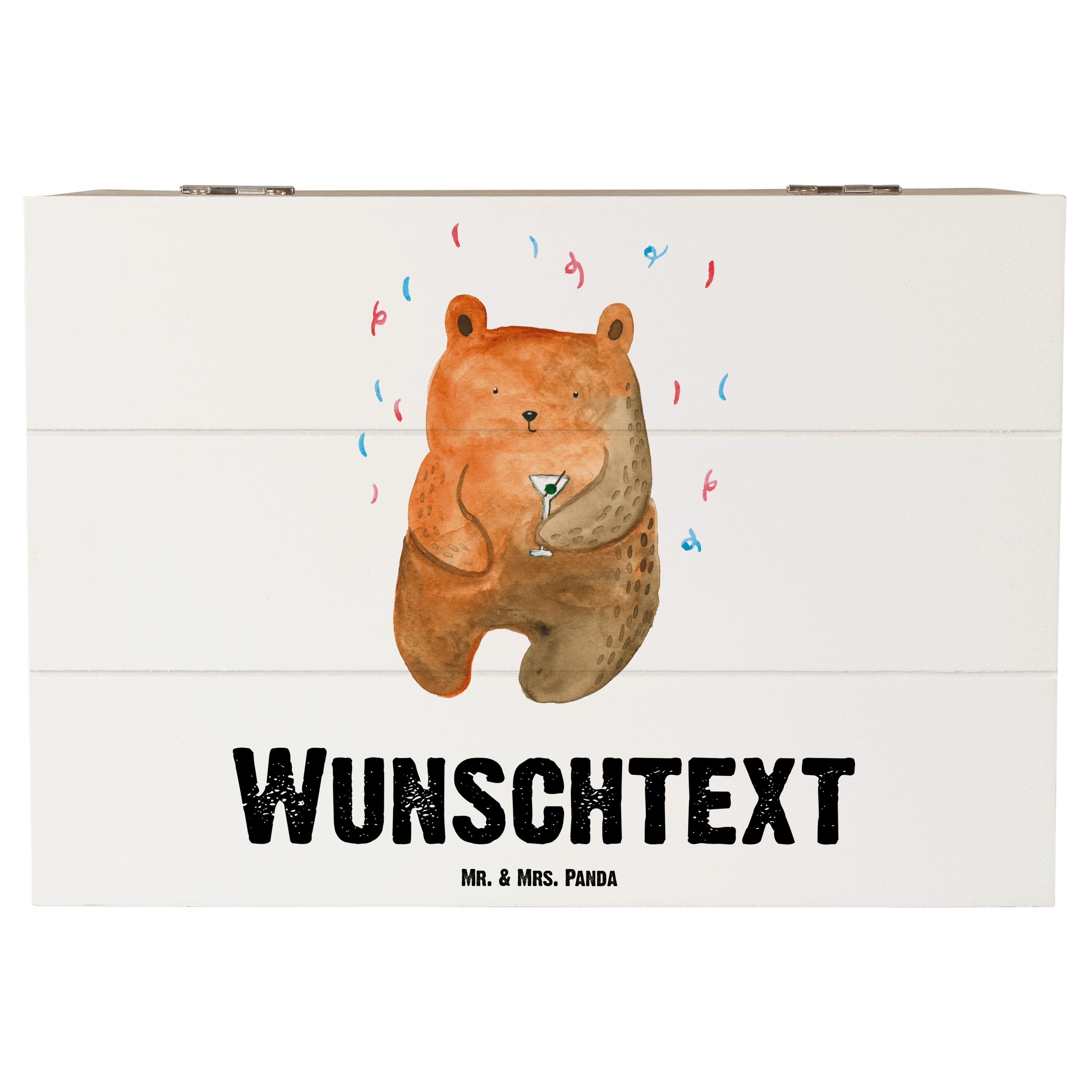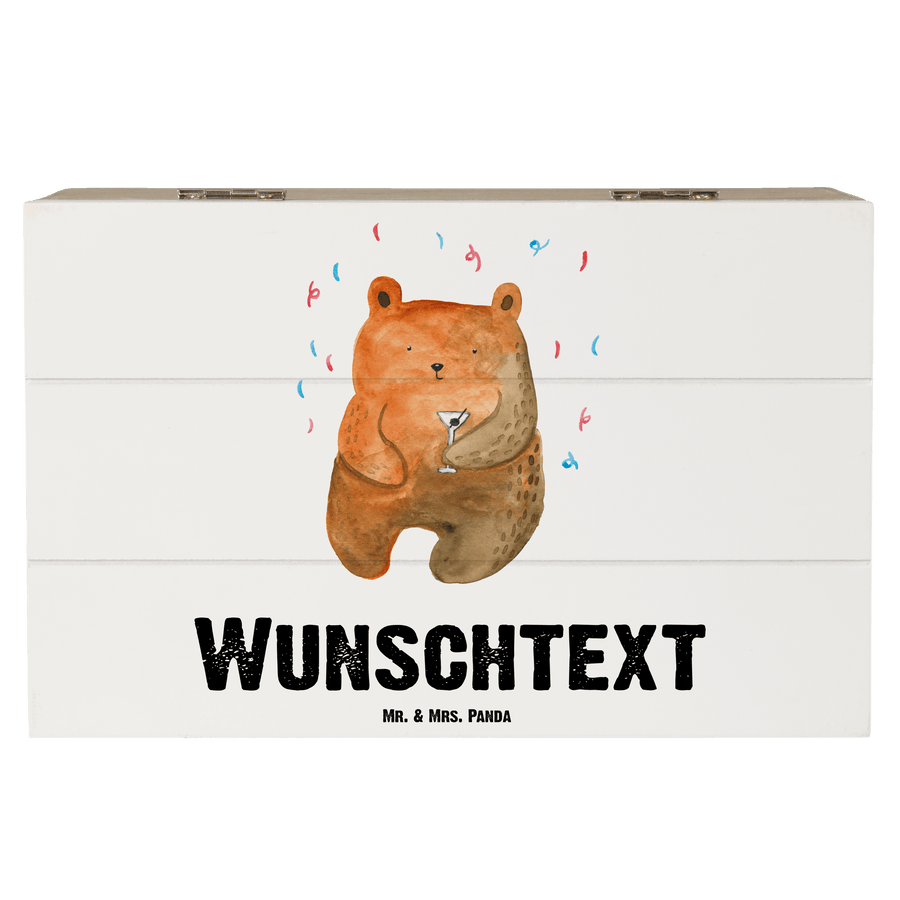Personalisierte Holzkiste Bär Party - Weiß - 19x12cm - Personalisierte Holzkiste