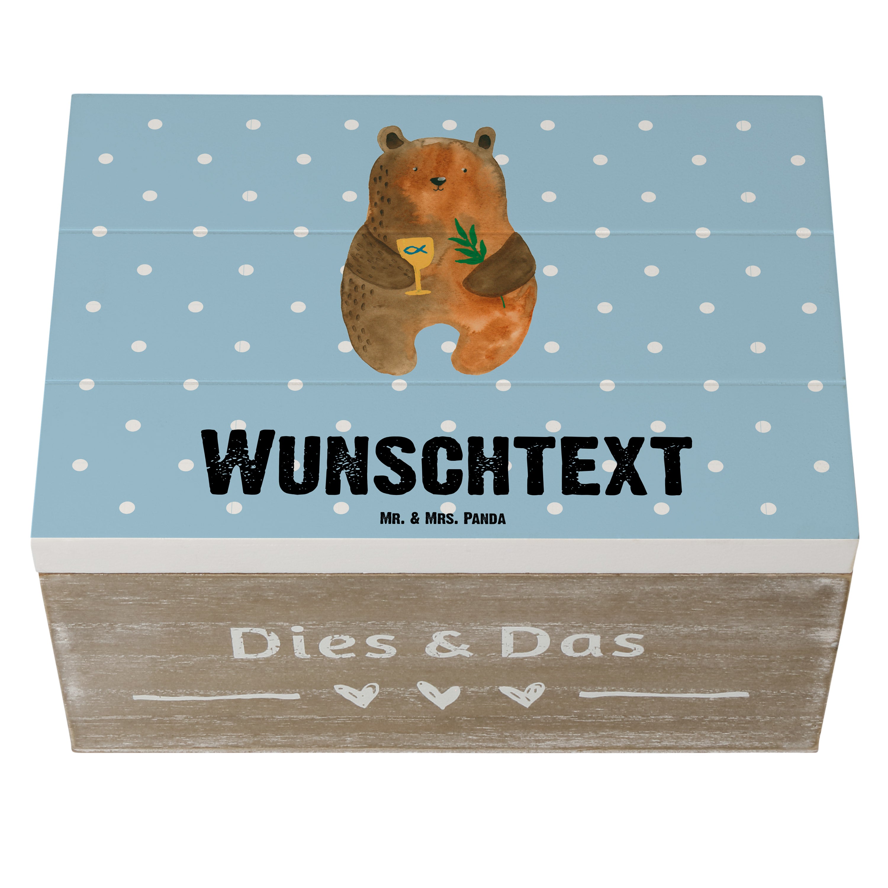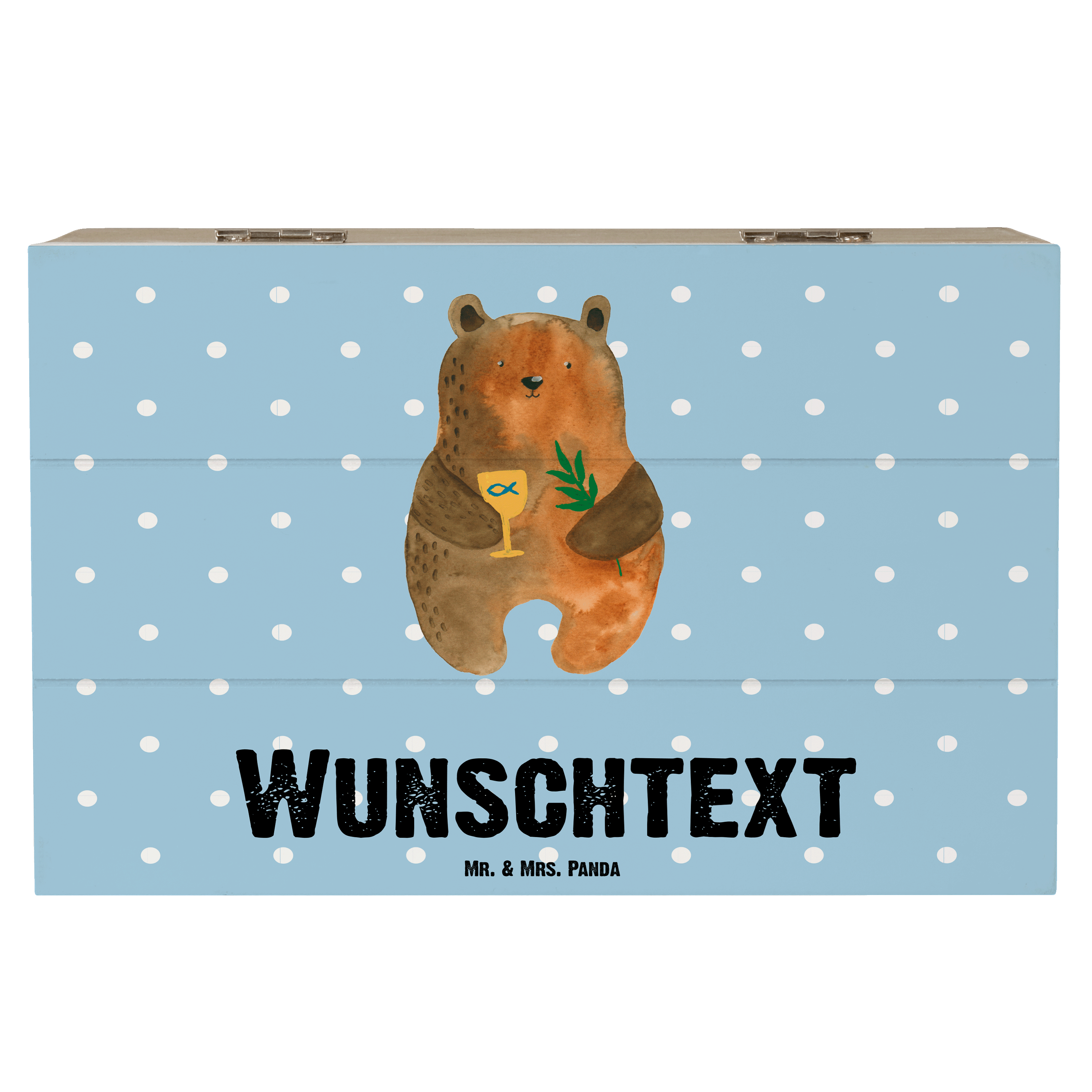 Personalisierte Holzkiste Konfirmation-Bär - Blau Pastell - 19 x 12 cm