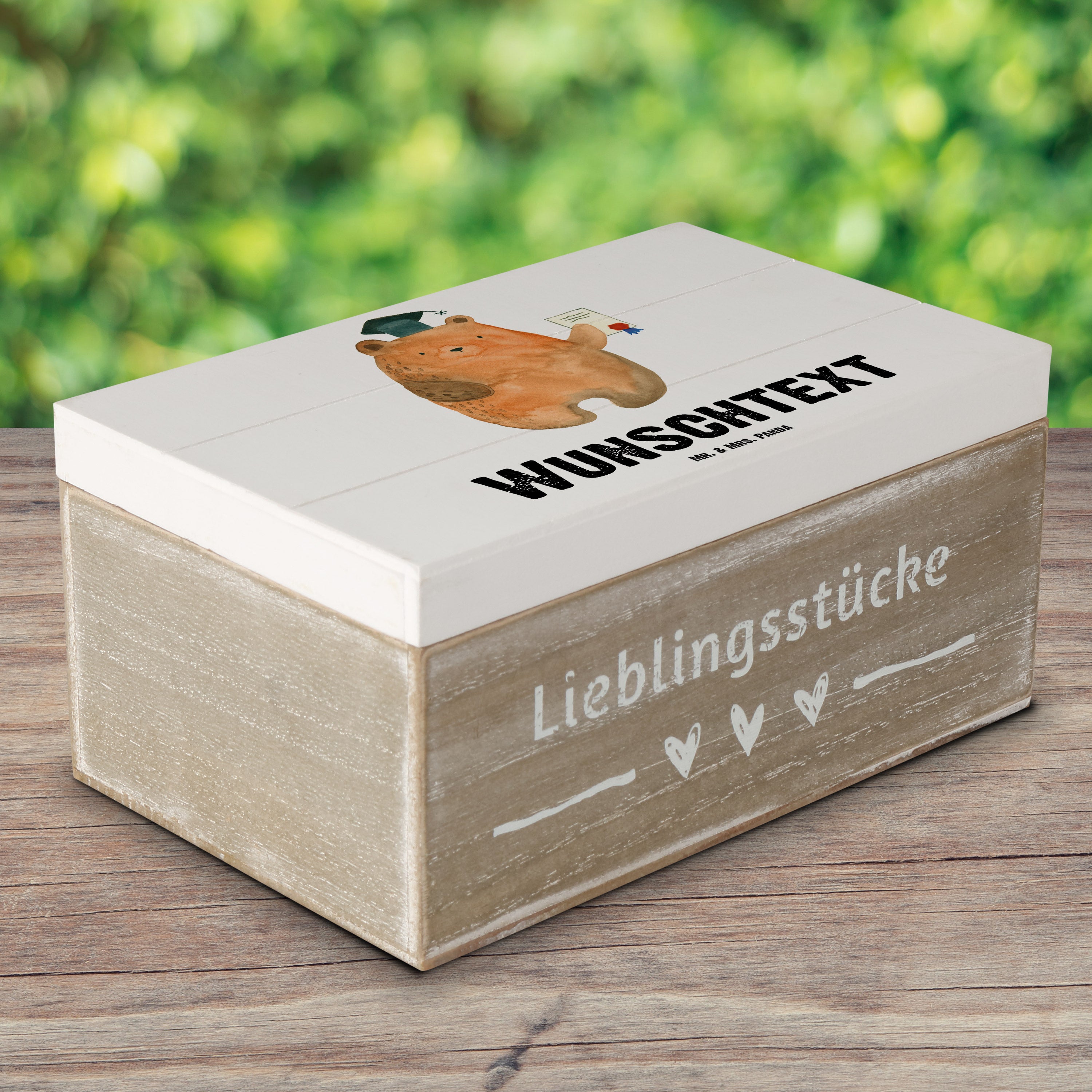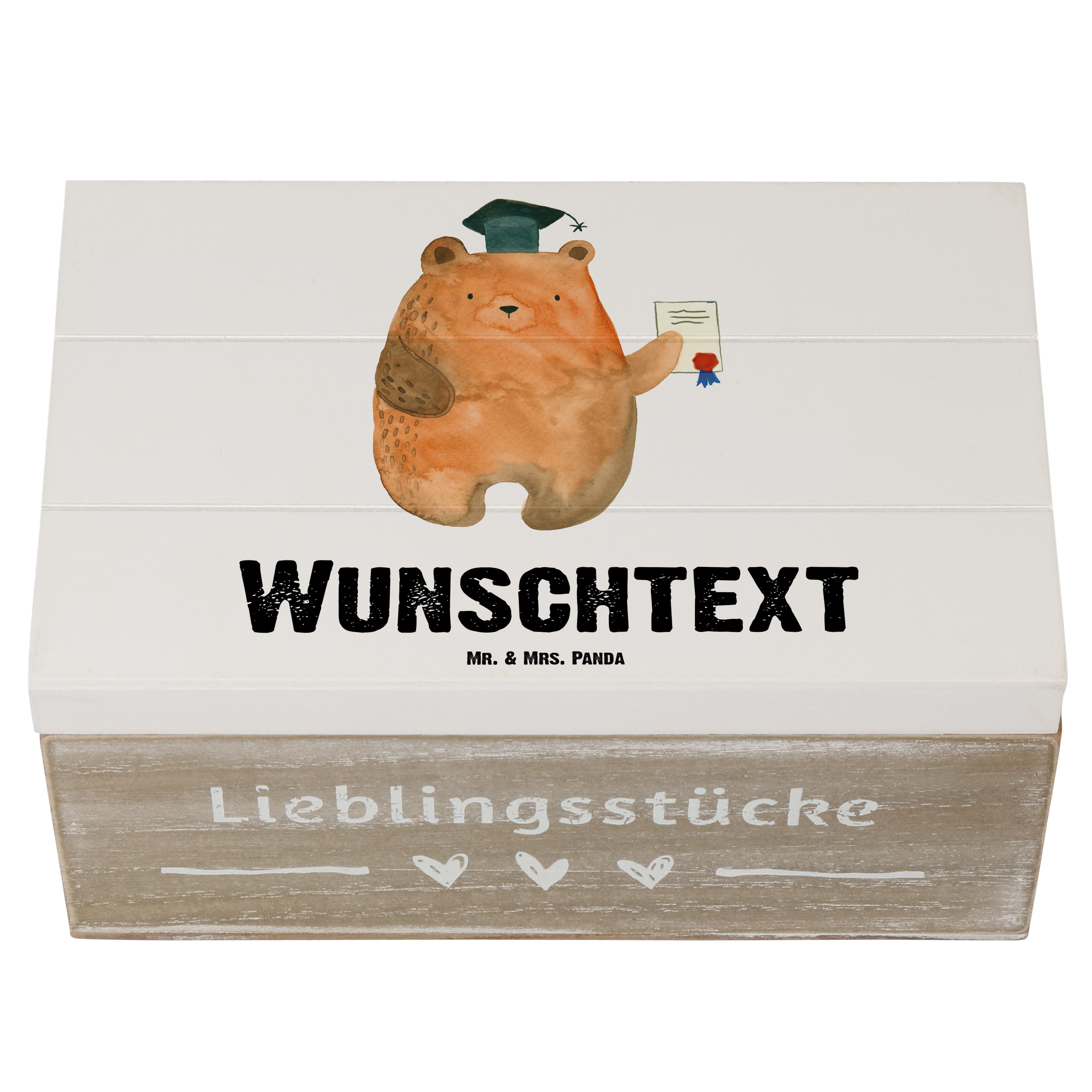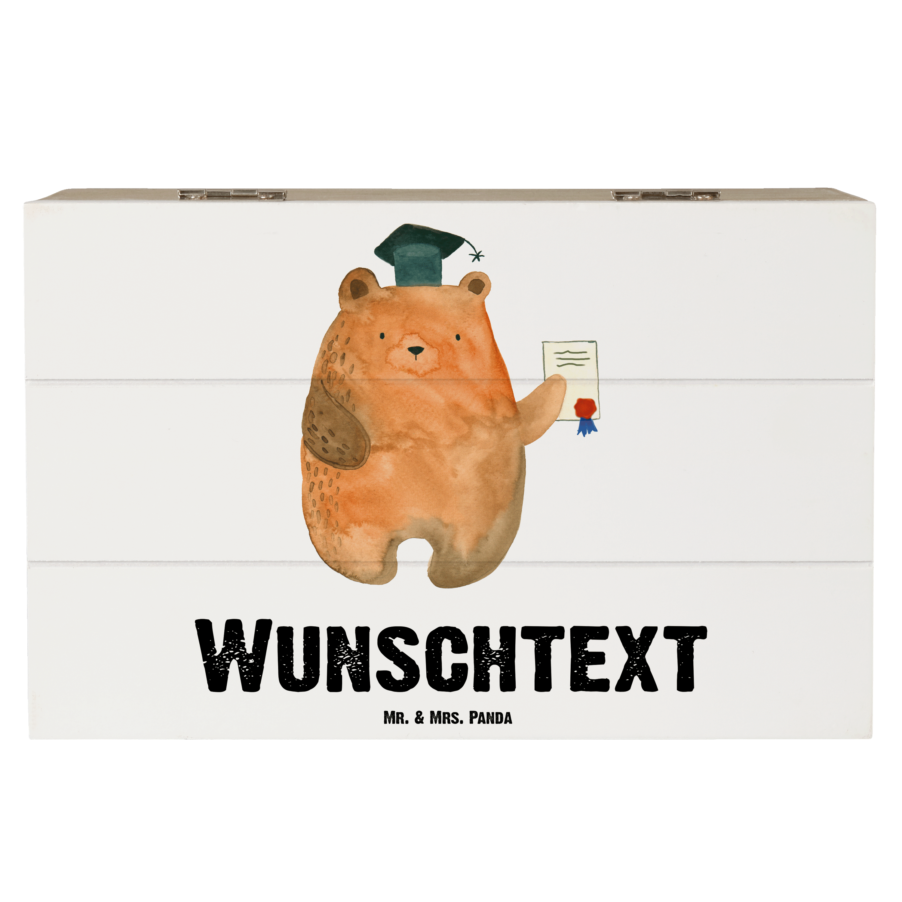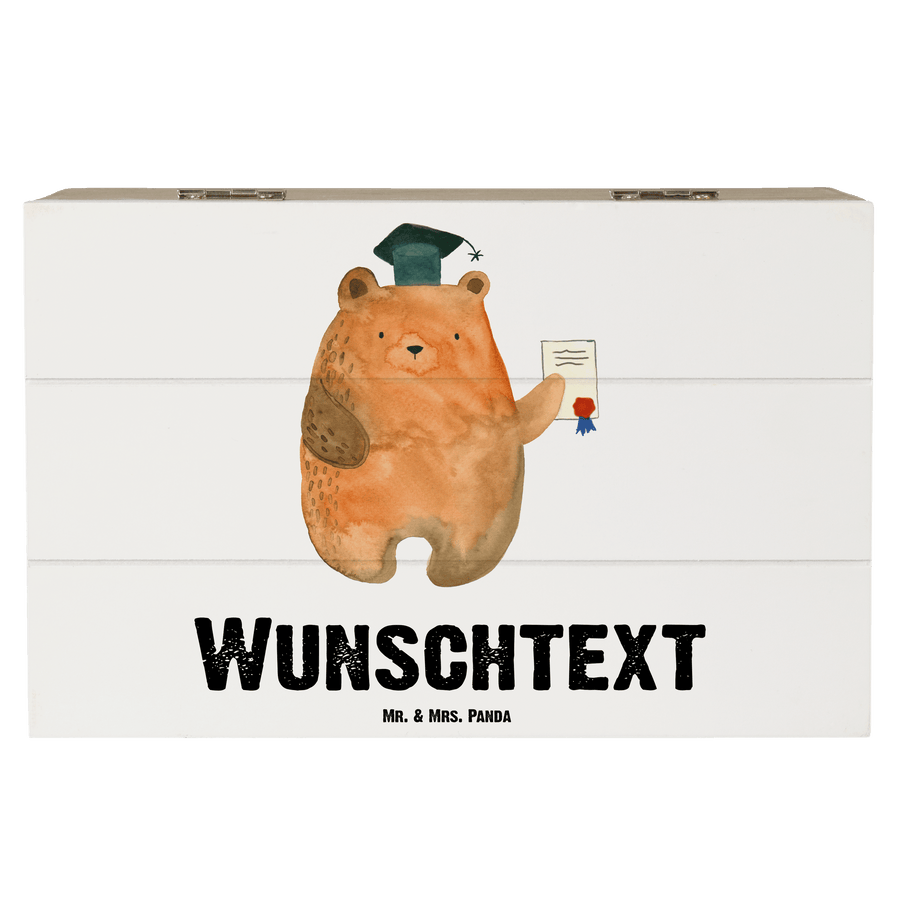 Personalisierte Holzkiste Prüfungsbär - Weiß - 19 x 12 cm