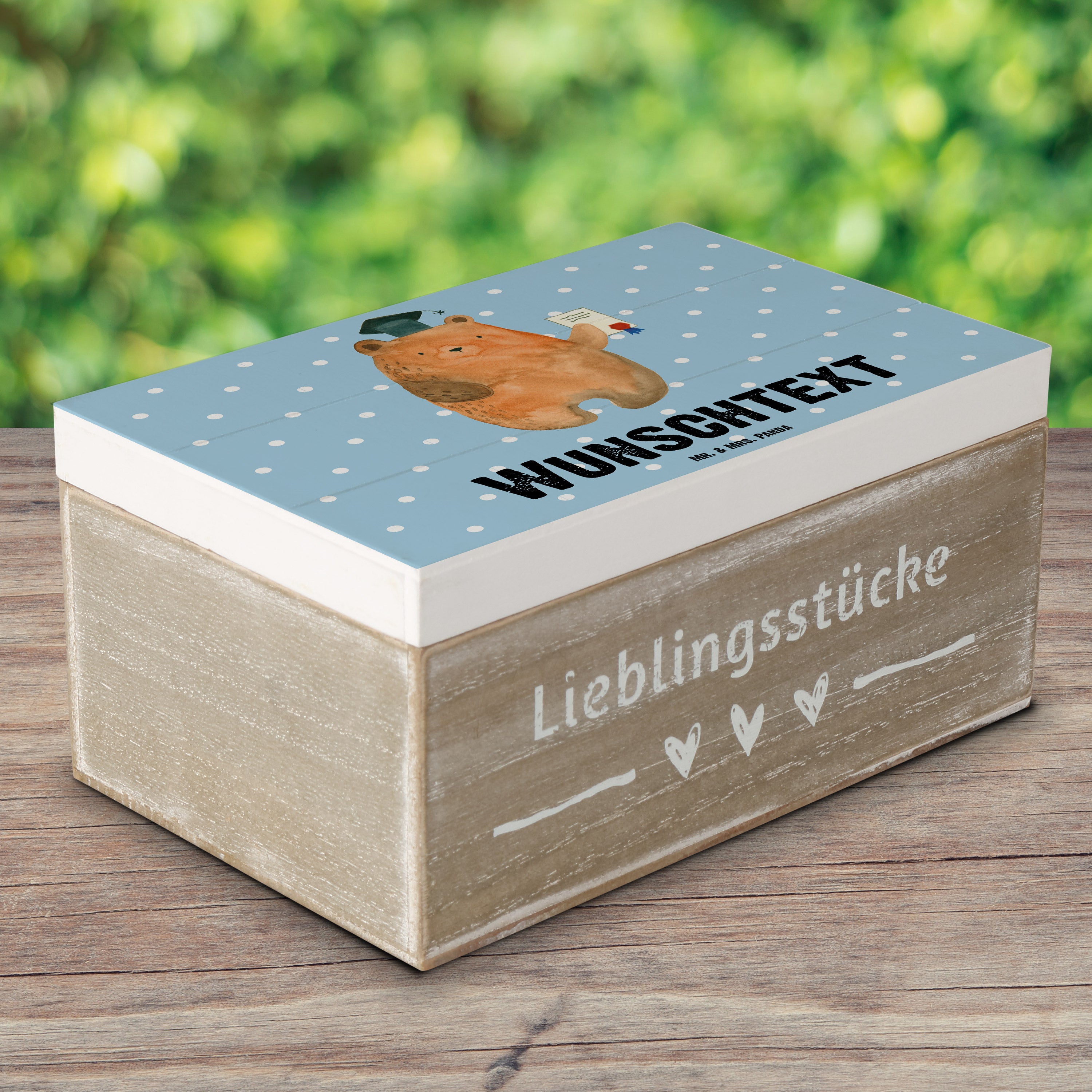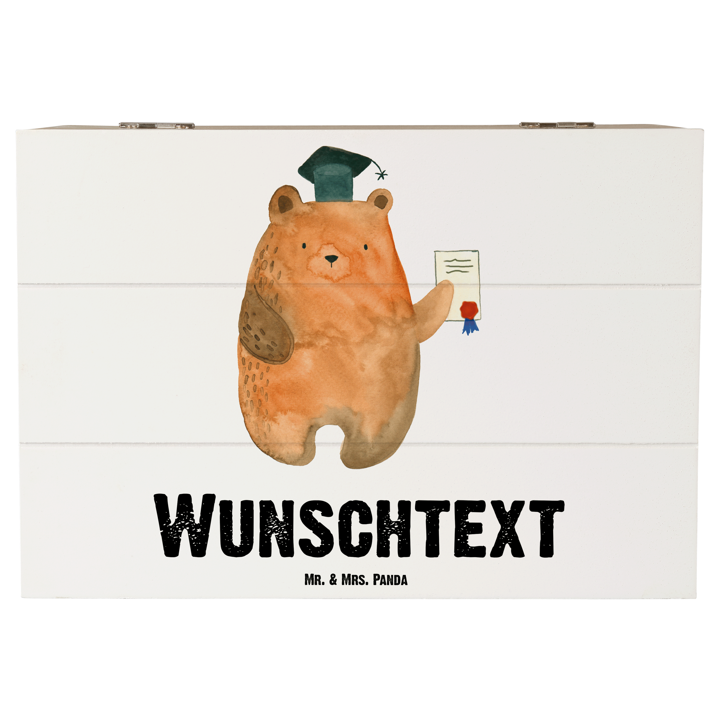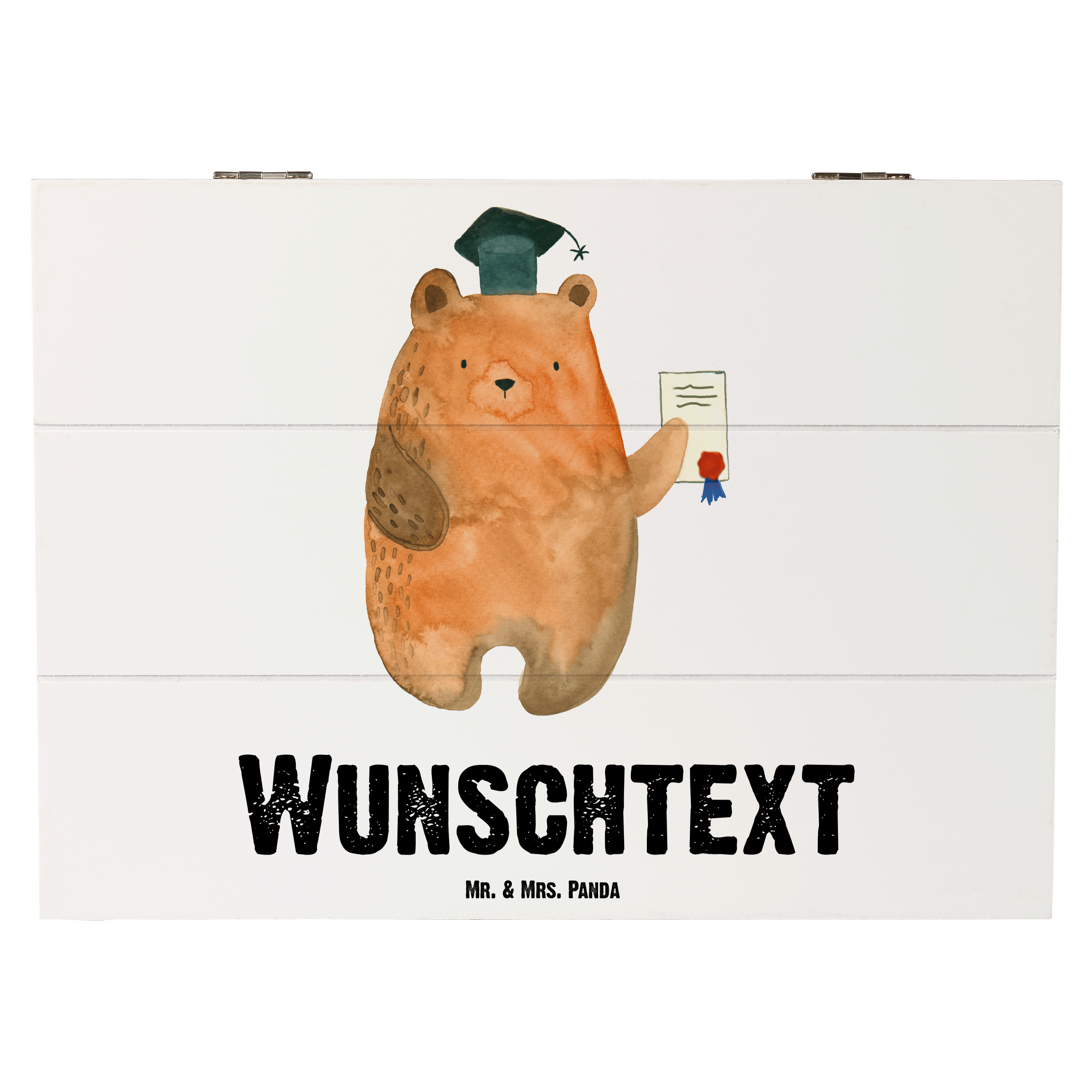 Personalisierte Holzkiste Prüfungsbär - Weiß - 19 x 12 cm