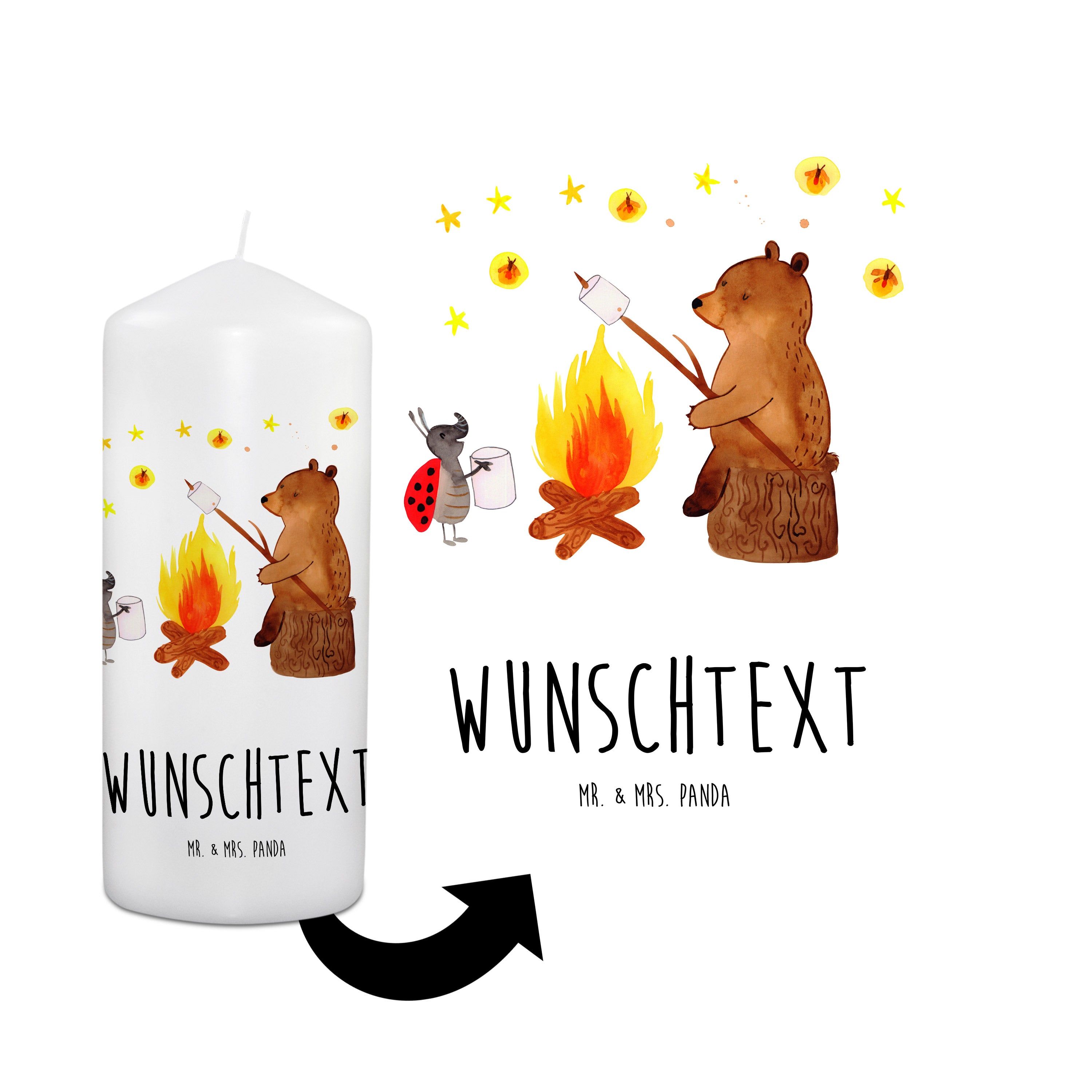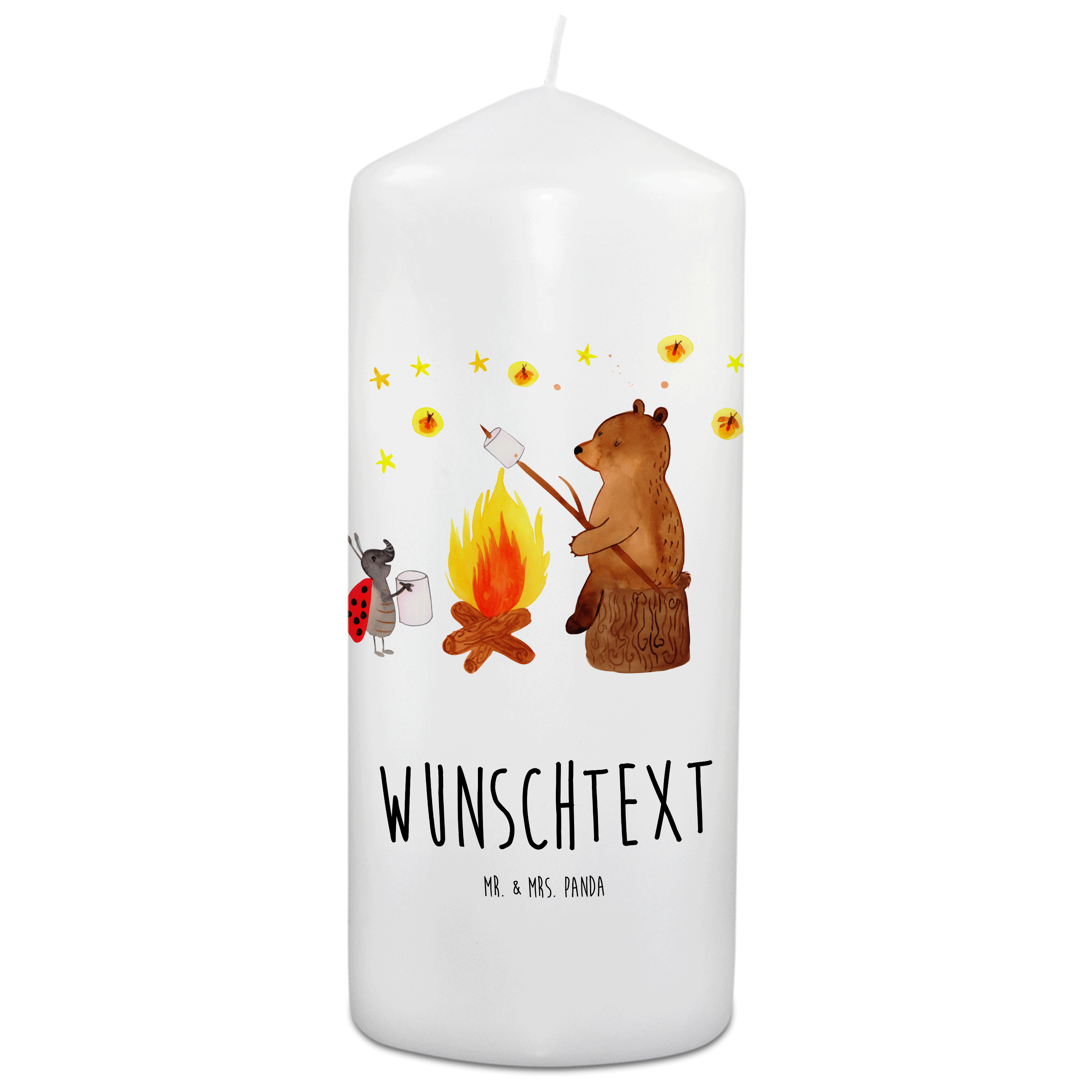 Personalisierte Kerze Bär & Marienkäfer Lagerfeuer - 15 x 7 cm