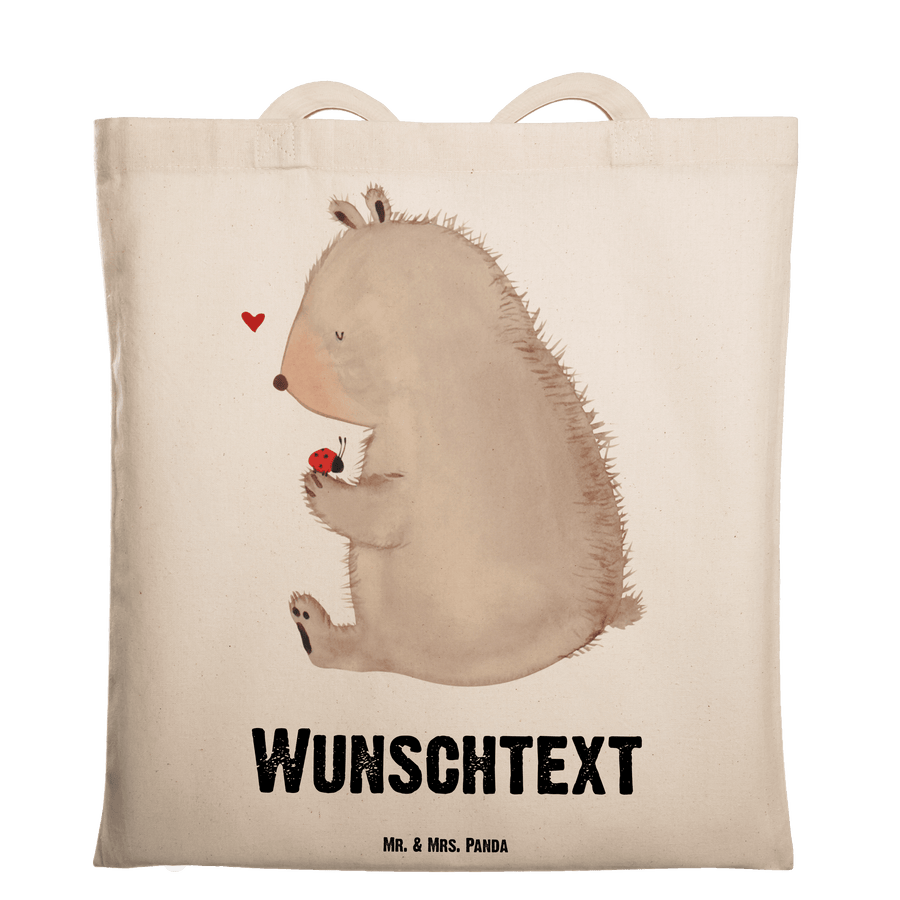 Personalisierte Tragetasche Bär mit Marienkäfer - Transparent