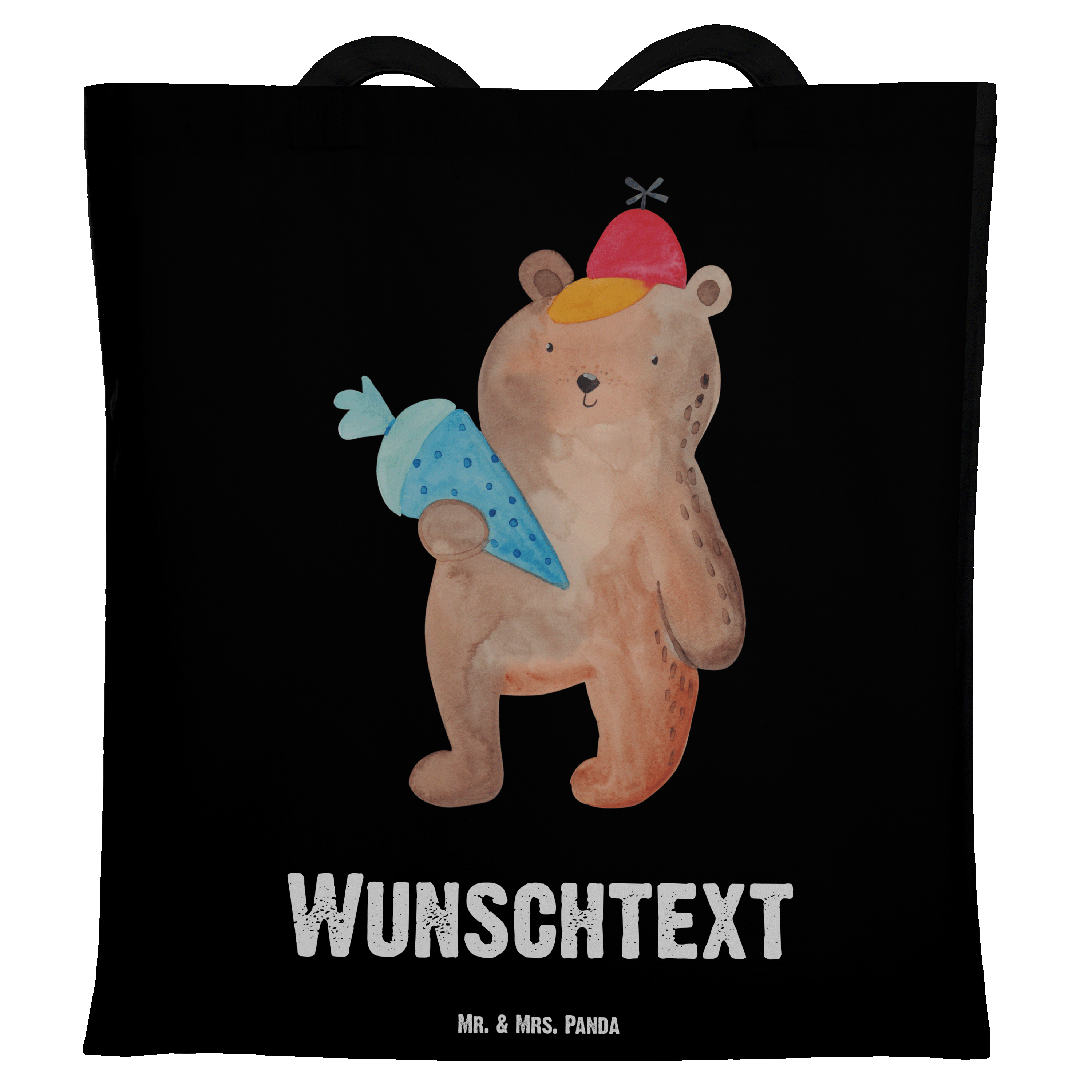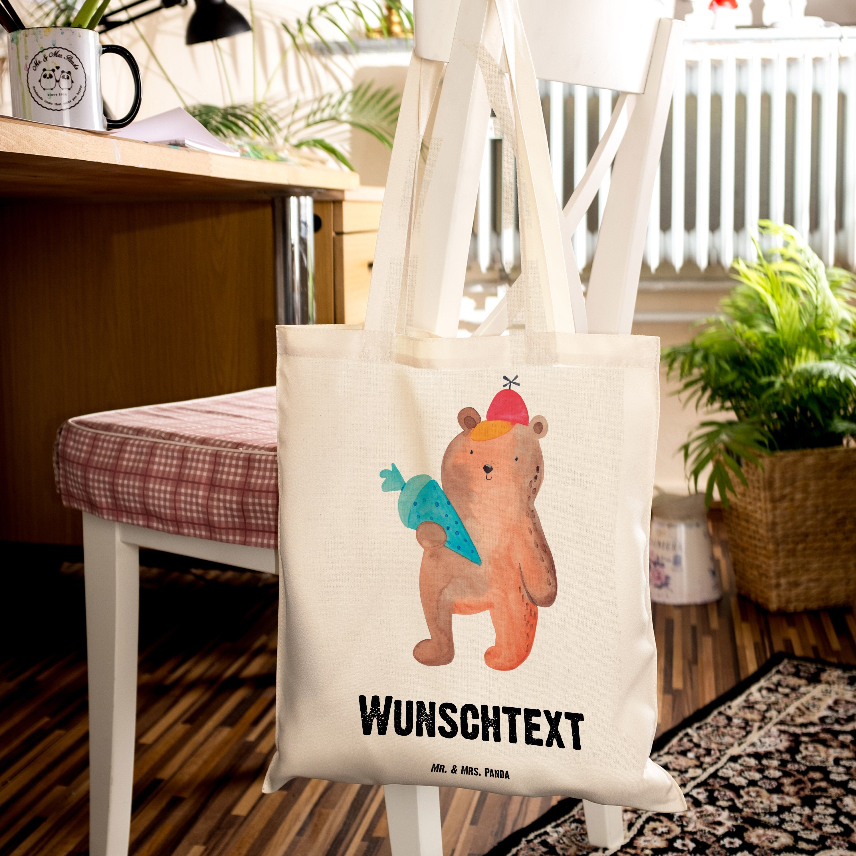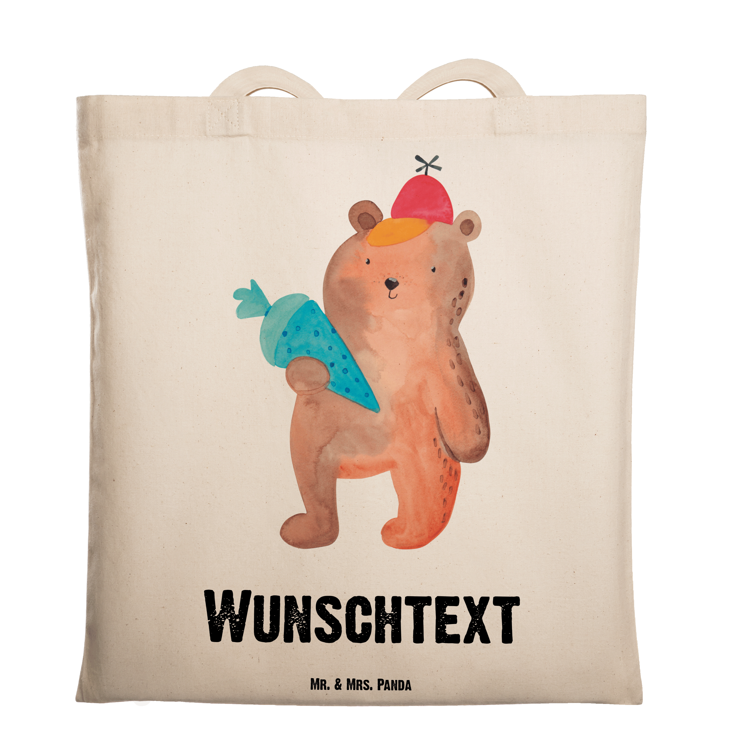Personalisierte Tragetasche Bär mit Schultüte - Transparent
