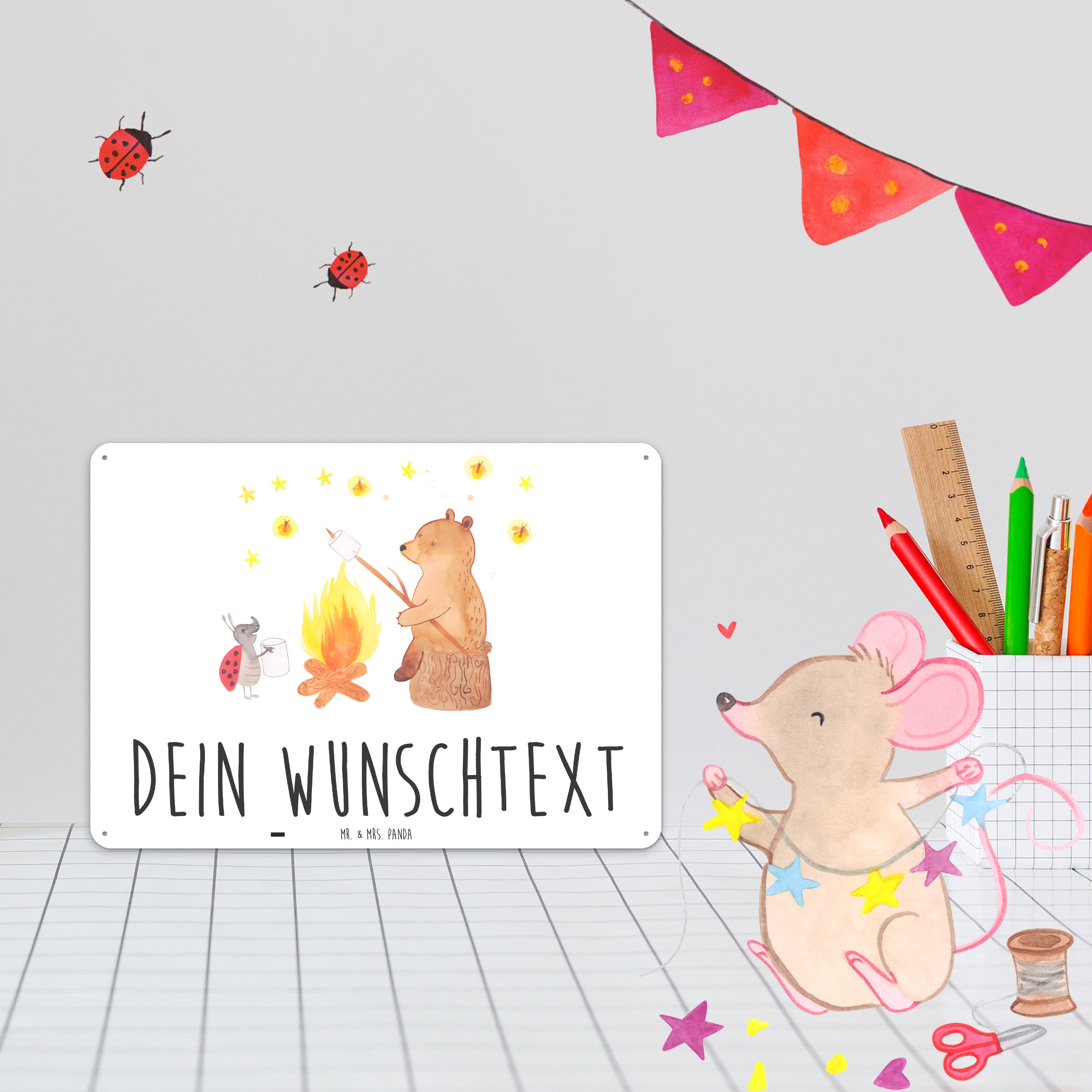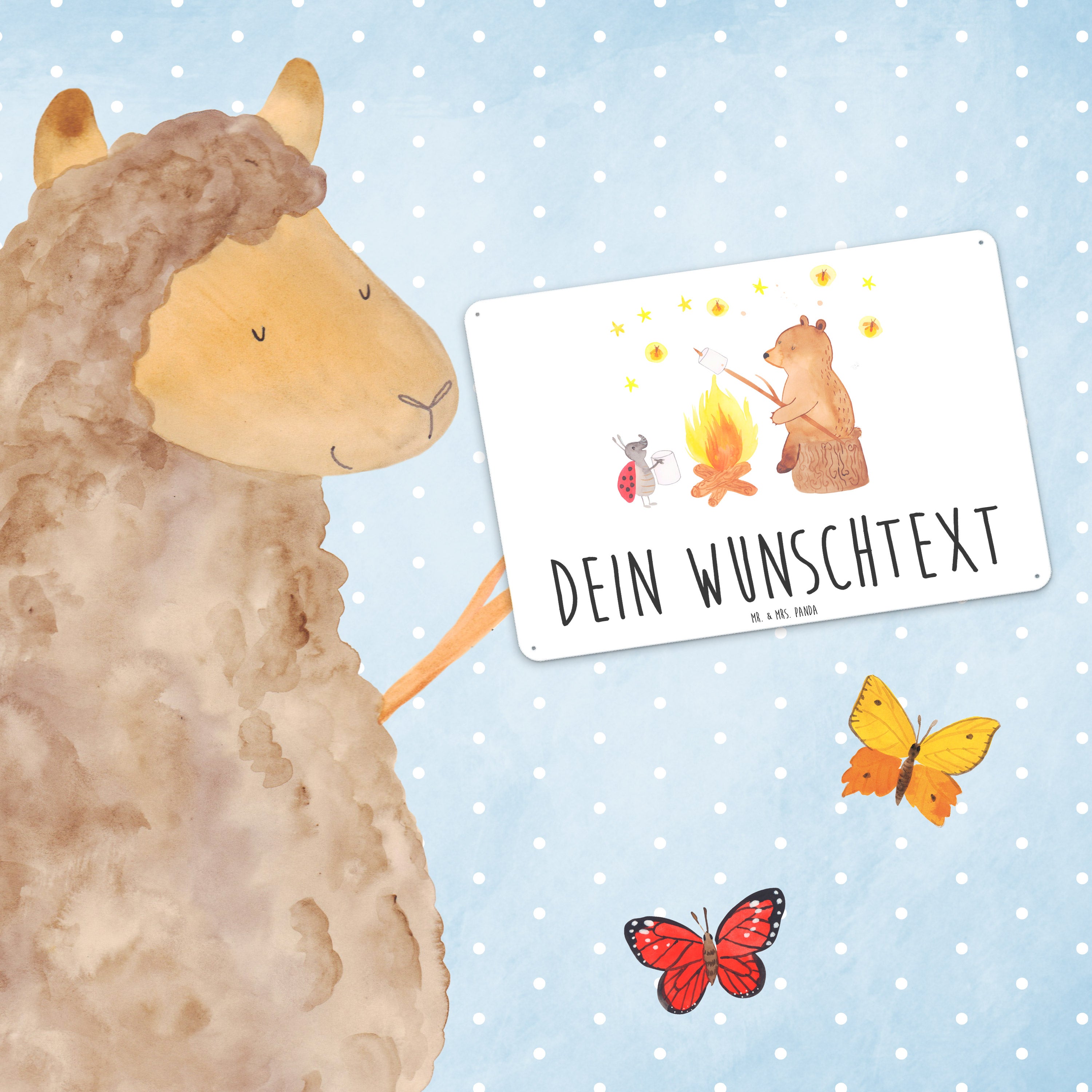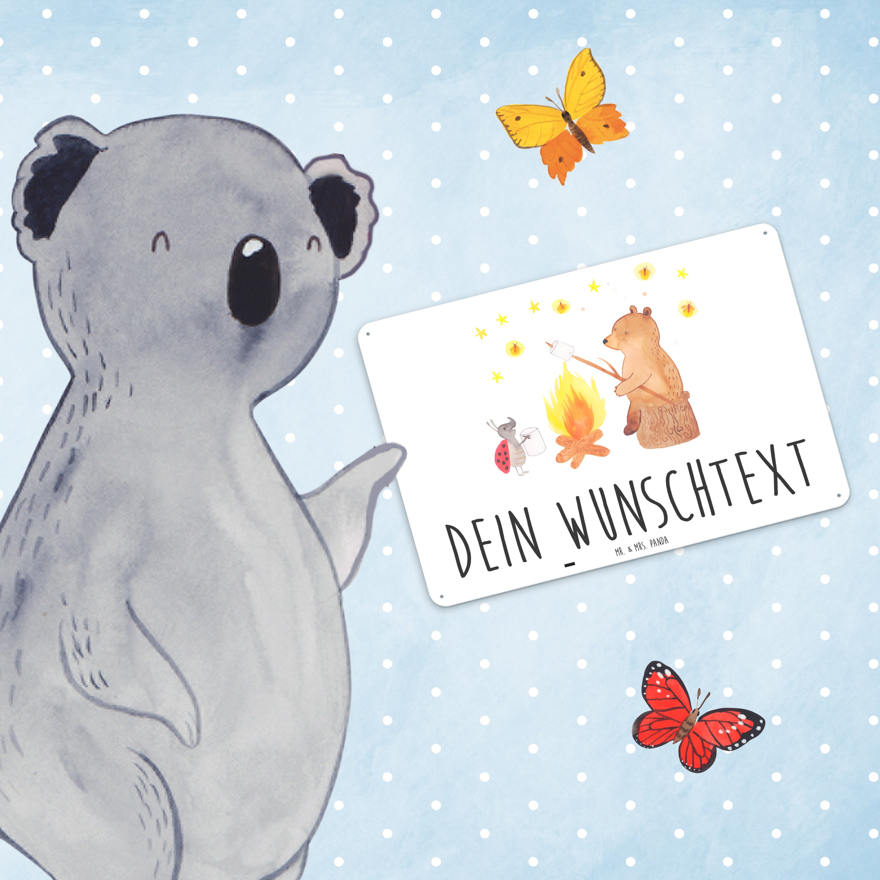 Personalisiertes Blechschild Bär & Marienkäfer Lagerfeuer - DIN A3